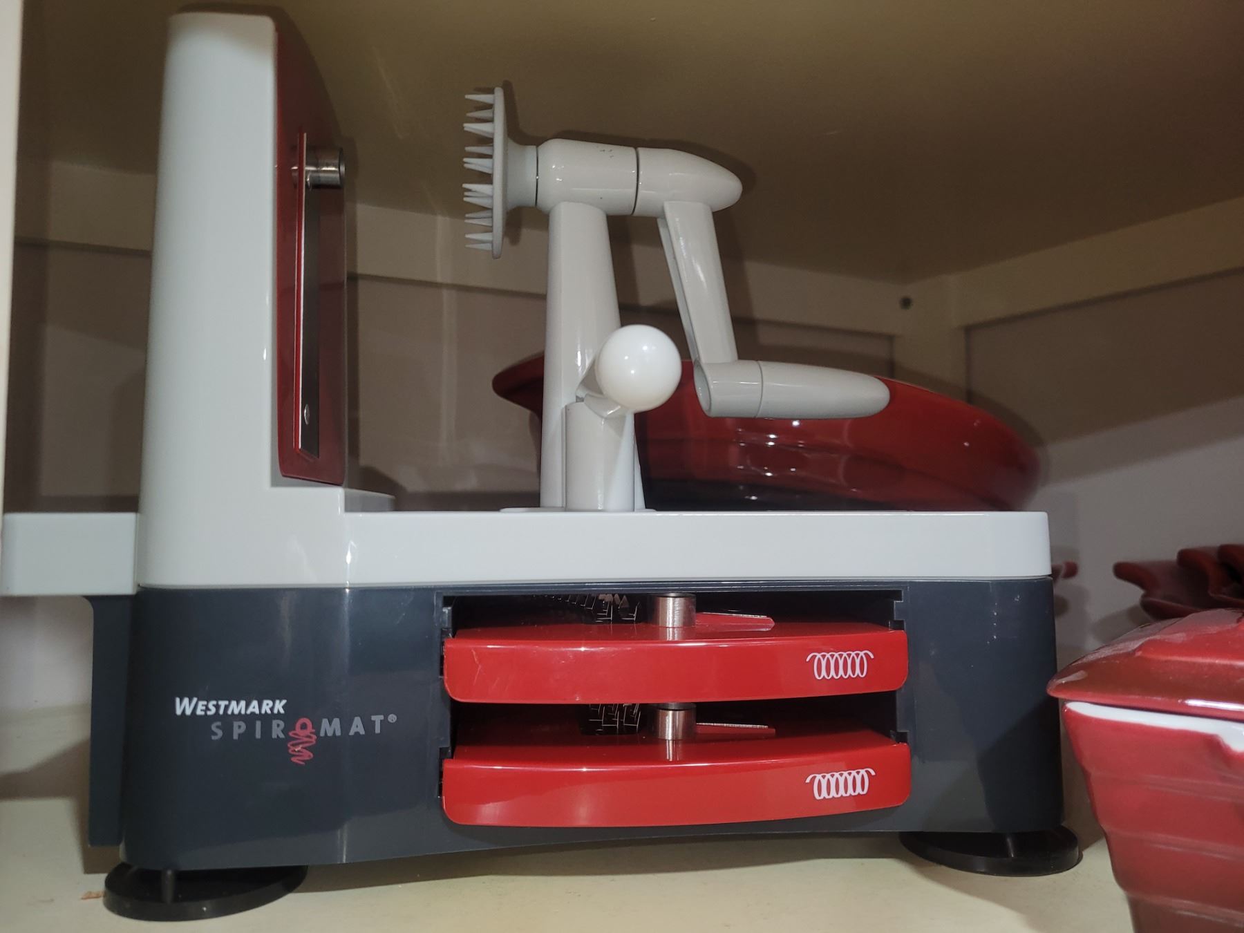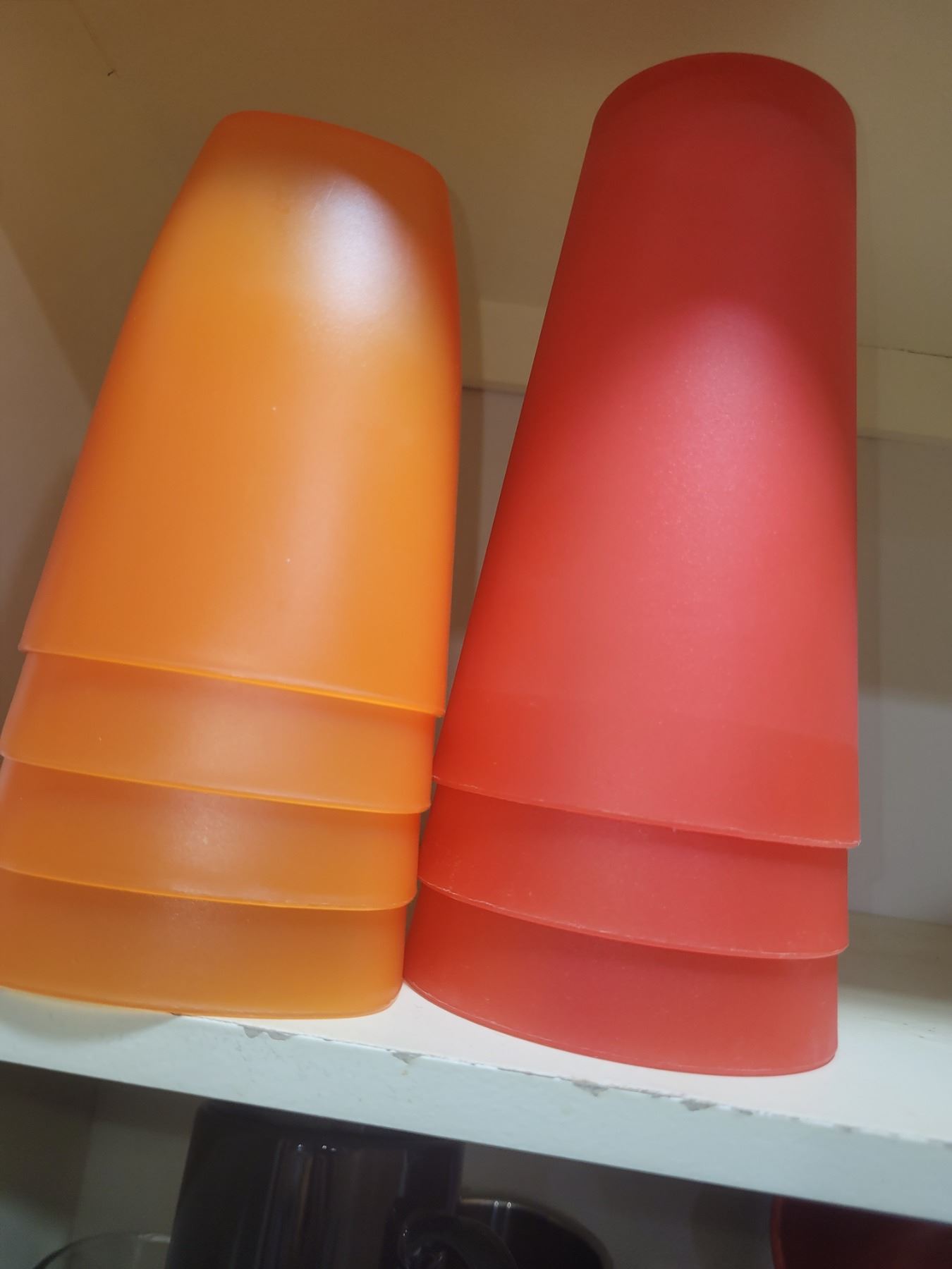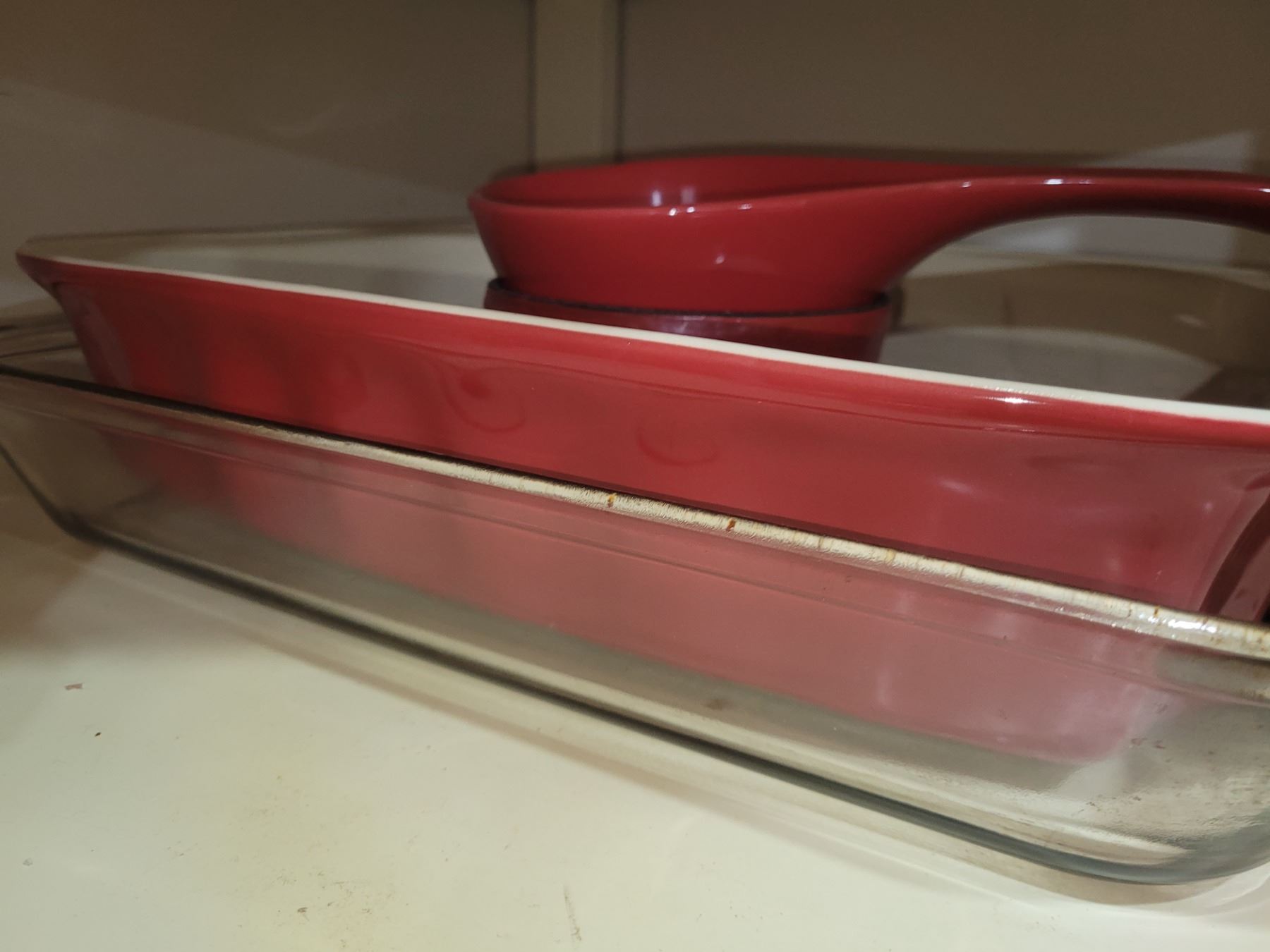 Collection of soup and drinking mugs, 6 black Corelle made in France, plates, 4 fruit dishes. Includes red casseroles, a Spiromatic. Pick up 9-10
