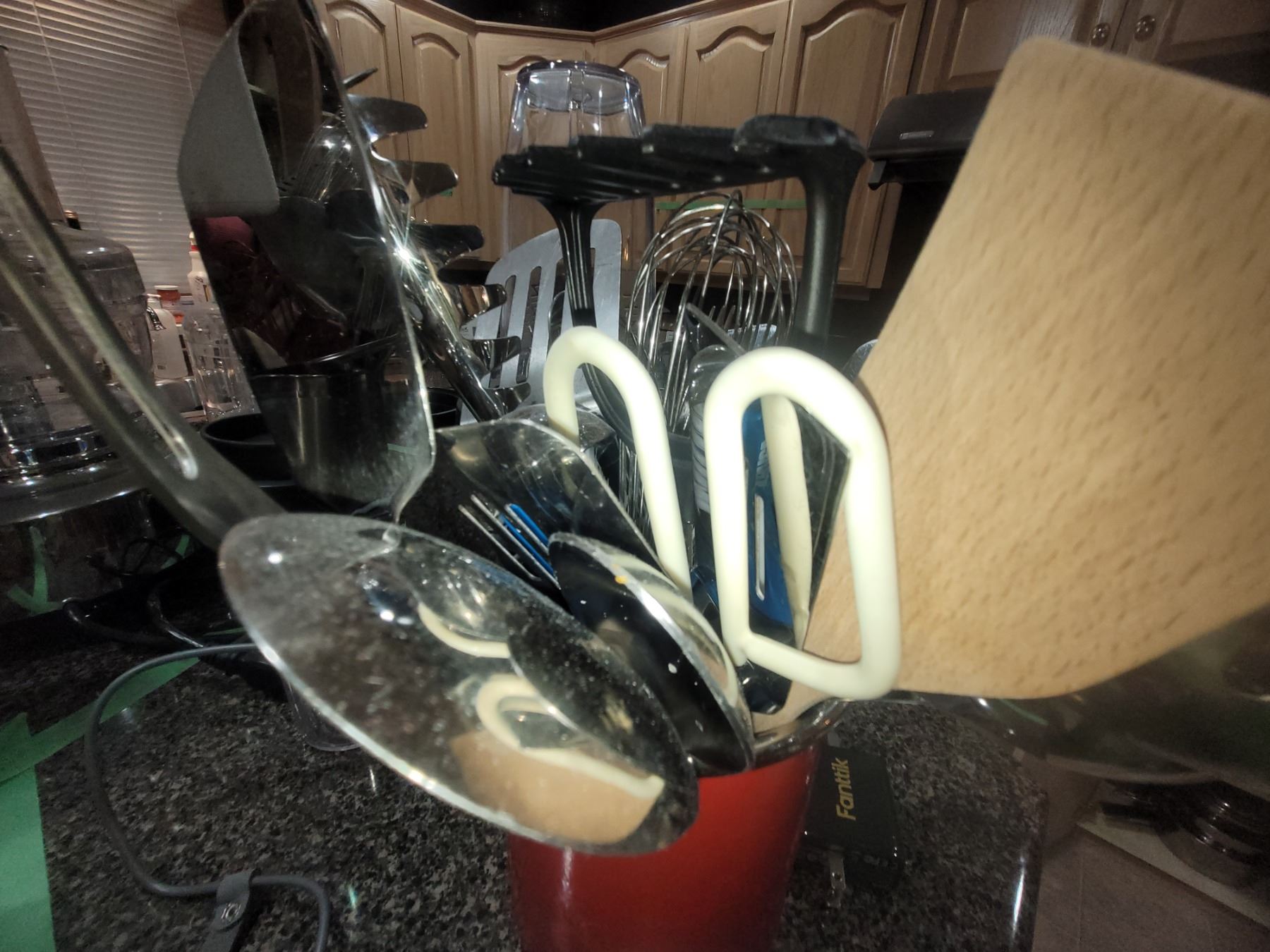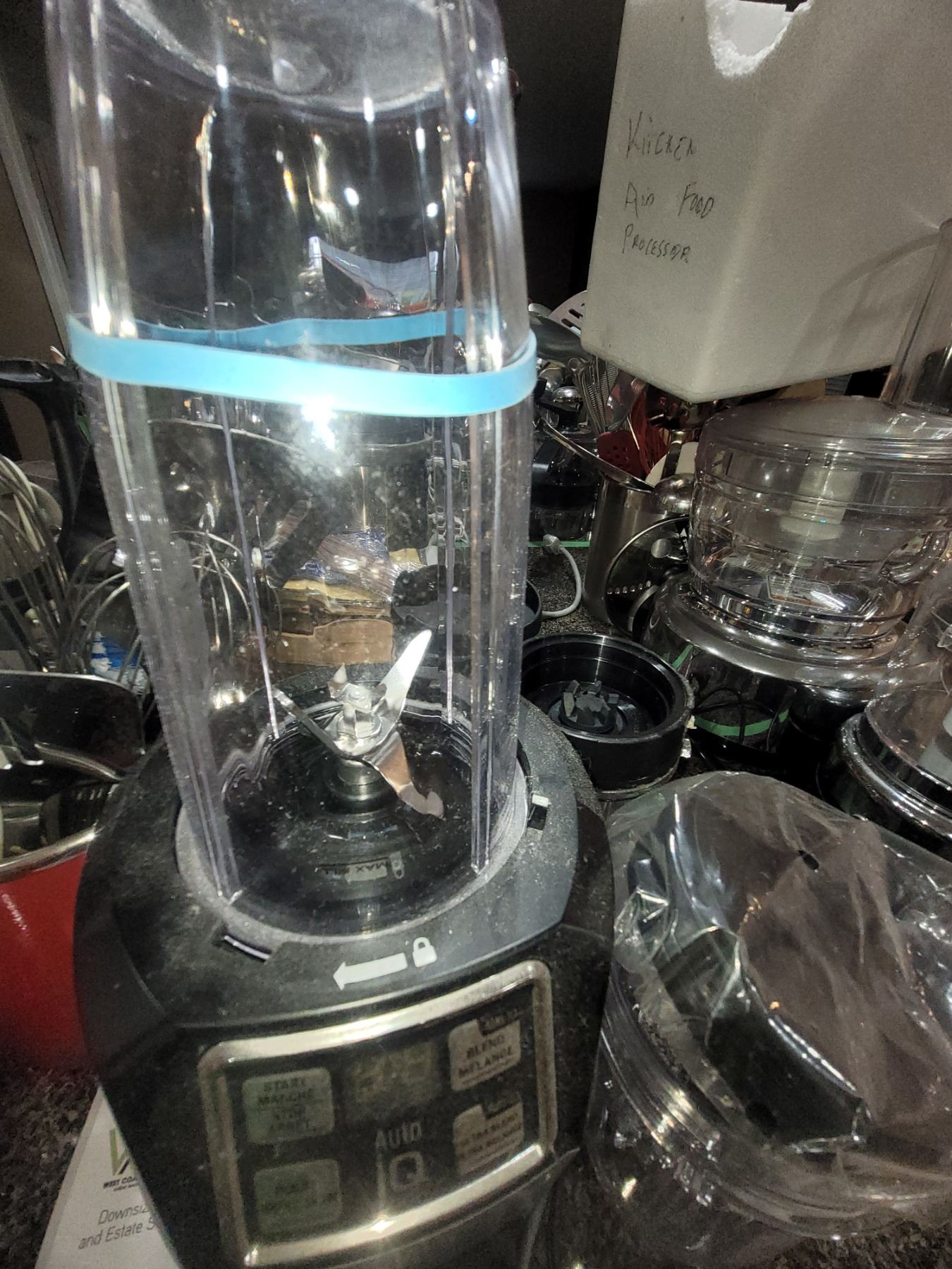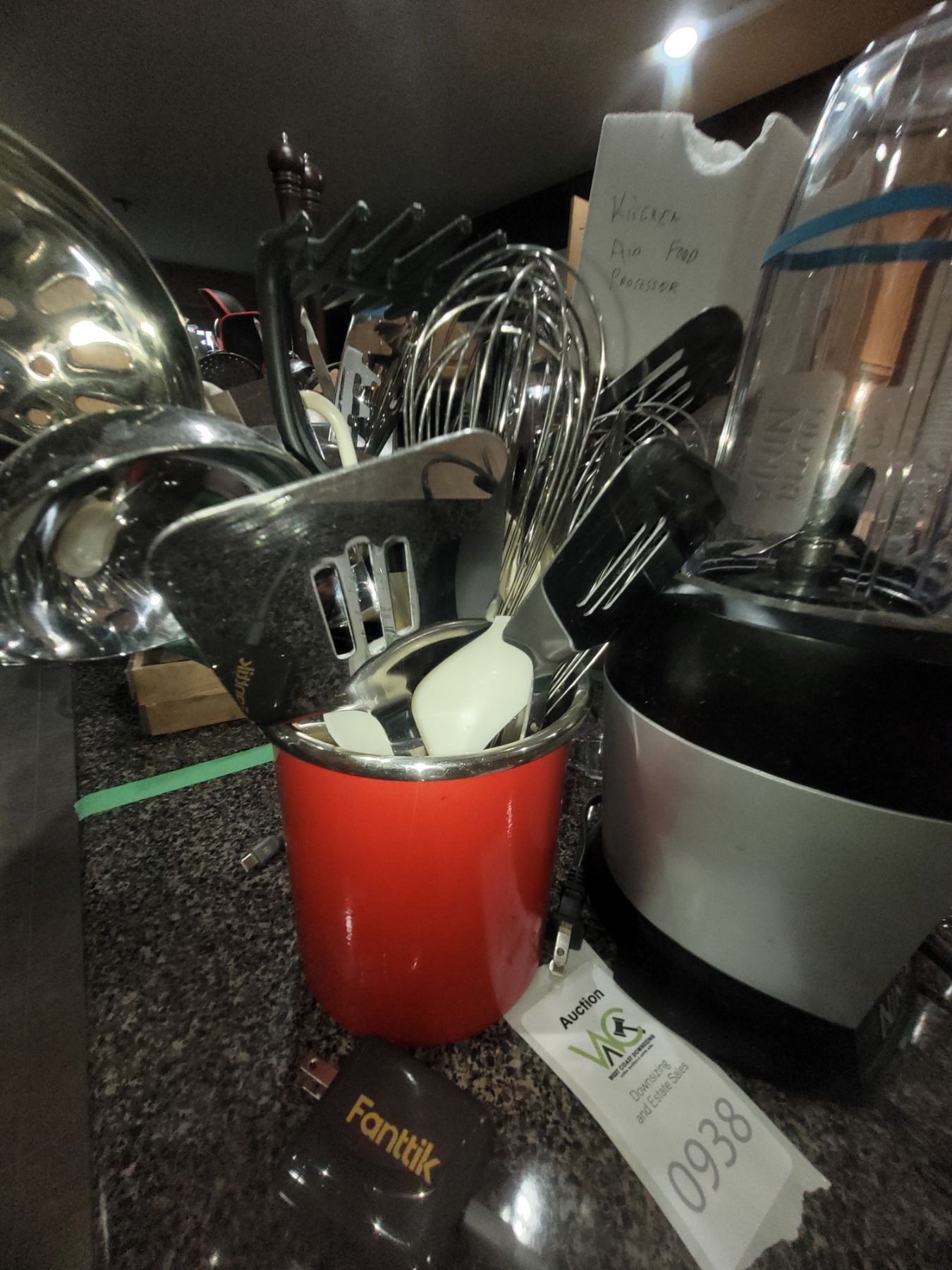 Ninja ultra blend with cups, red metal pot with kitchen utensils. Pickup at 9 am
