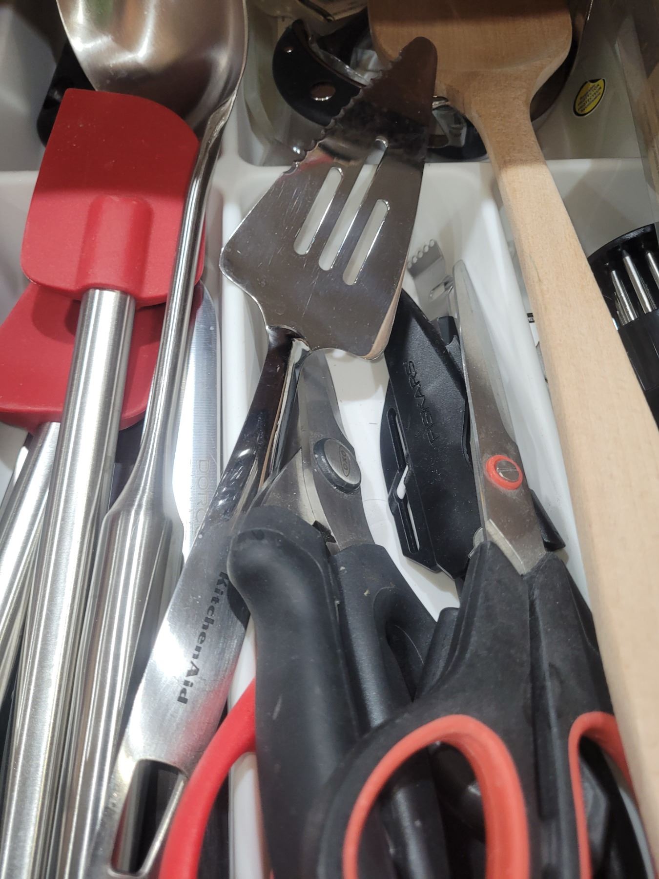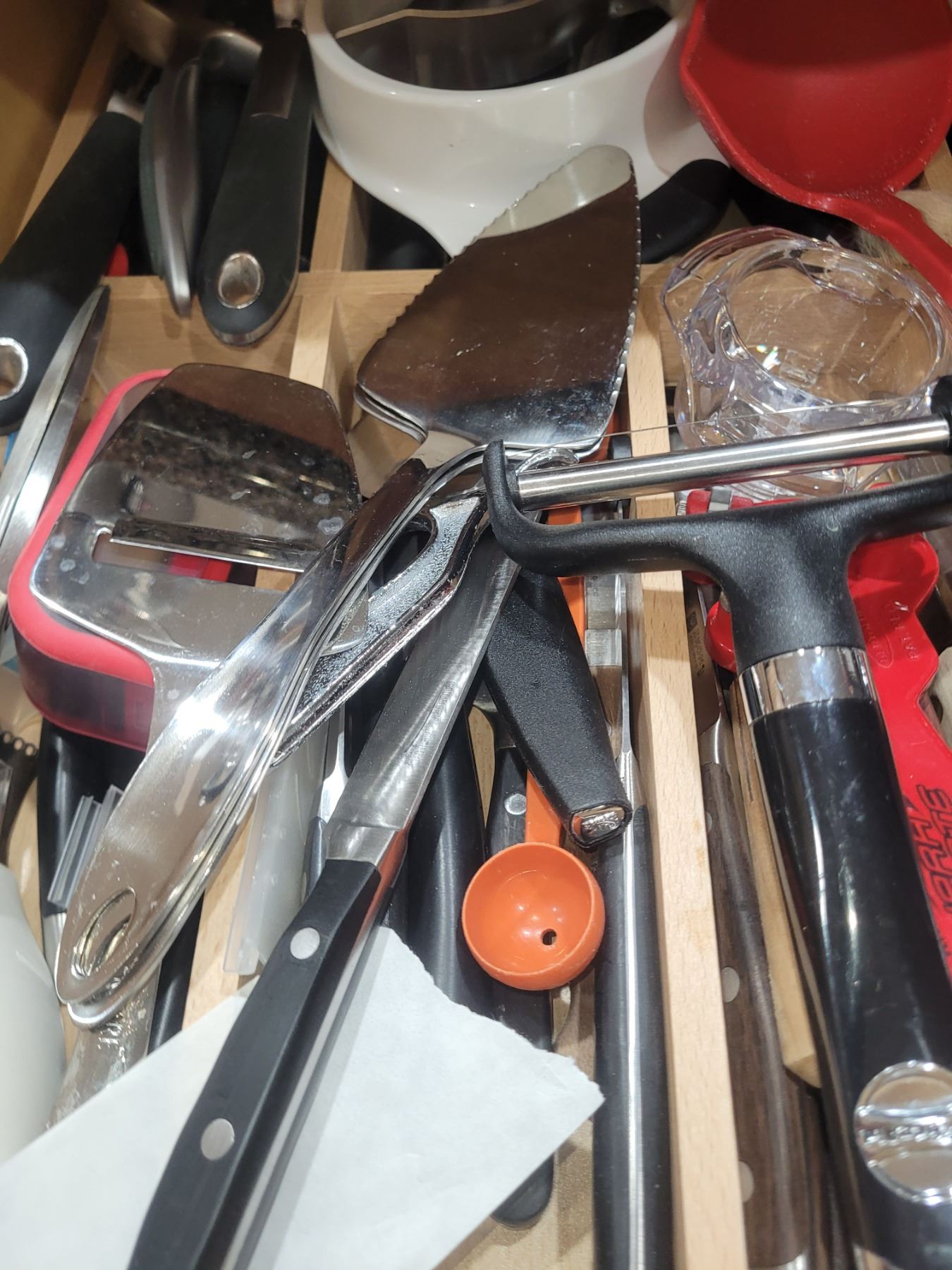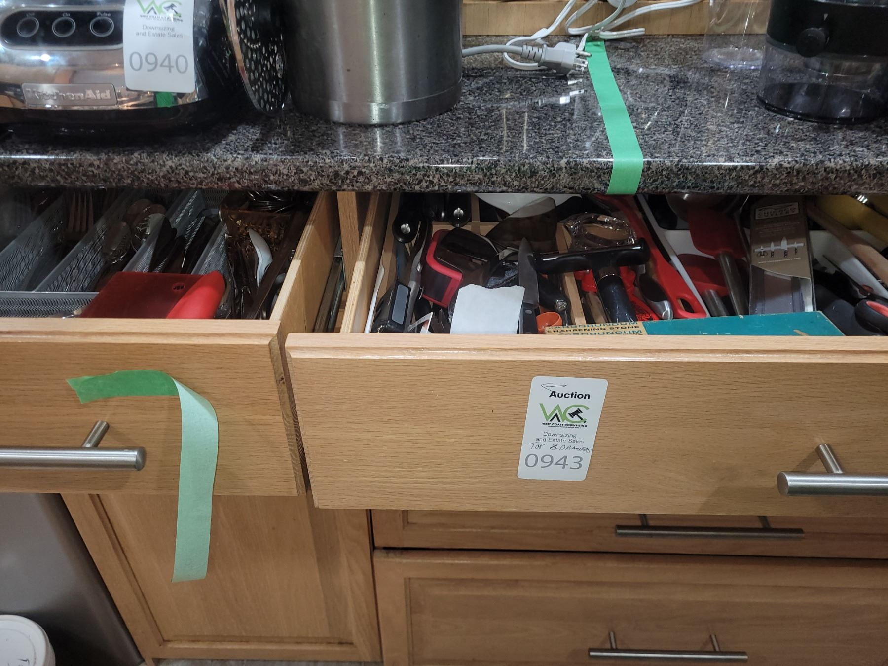 2 top drawers with Lagostina flatware 6 + and a large assortment of quality kitchen utensils. Pickup at 9 am