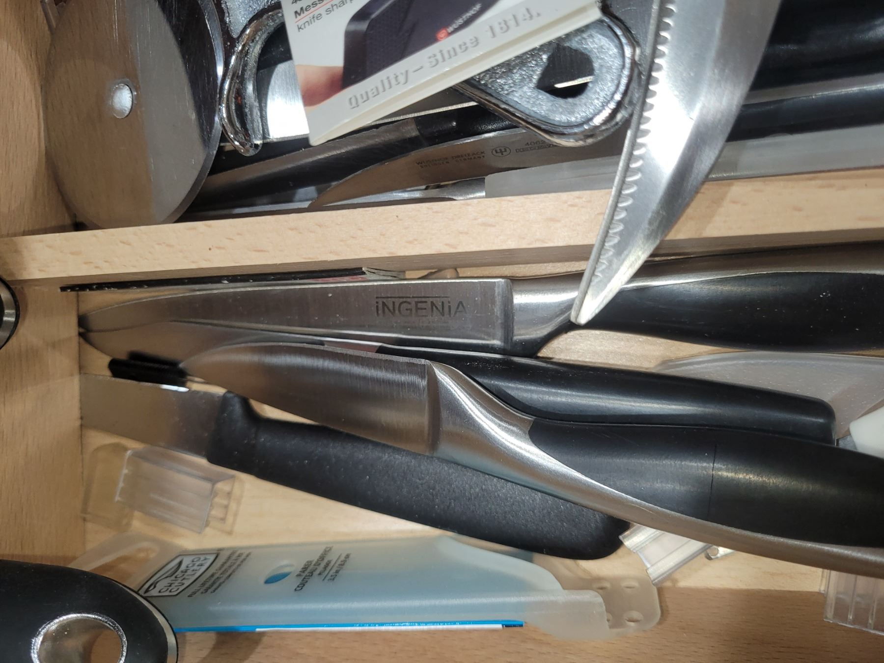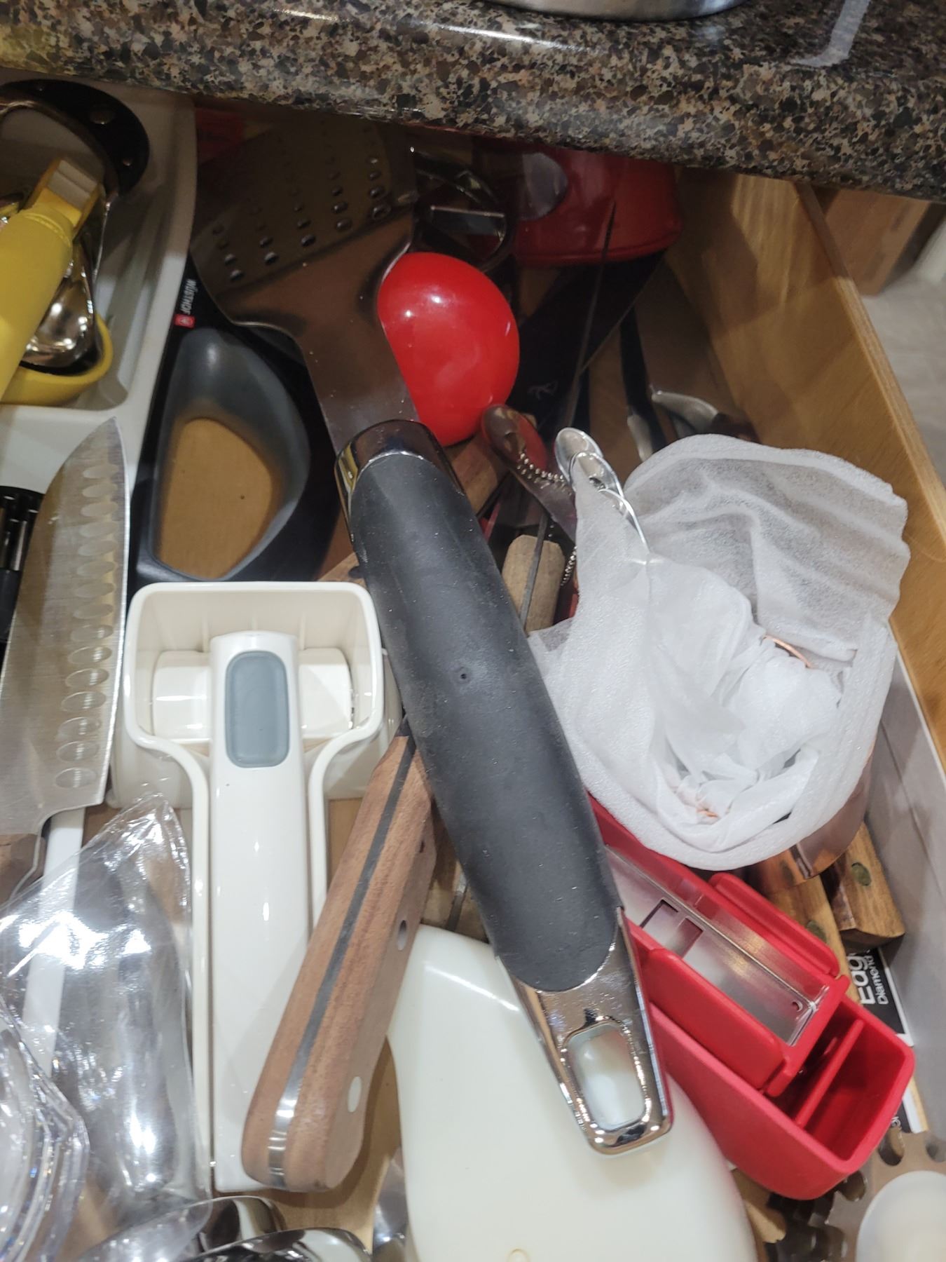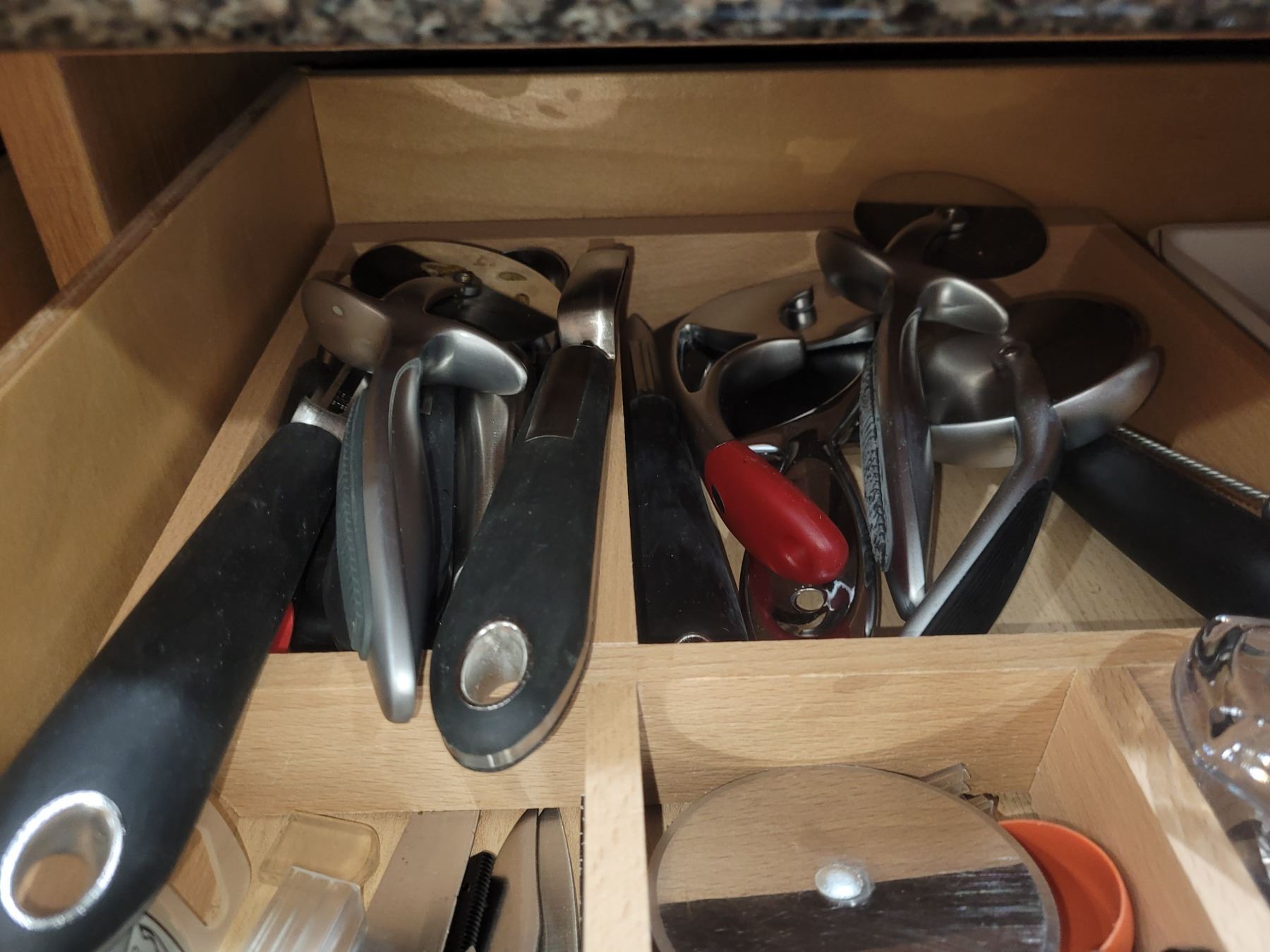2 top drawers with Lagostina flatware 6 + and a large assortment of quality kitchen utensils. Pickup at 9 am