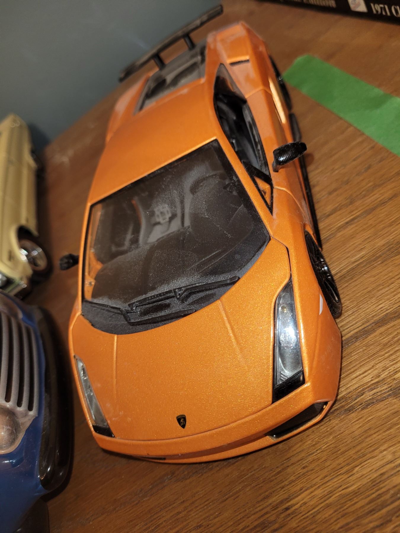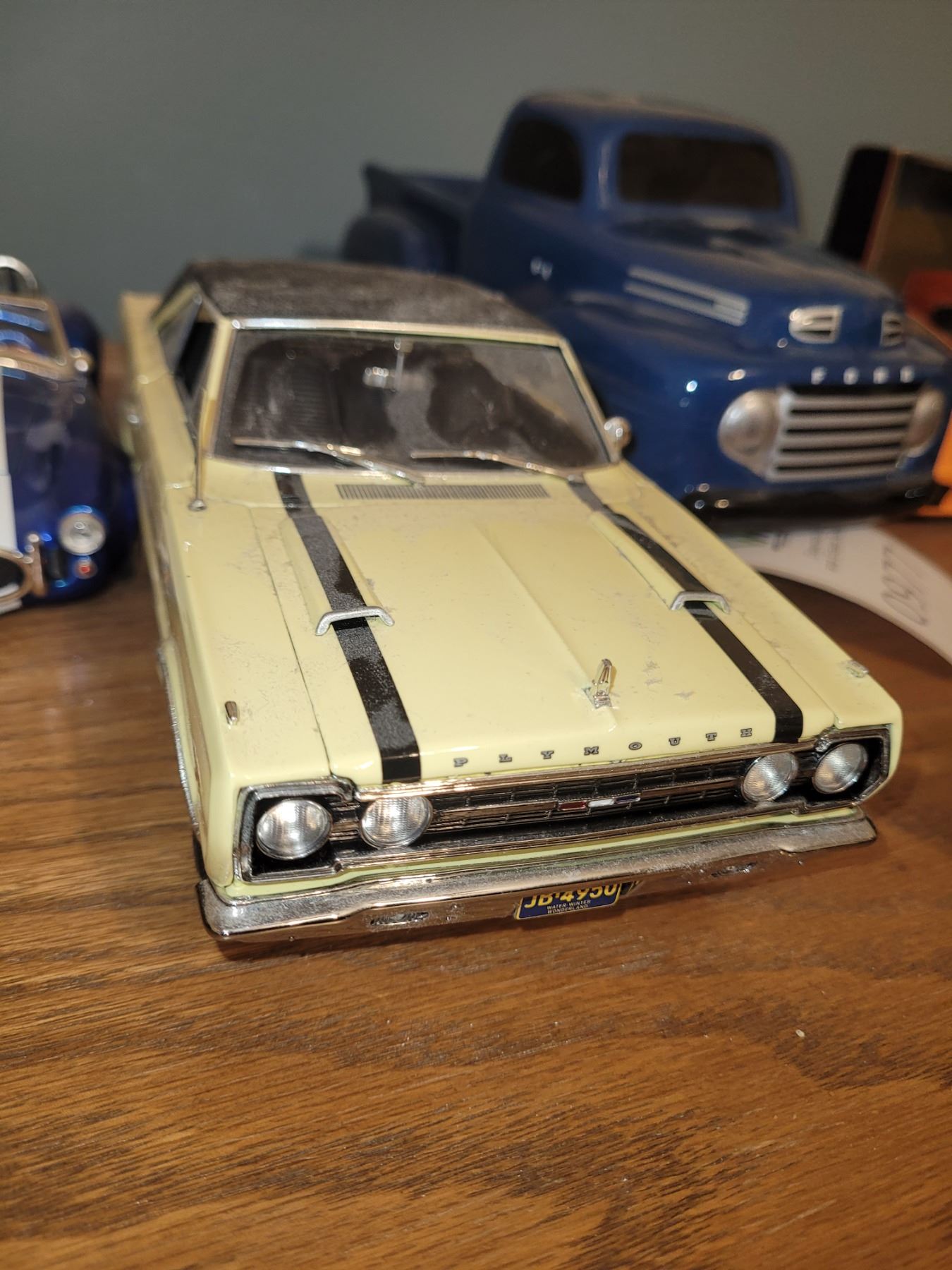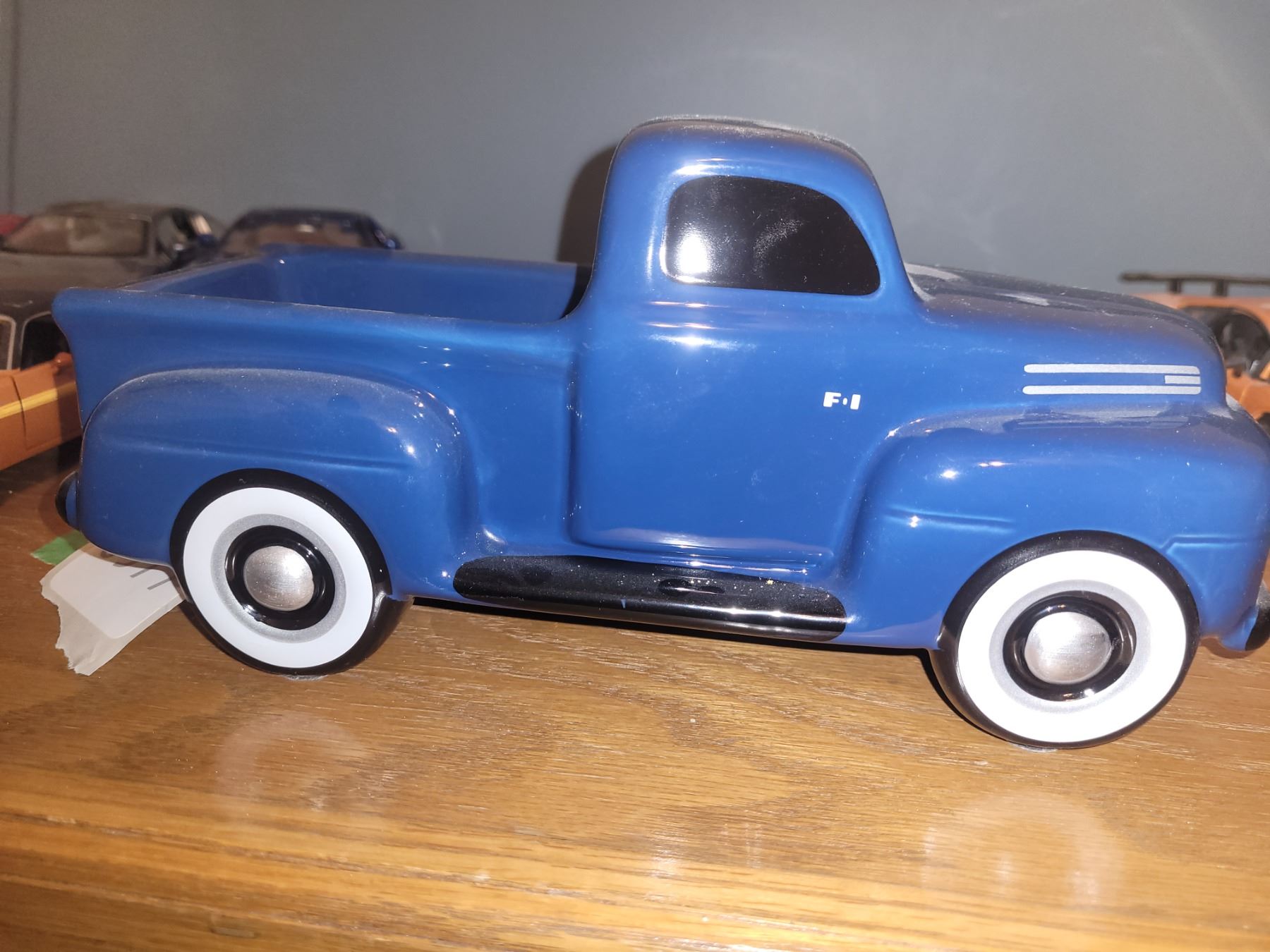 3 die cast cars and porcelain blue truck. Pickup at 9 am