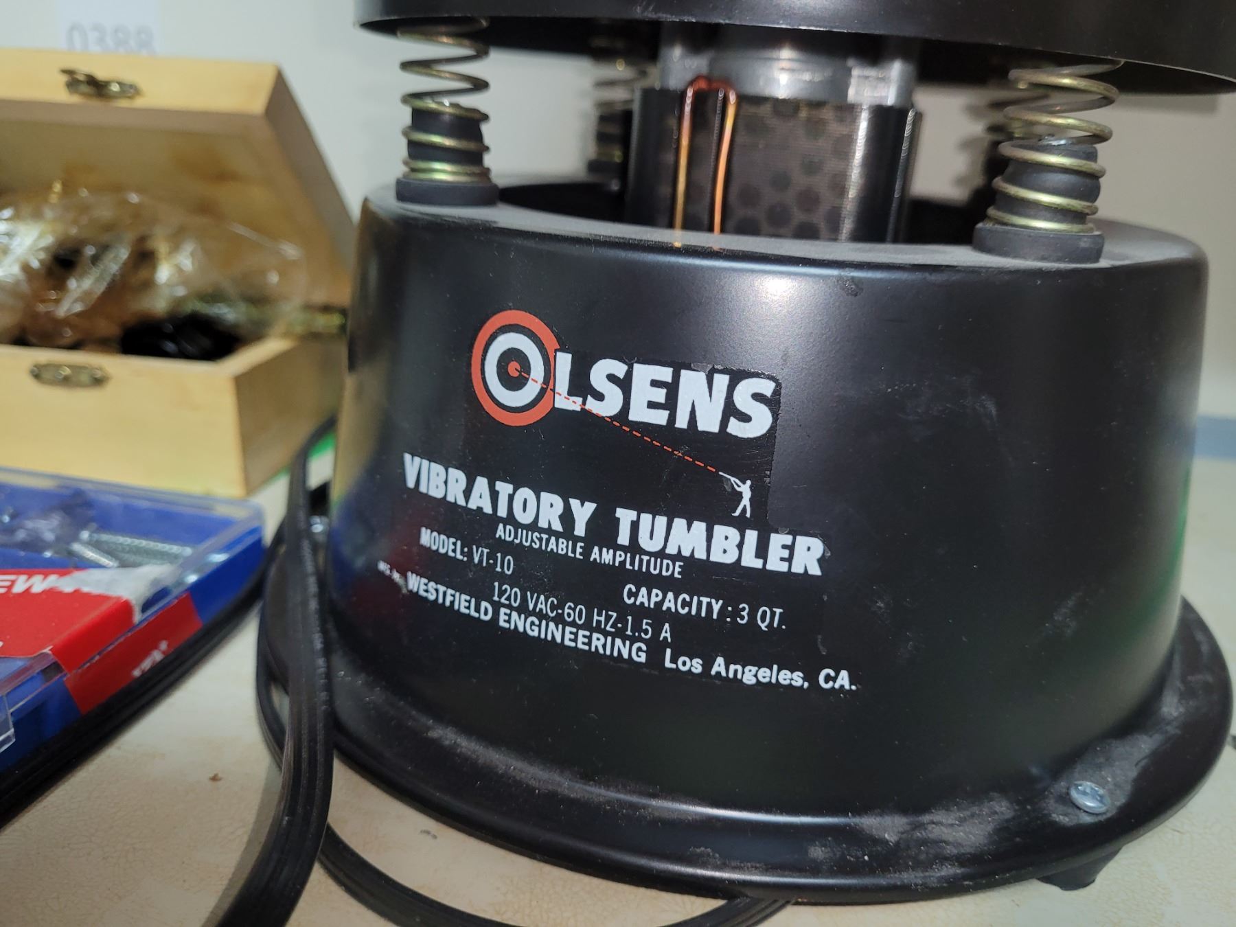 Olsens vibratory tumbler. Model VT-10. 3 Quart. Pick up 11am.