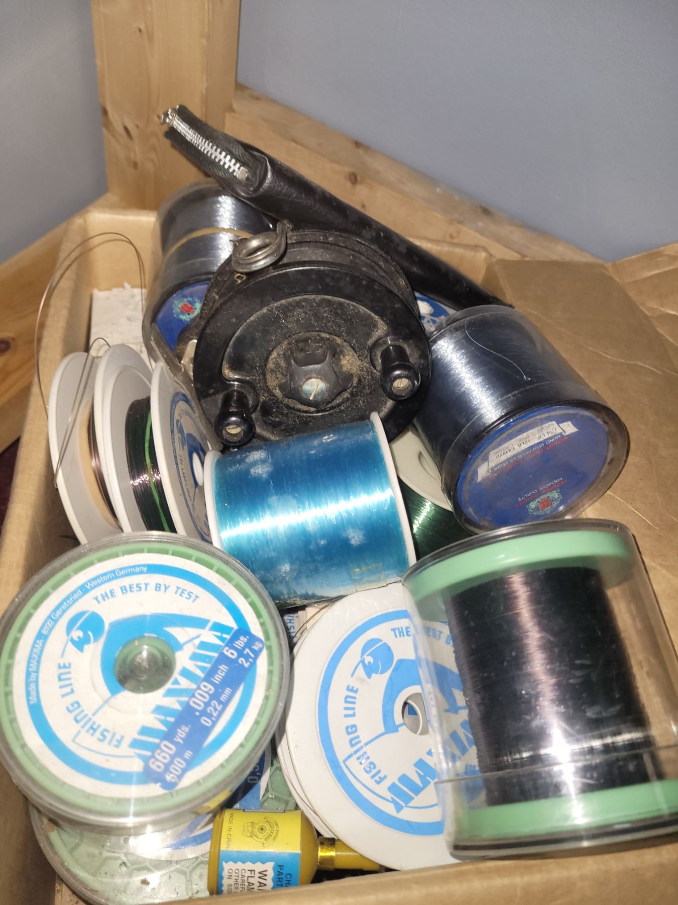 Steelite fishing reel. And box of fishing line. Pick up 11am