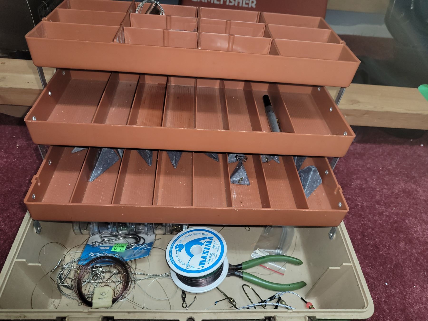 Lot 397 Fishing tackle boxes. Cat B