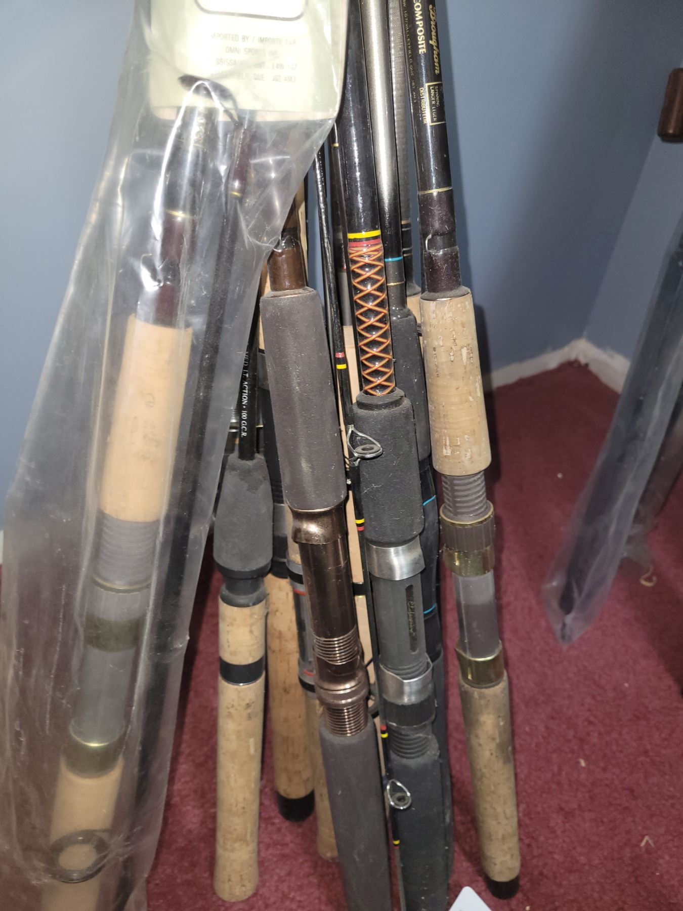 Fishing poles and Plano softcover tacklebox Avenger fishing reel. Pick up 11am.
