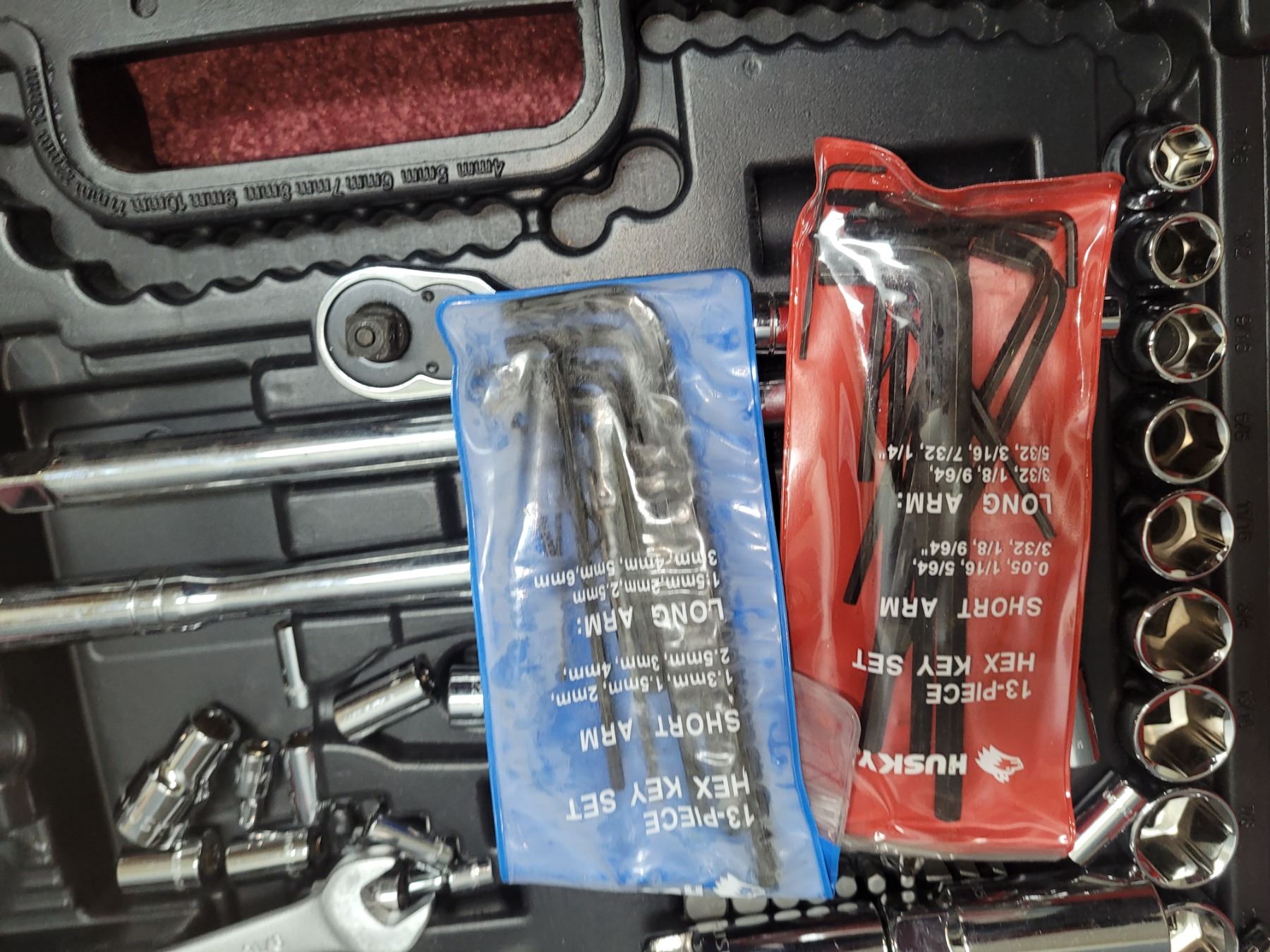Husky socket set in hard case. Hex key set. Pick up 11am