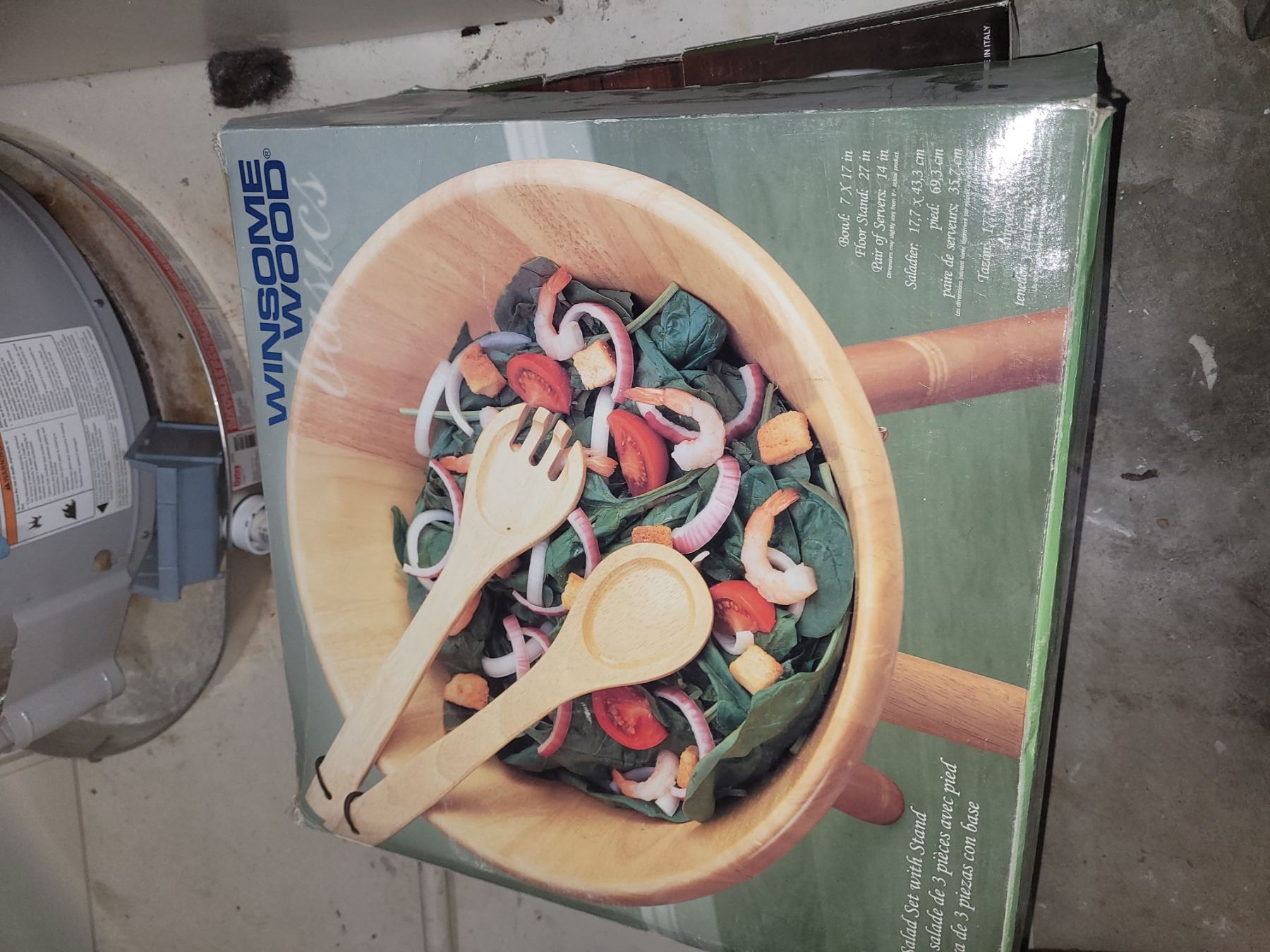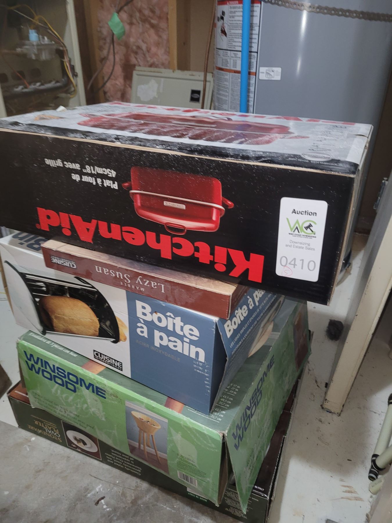 KitchenAid roaster. Bread storage bin. Salad set with stand. Stoneware oval platter. Pick up 11am.
