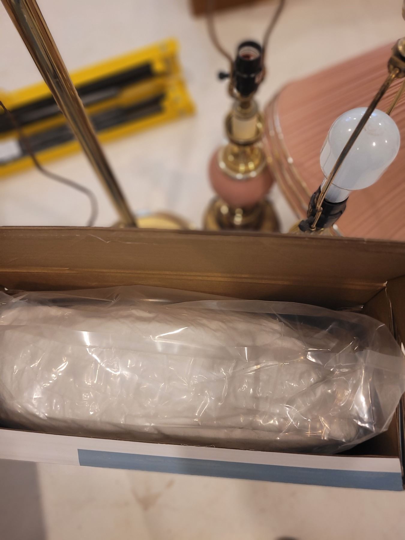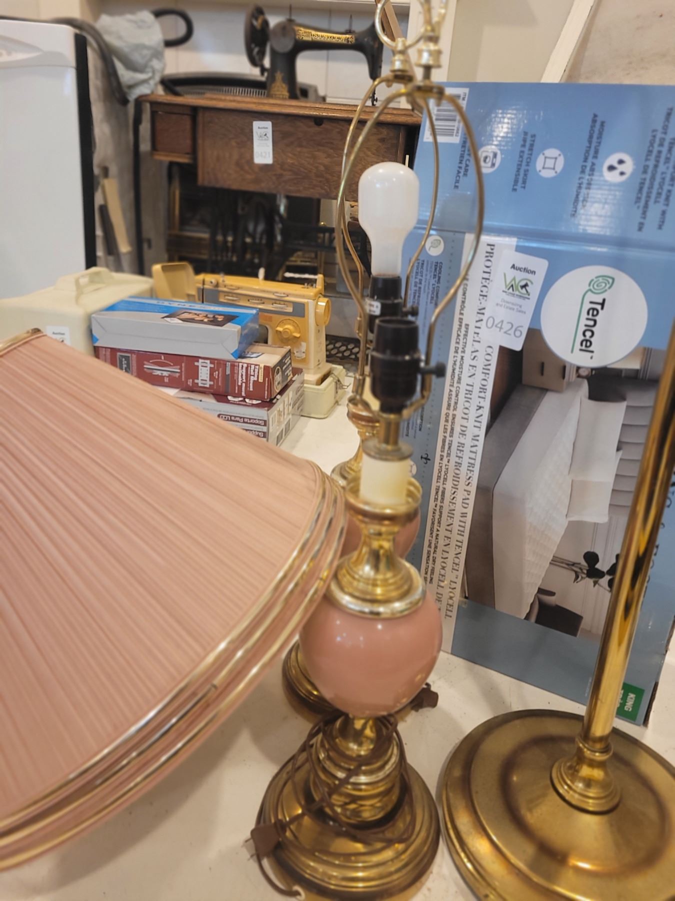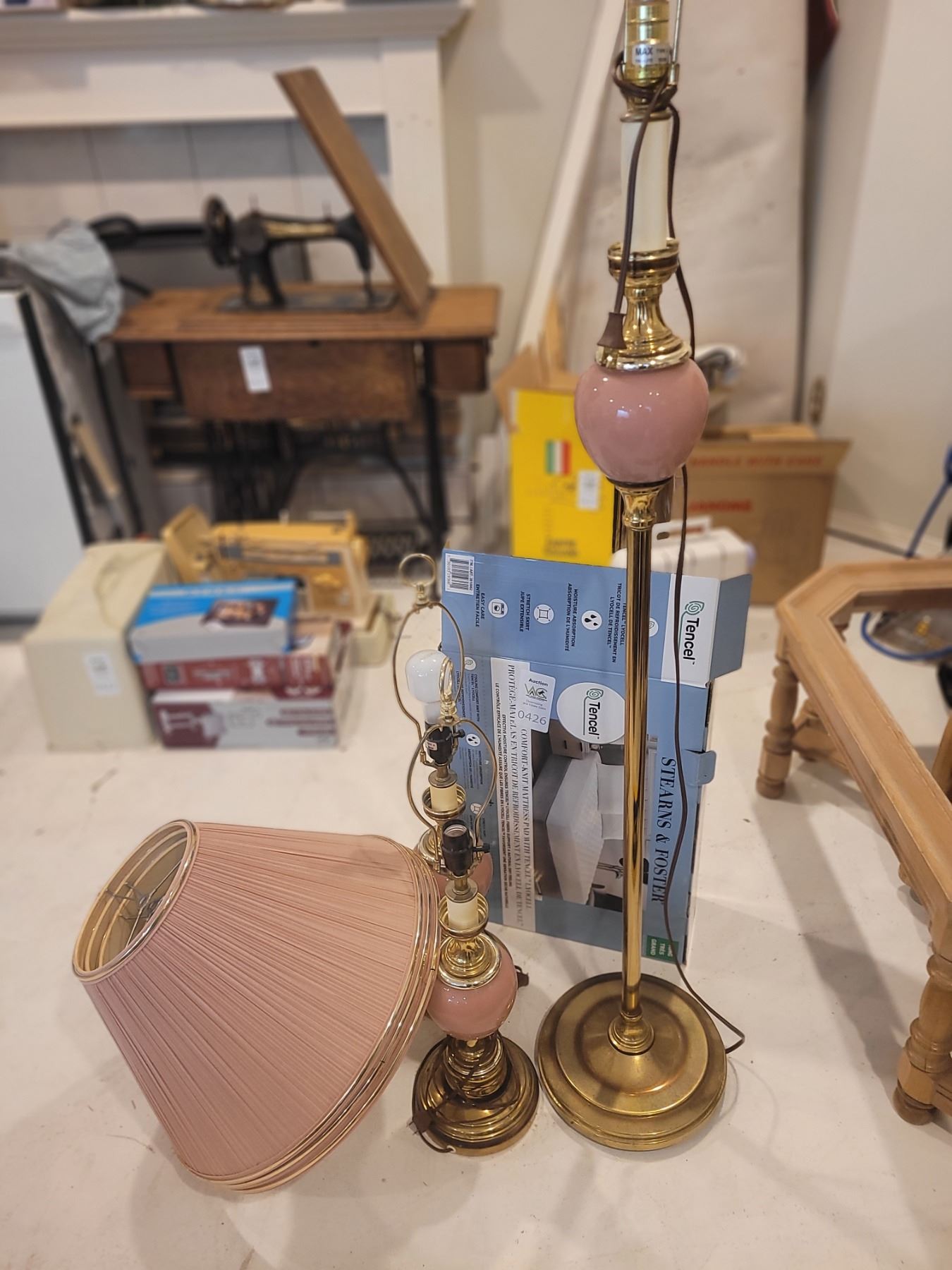 New Mattress pad. Vintage floor and table lights. Pickup at 12 pm