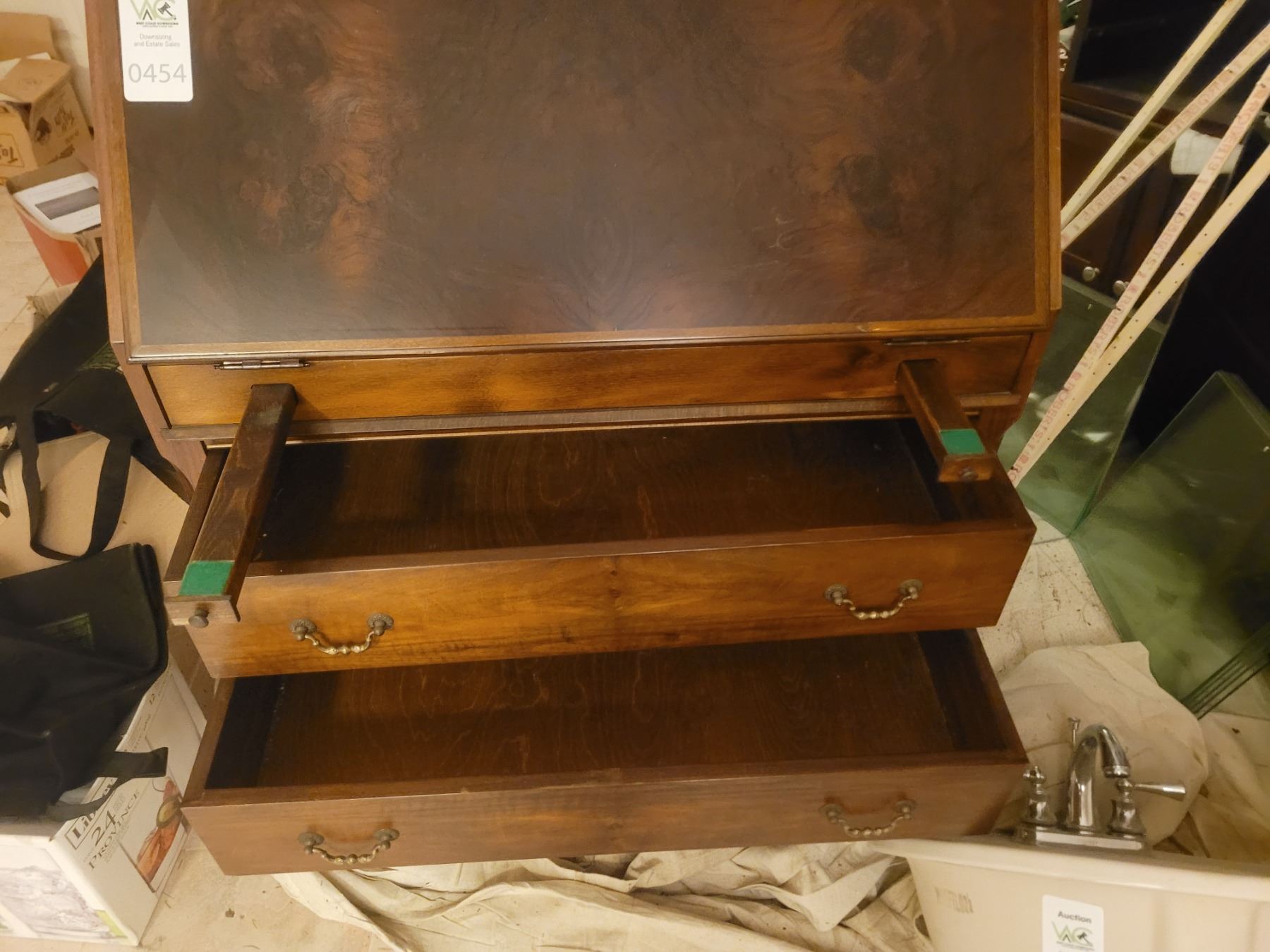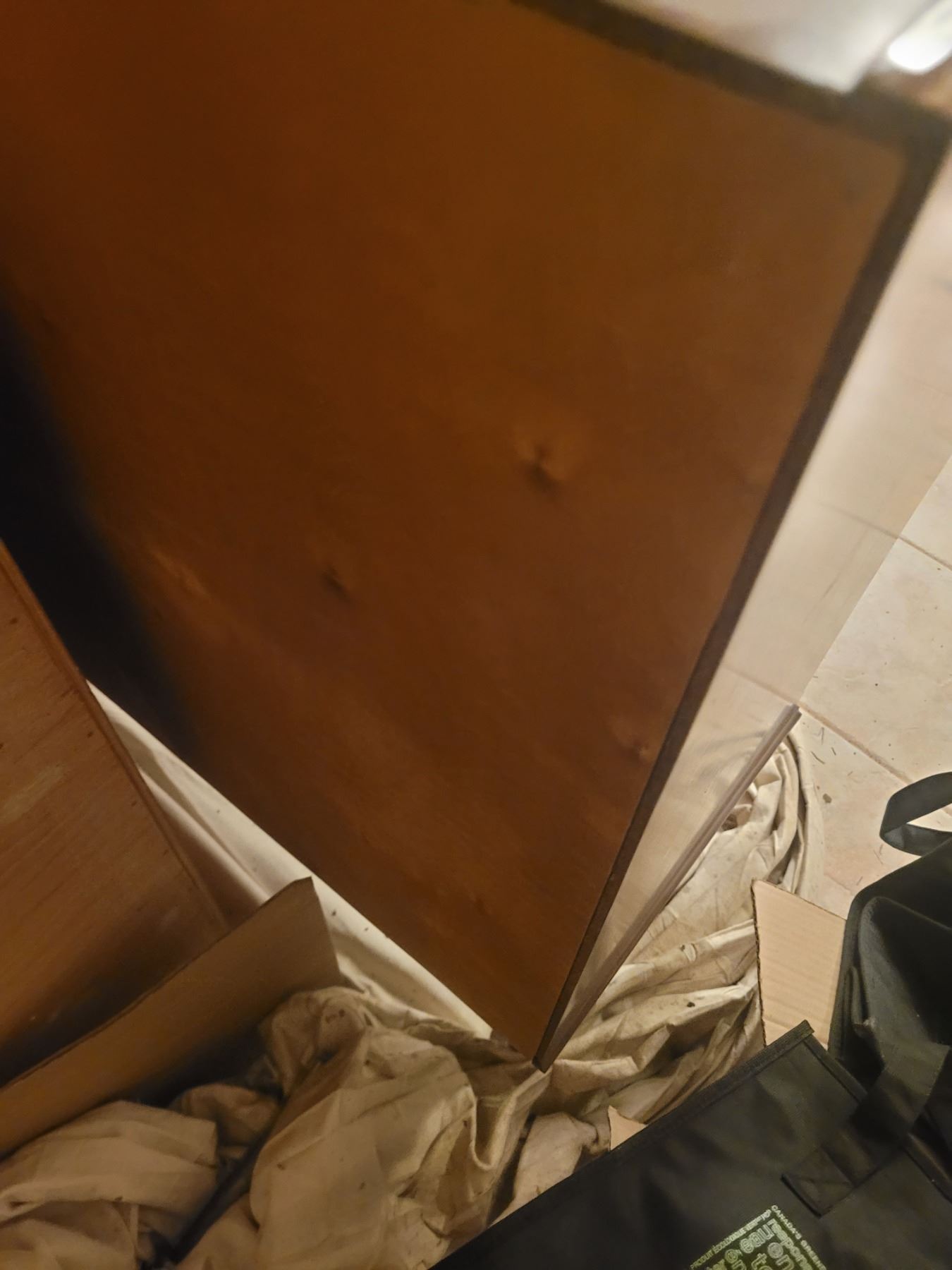 Desk 31x15x39 note damage top left edge. Pickup at 2 pm