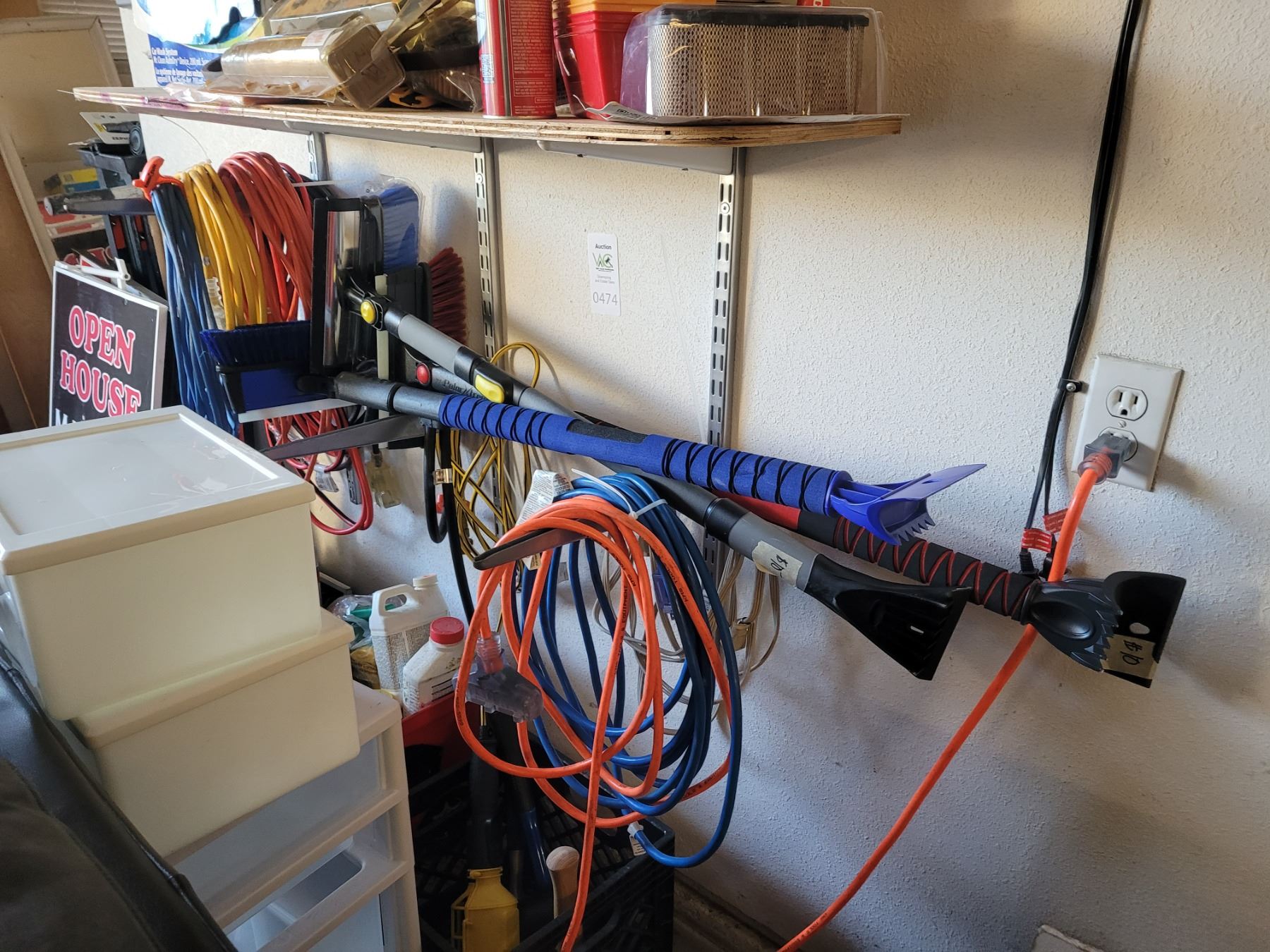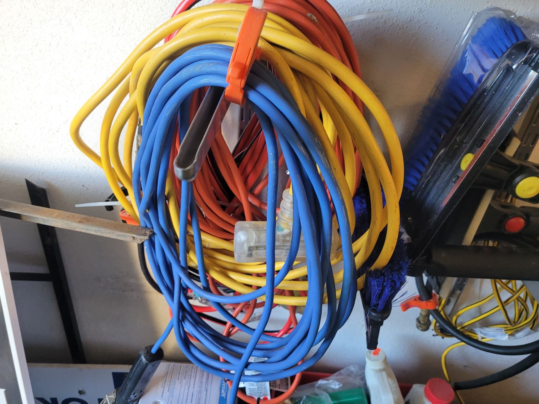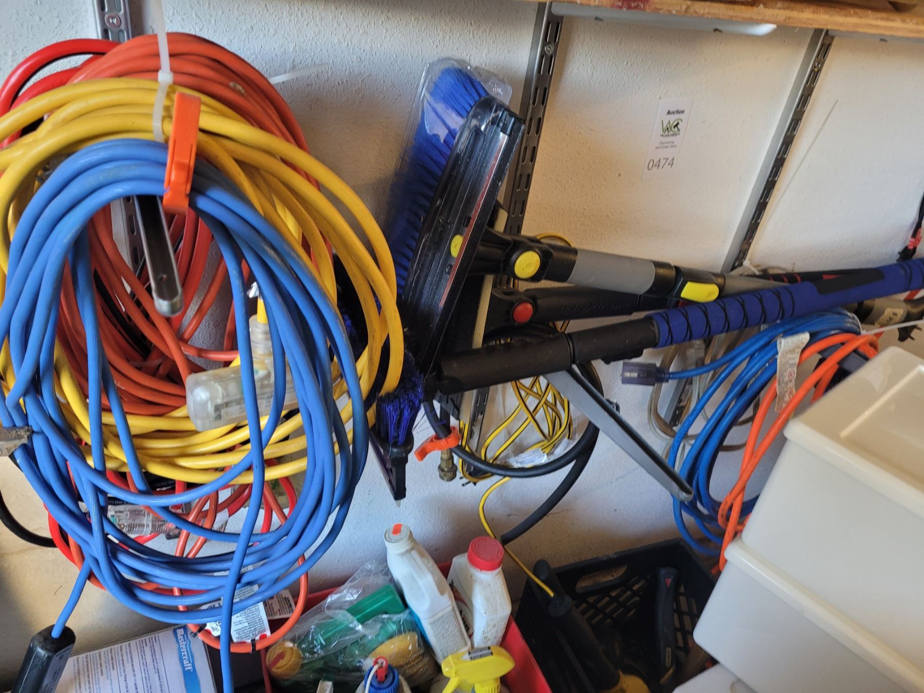 Electrical cords, auto brush, scrapers. Garden & household fluids, hammers. Pickup at 2:30