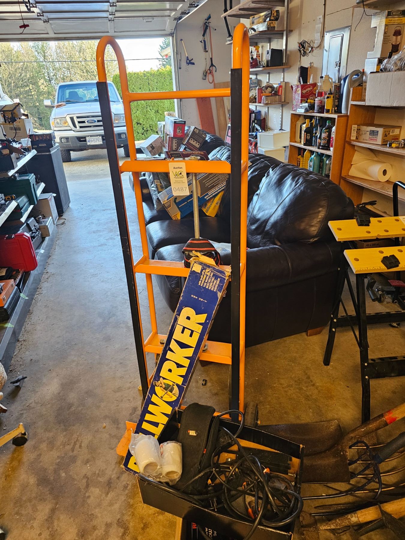 Heavy duty furniture dolly. Bull Worker, B&D Crosshairs laser level. Plus more. Pickup at 2 pm