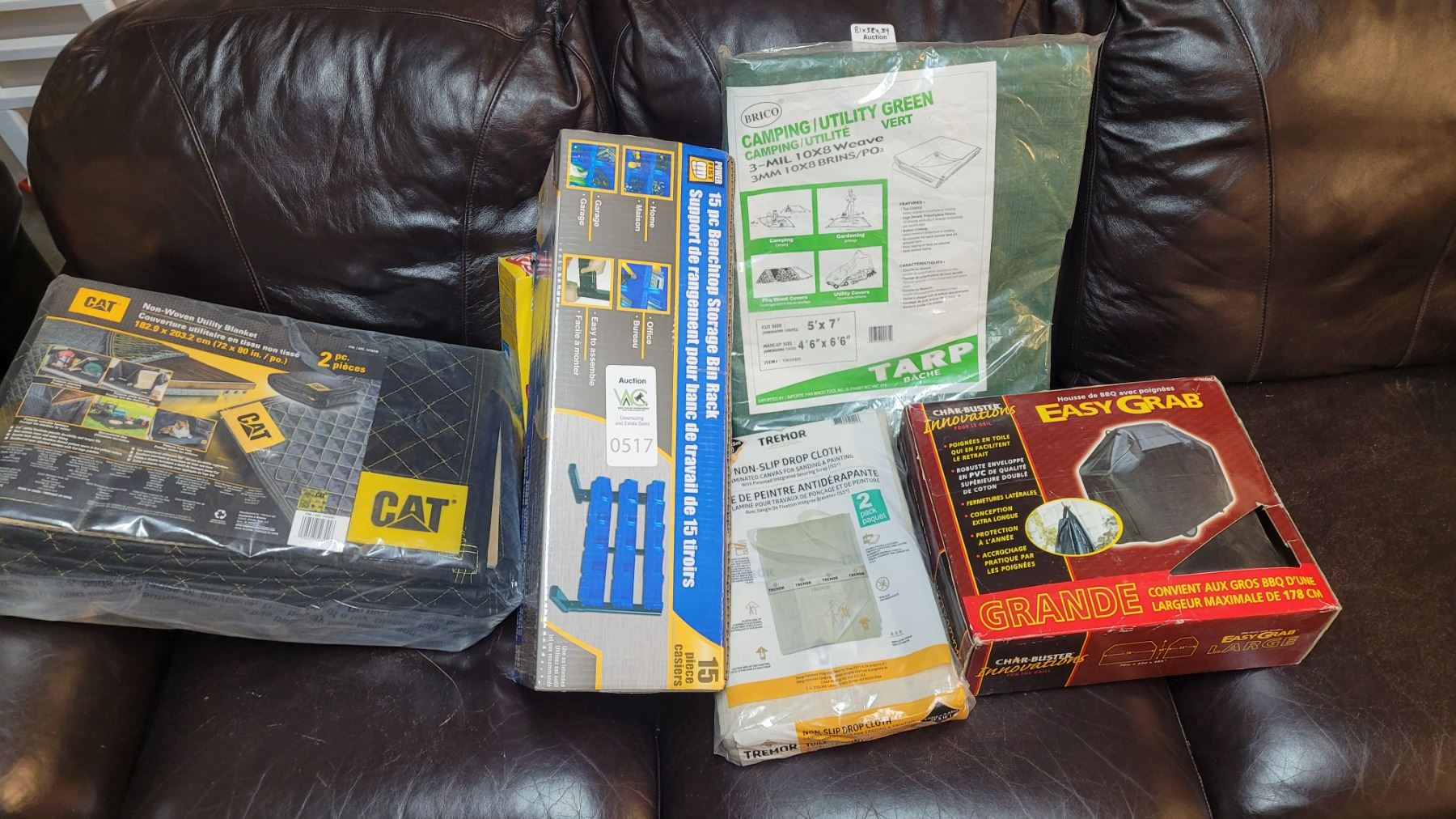Bench top storage bin rack, BBQ cover. CAT utility blanket and more. Puckup at 2 pm