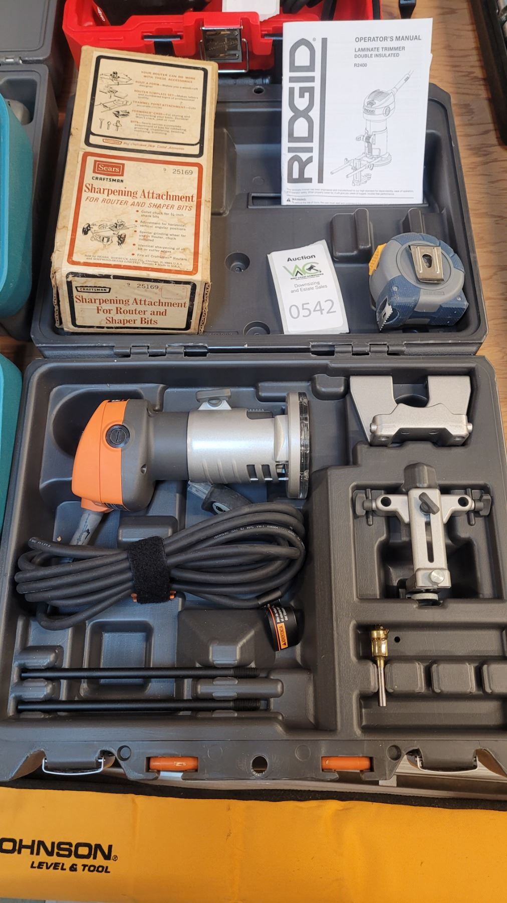 Laminate trimmer and Sears sharpening attachment. Pickup at 2 pm