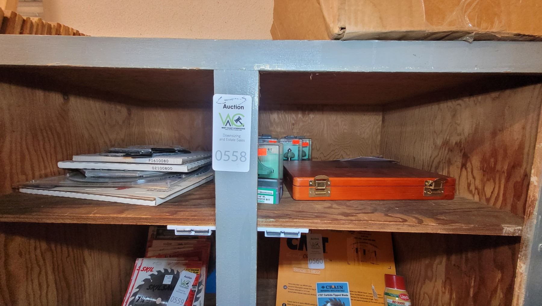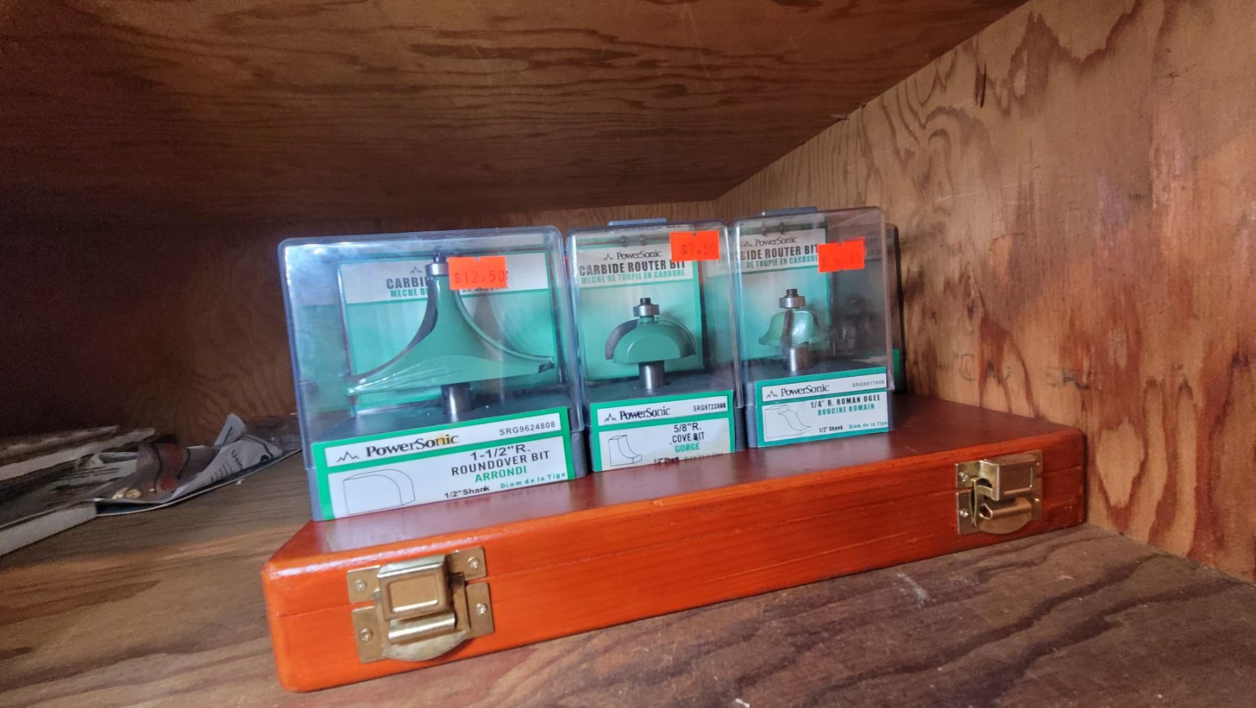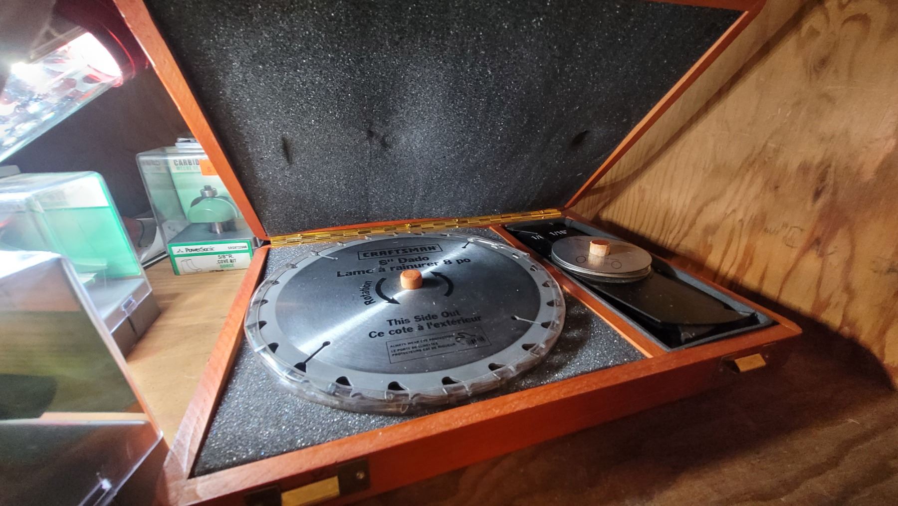 Minimum 10 blades. Craftsman DADO set, Carbine router bits. Pickup at 2 pm