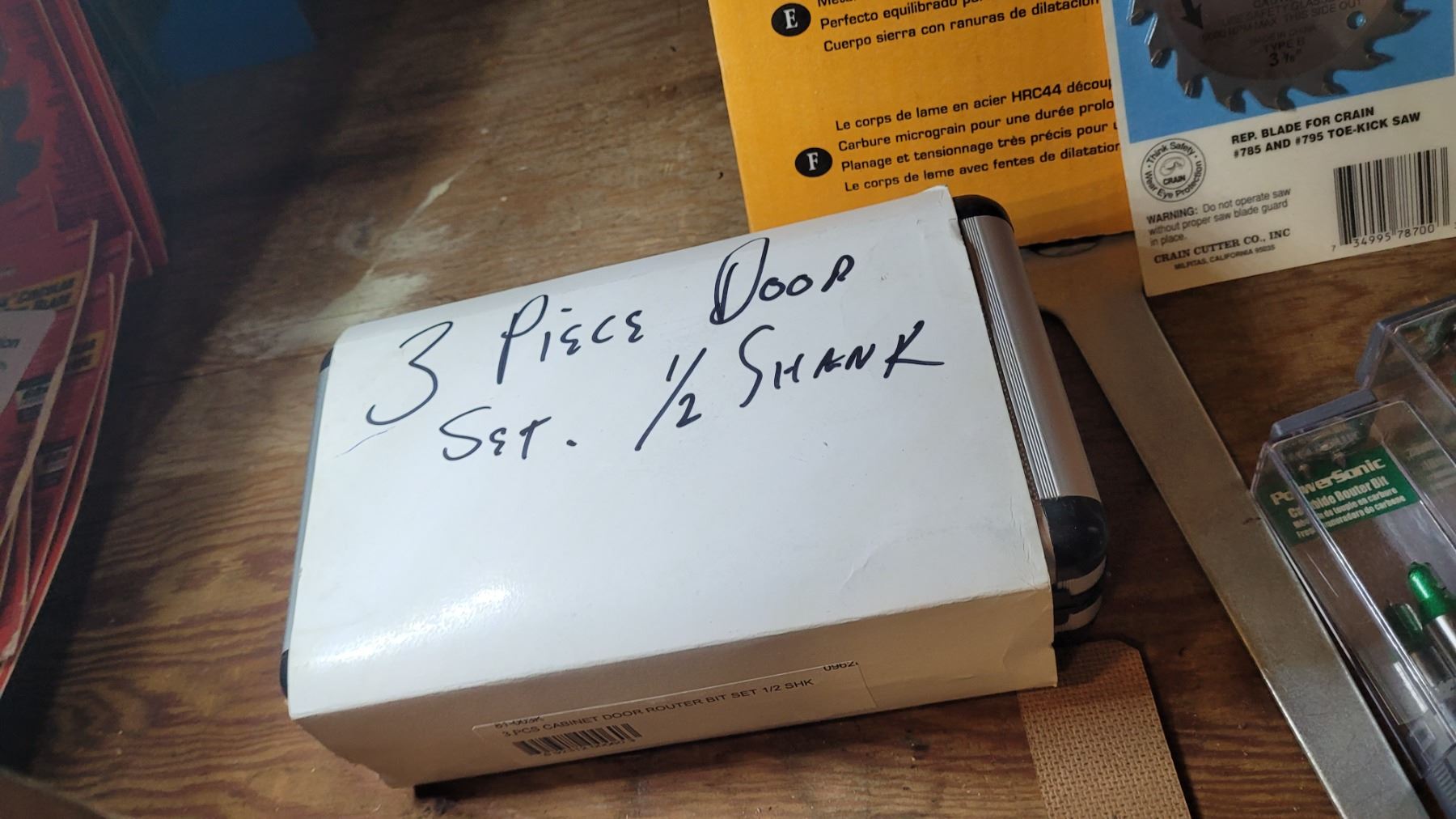 Minimum 10 blades. 3 peace cabinet door router bit set. Pickup at 2 pm