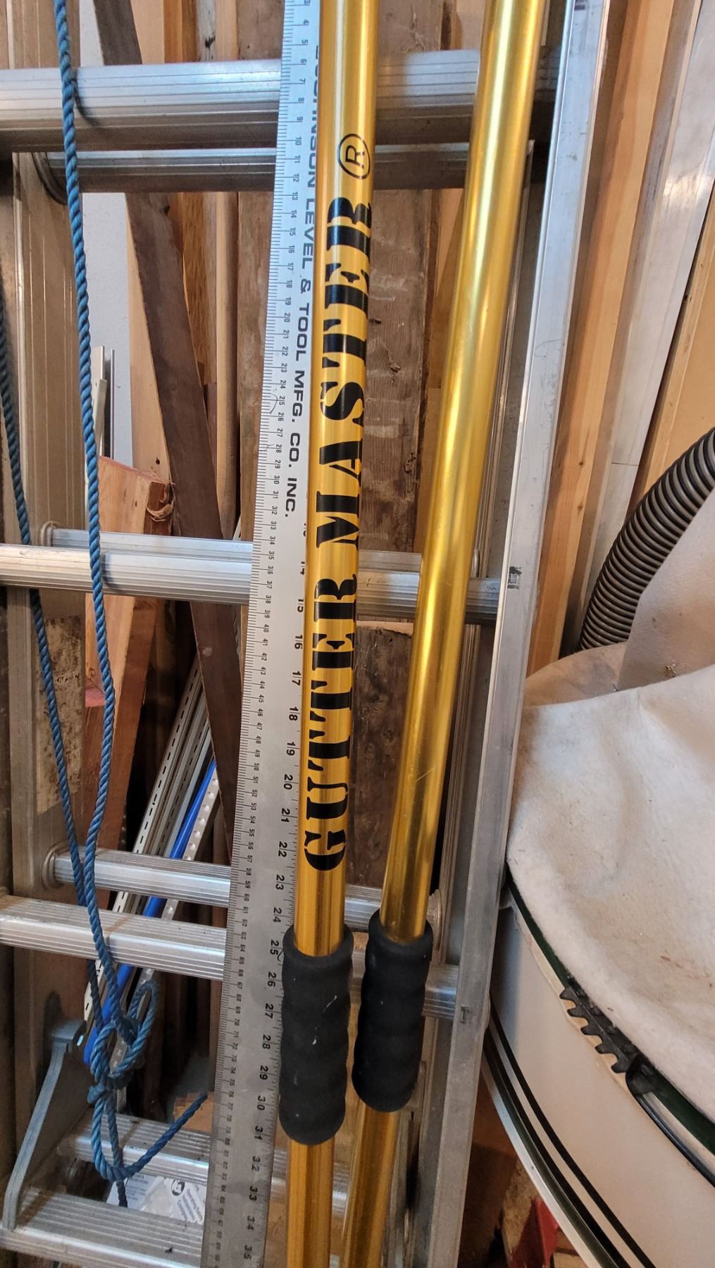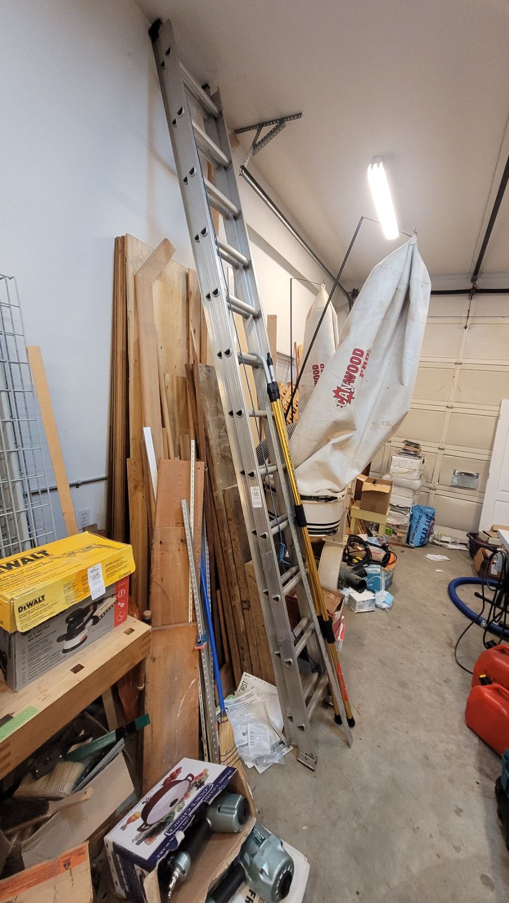 Extension ladder, 2 x gutter masters. 72" metal measure. Pickup at 2 pm