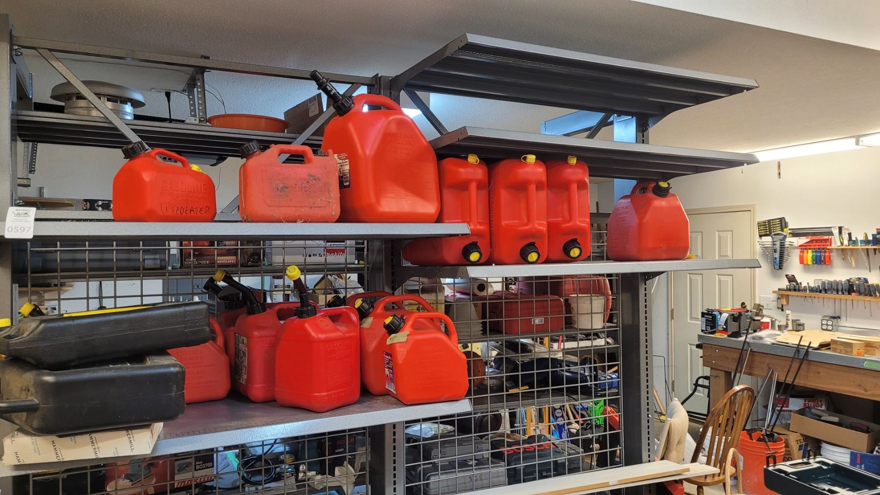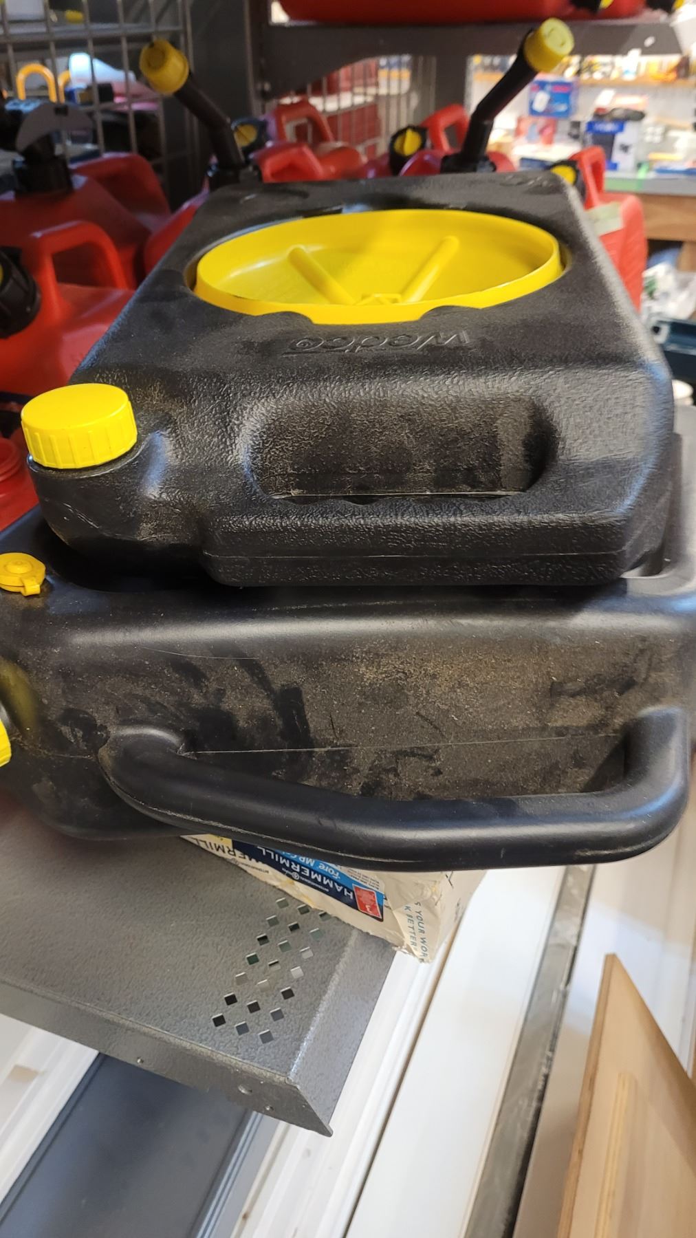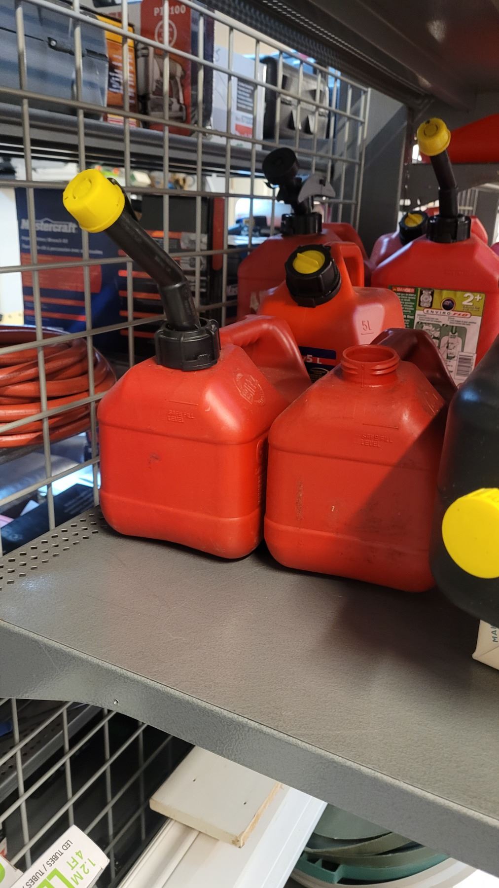 Gas & oil cans 3 shelves. Pickup at 2 pm