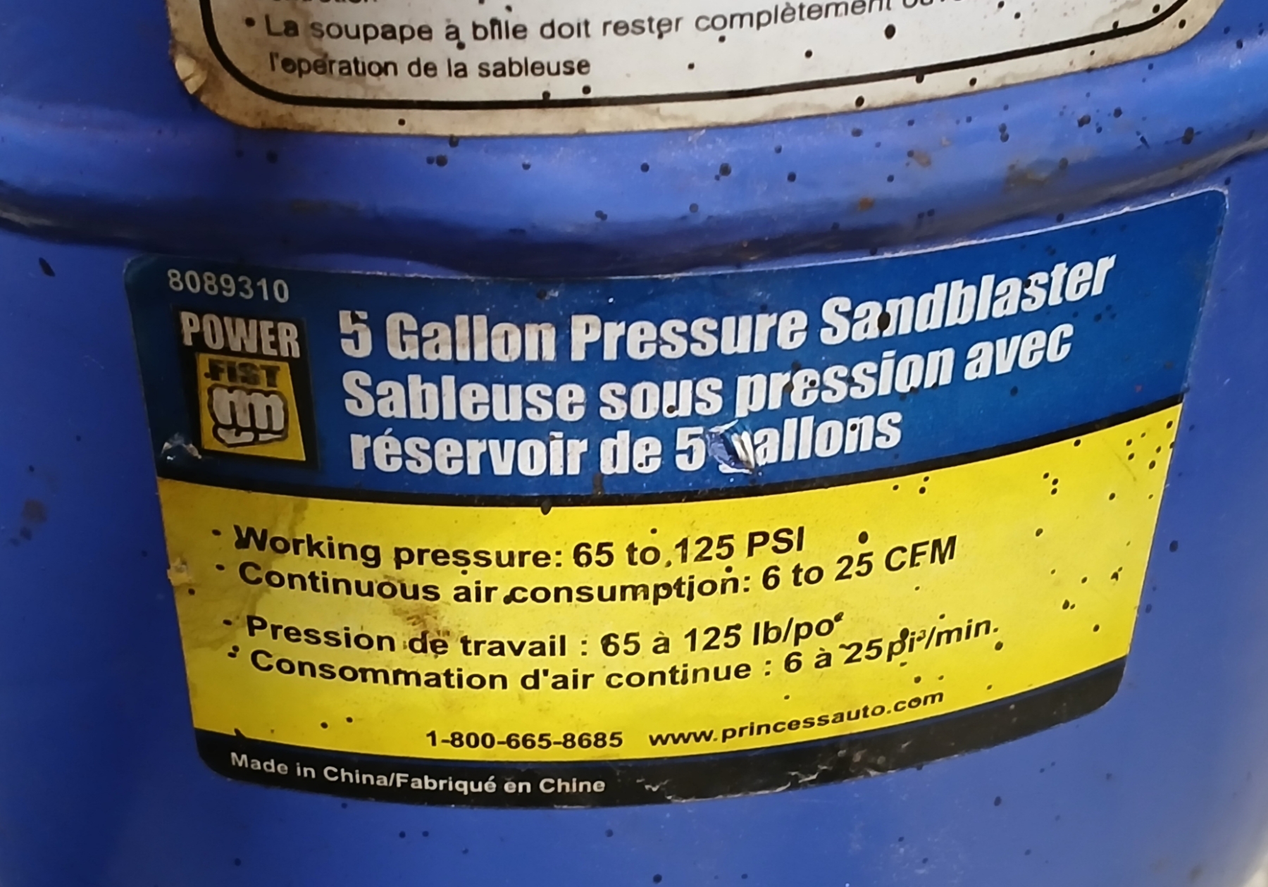 Lot 391 POWER FIST 5GAL PRESSURE SANDBLASTER