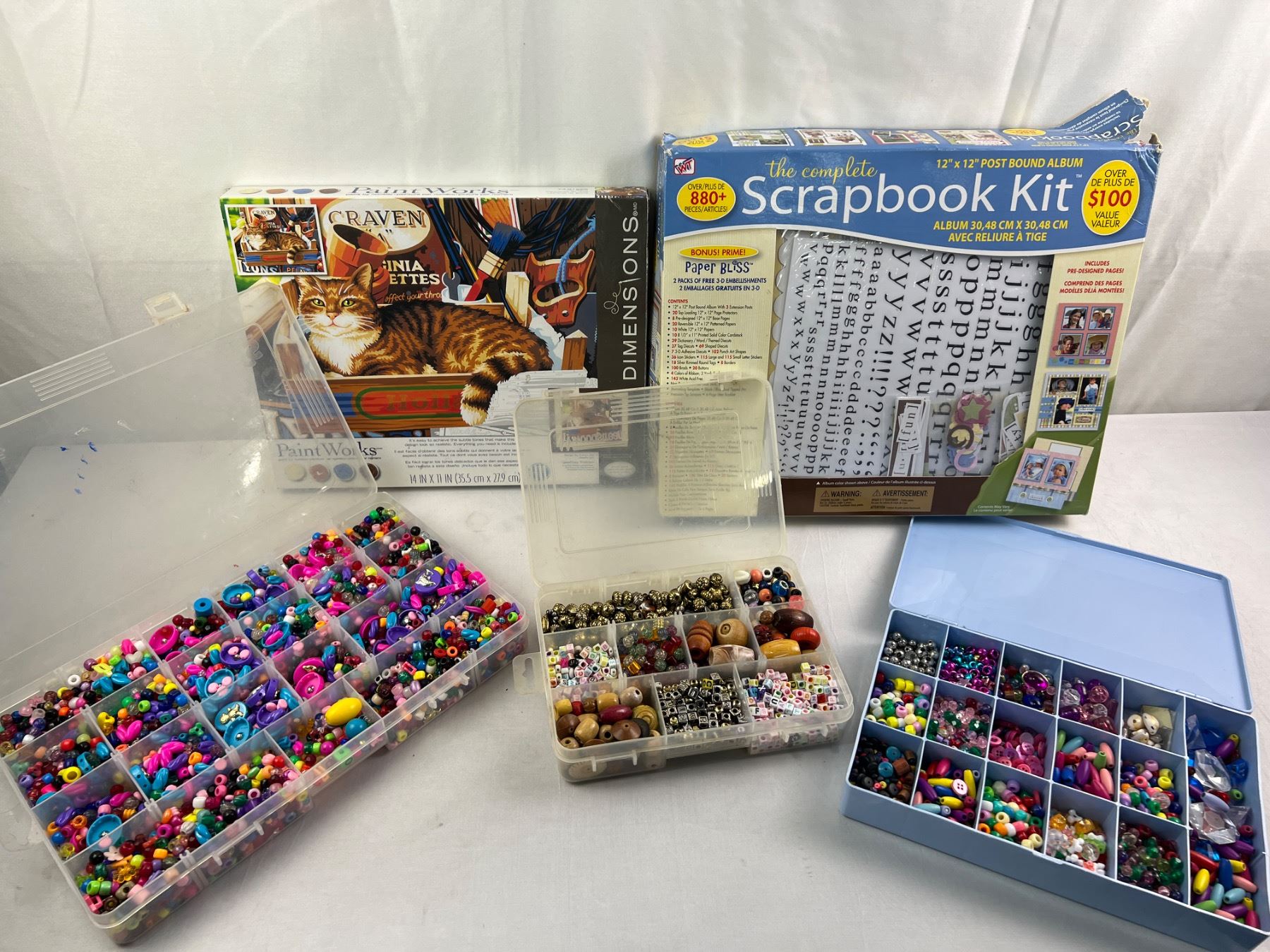 3 Contaners of Various Beads, Dimensions Paint Works Kit & Scrapbook Kit
