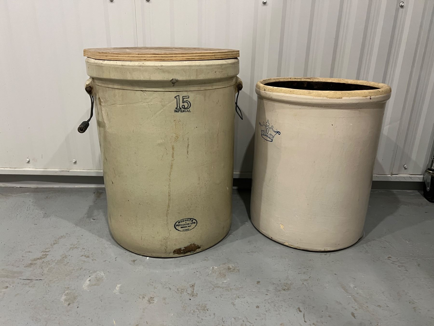 Lot 1520 2 Large Vintage Stoneware Crocks