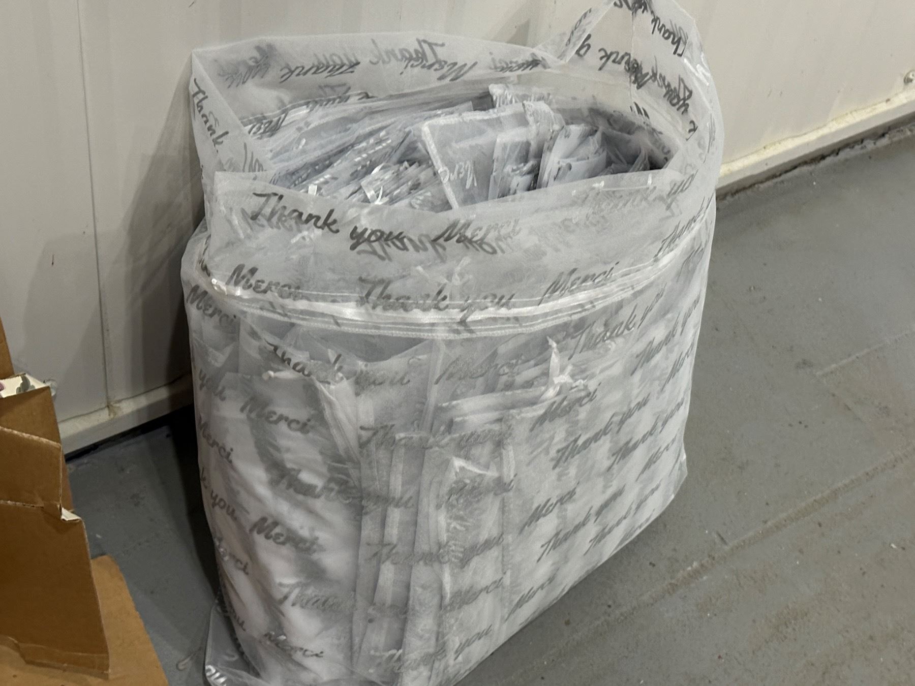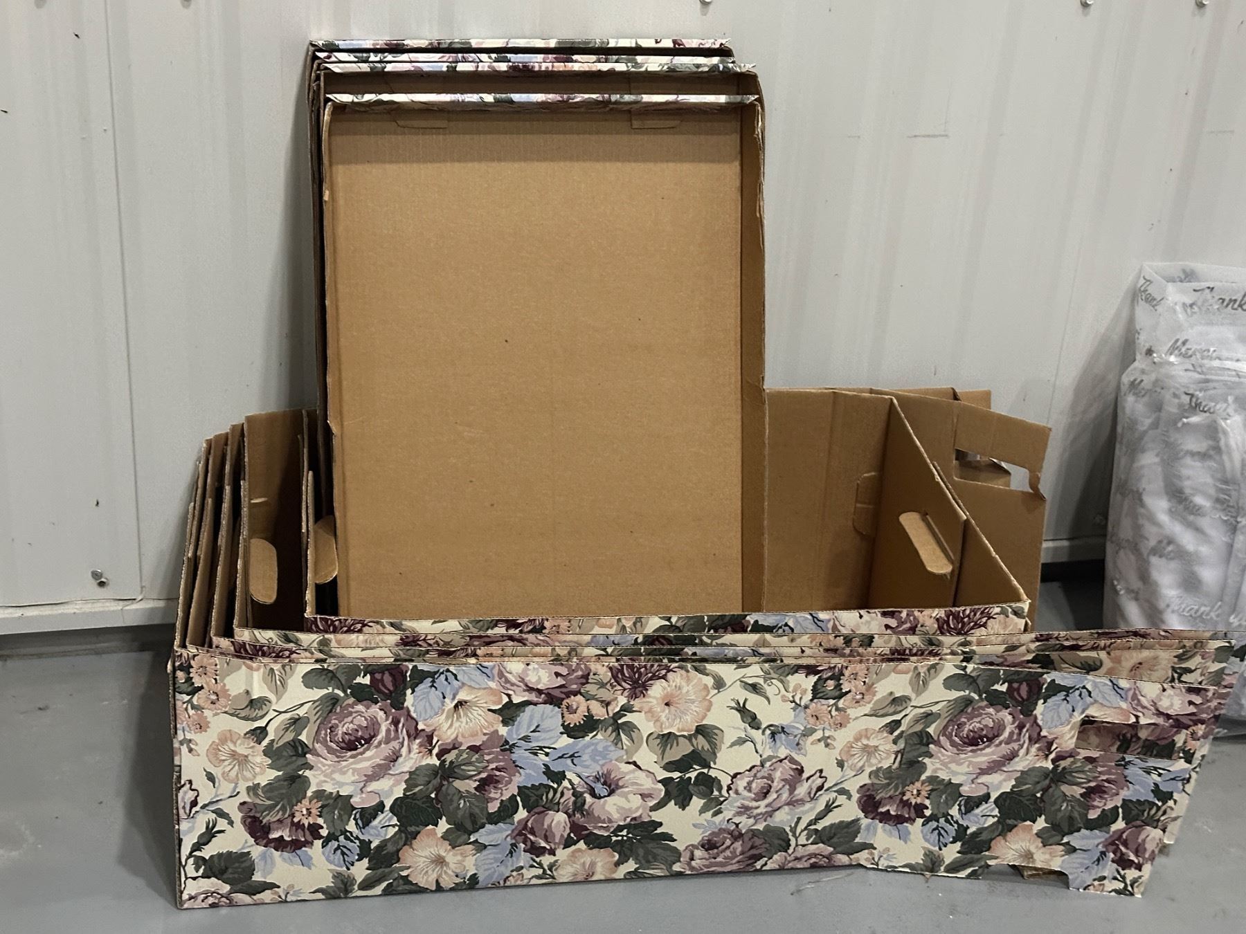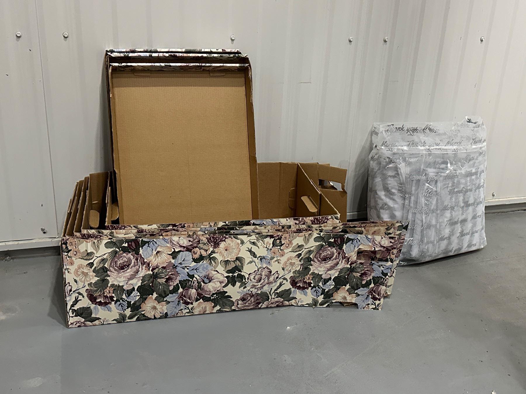 Lot 1551 4 Cardboard Flower Storage Boxes with Lids and 100 - Organza Thank You Bags