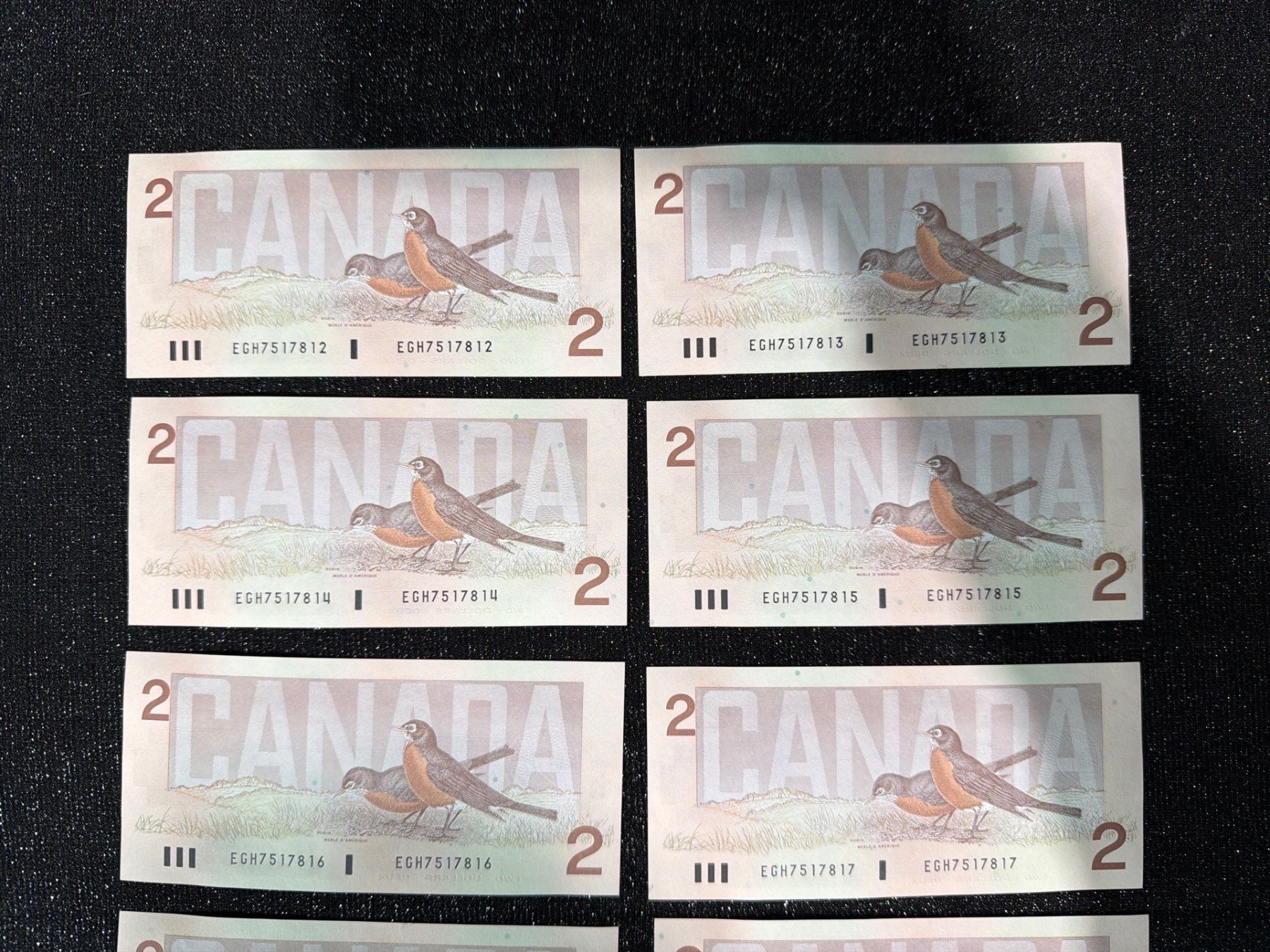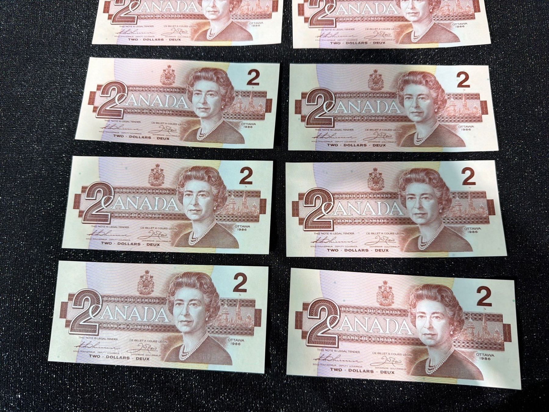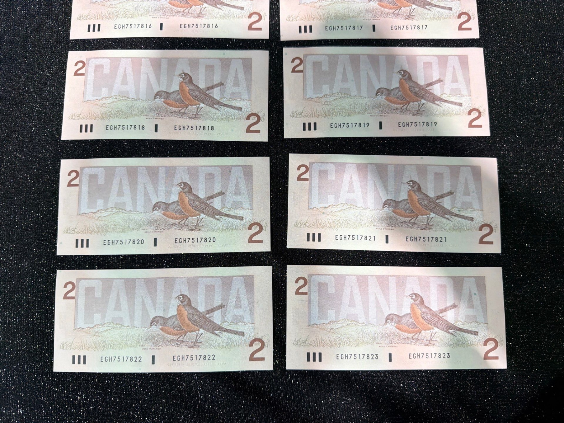 Lot 7 Canadian $2 Bills Consecutive Serial Numbers