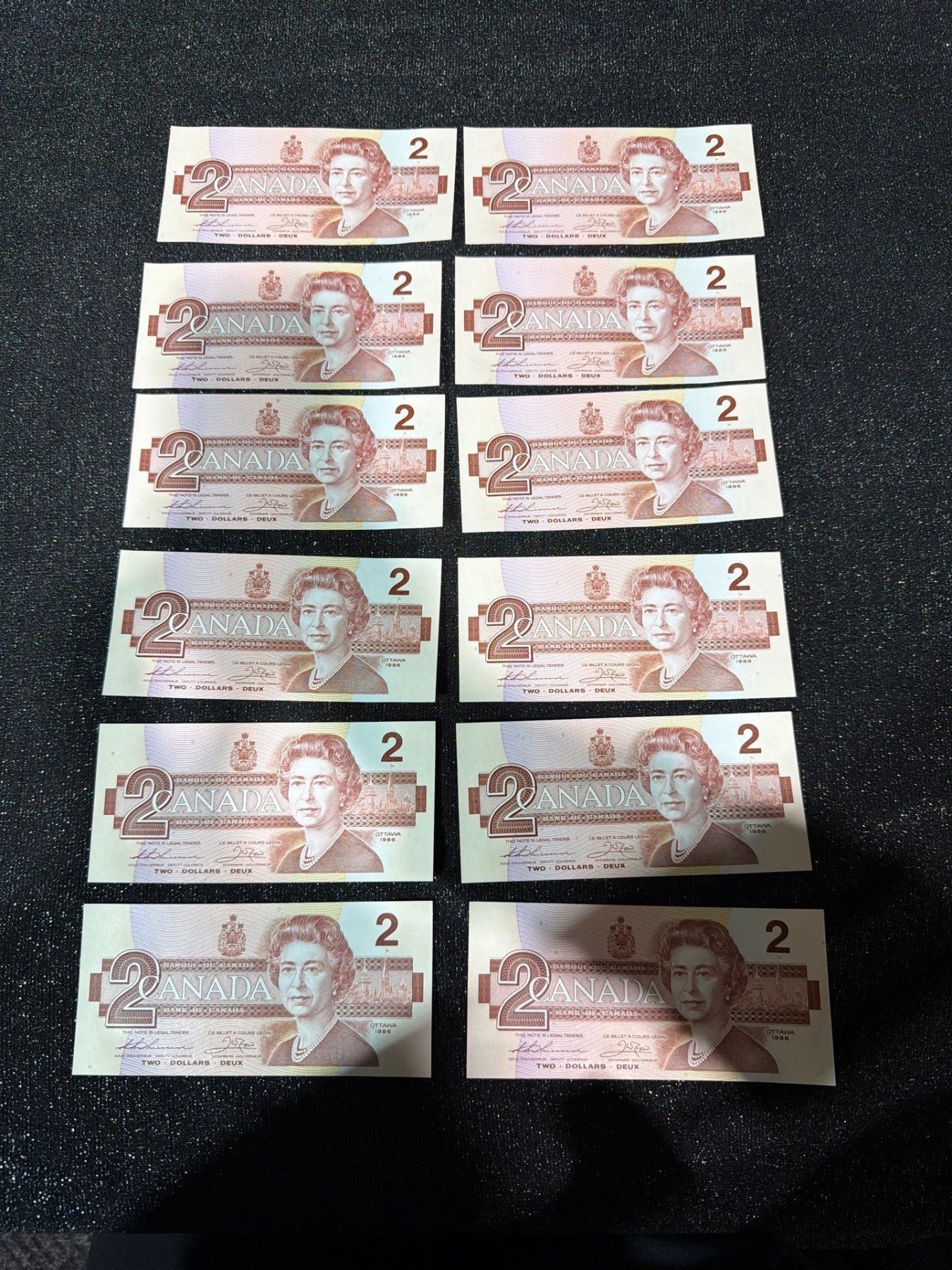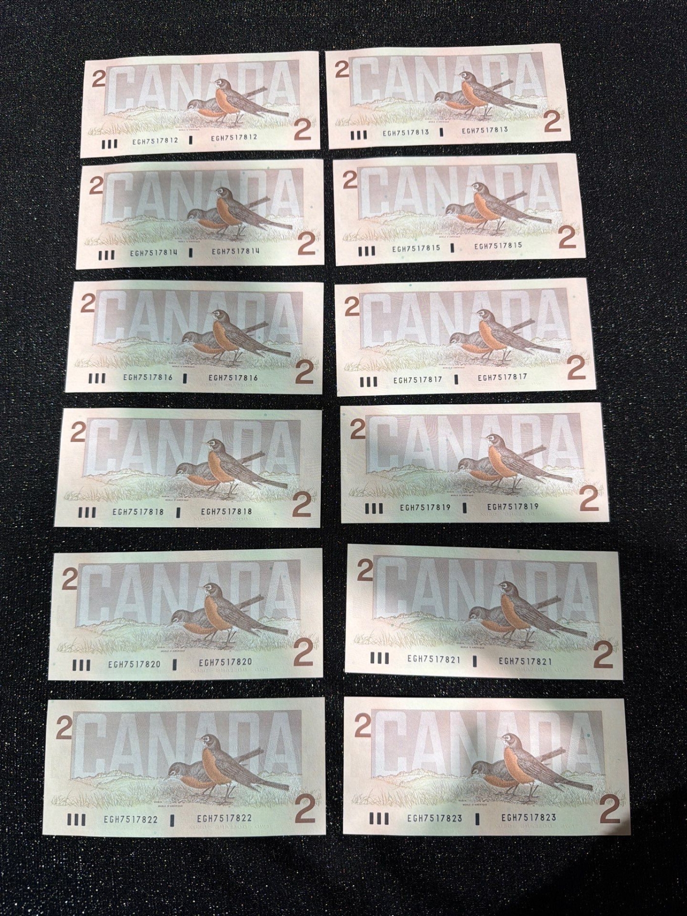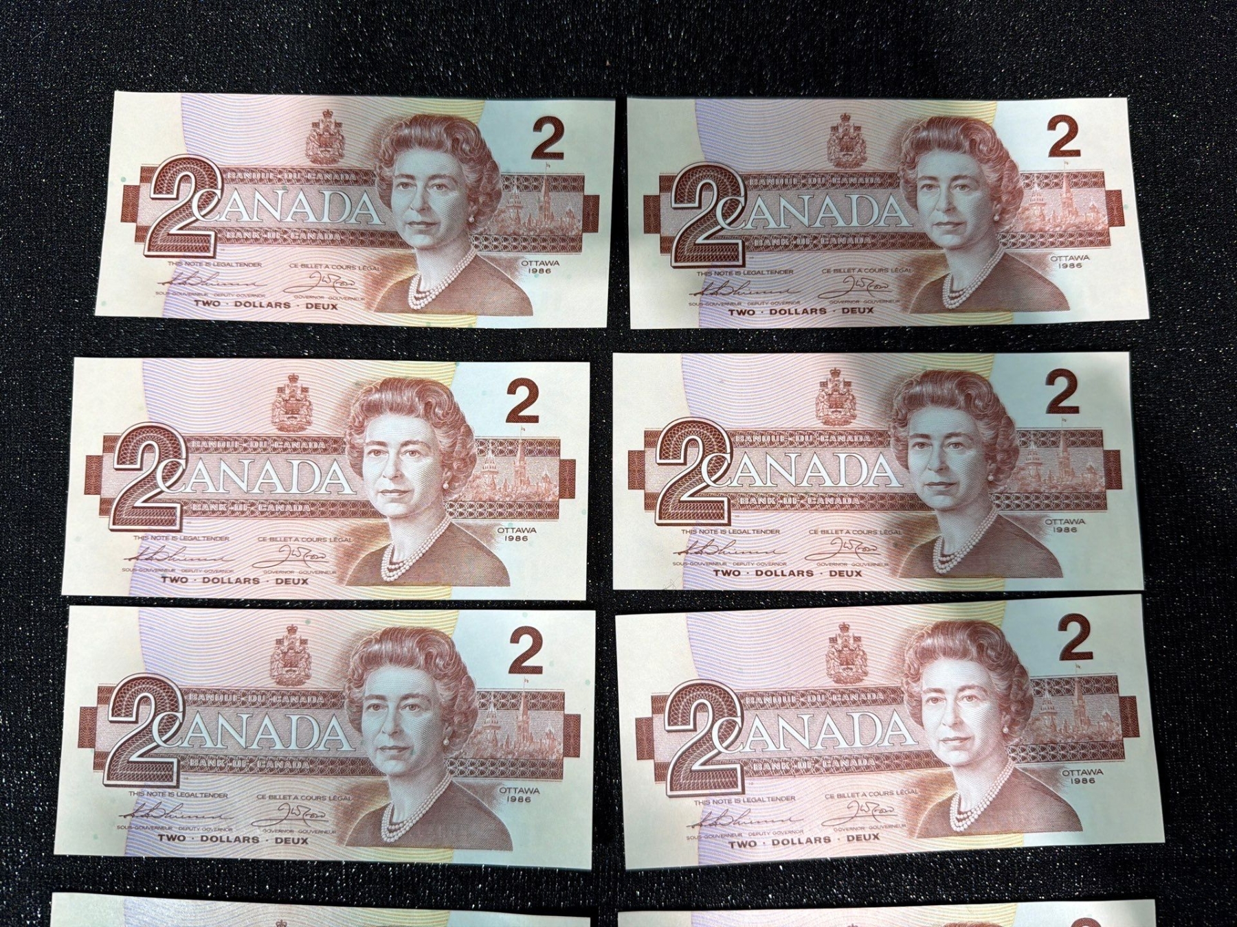 Lot 7 Canadian $2 Bills Consecutive Serial Numbers
