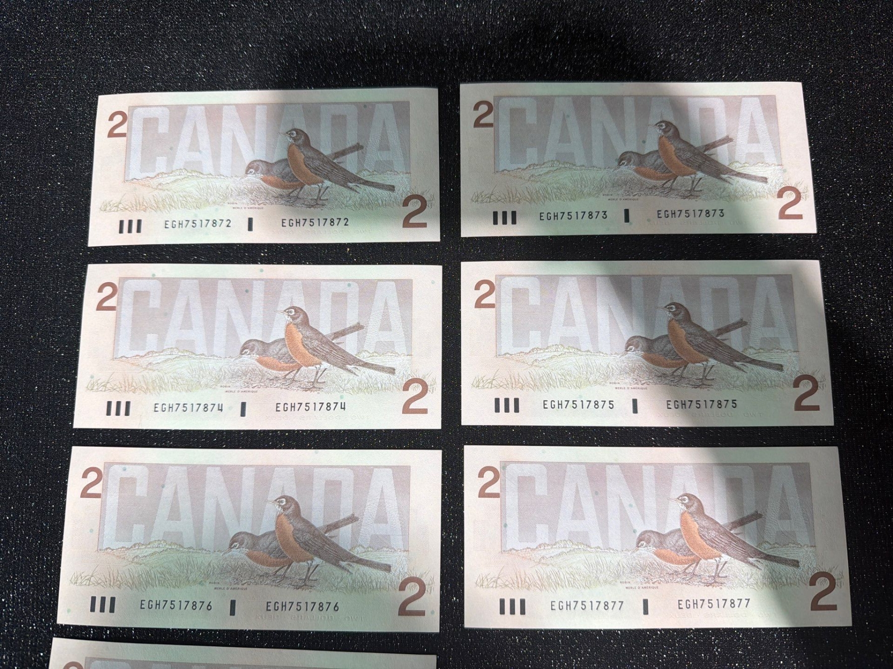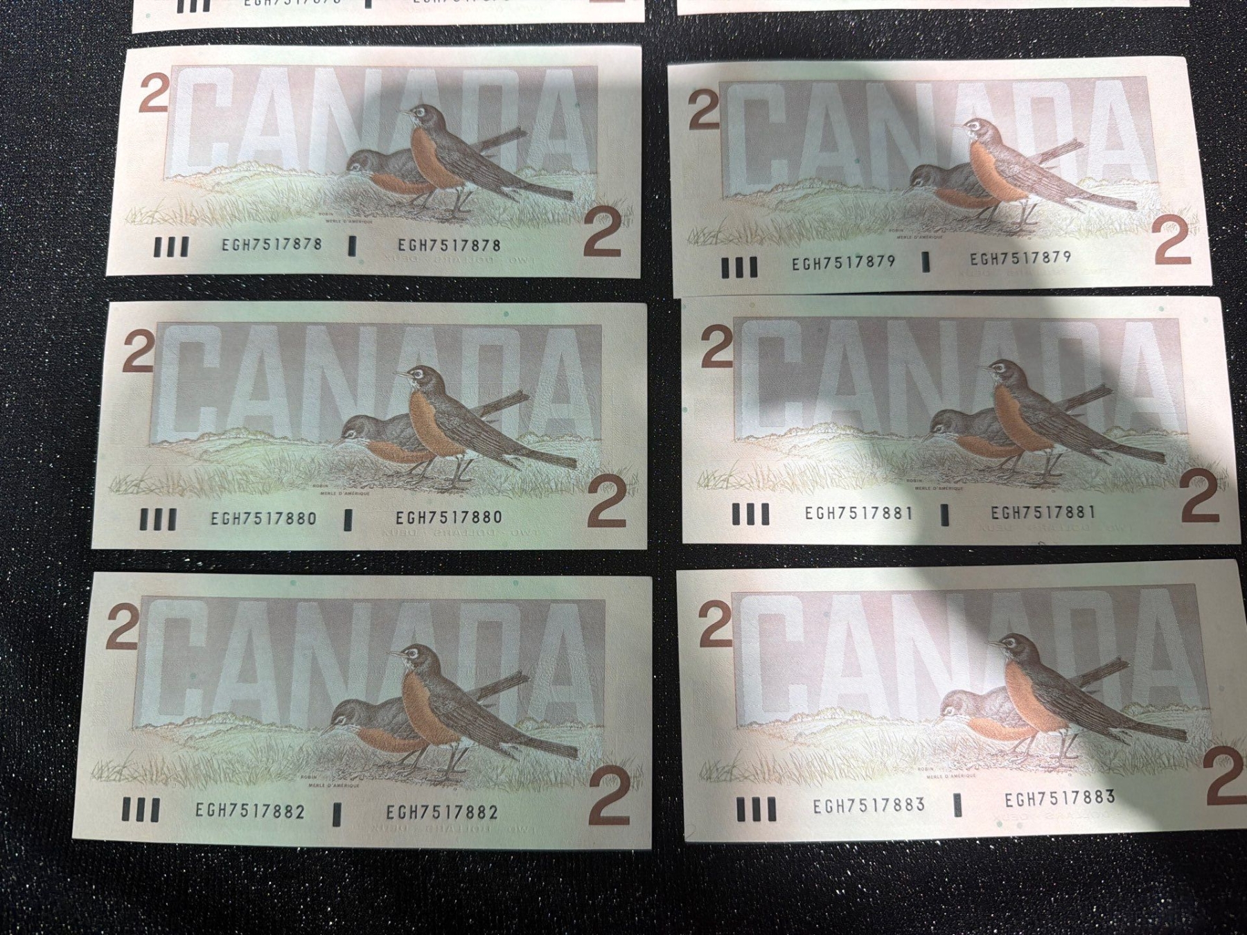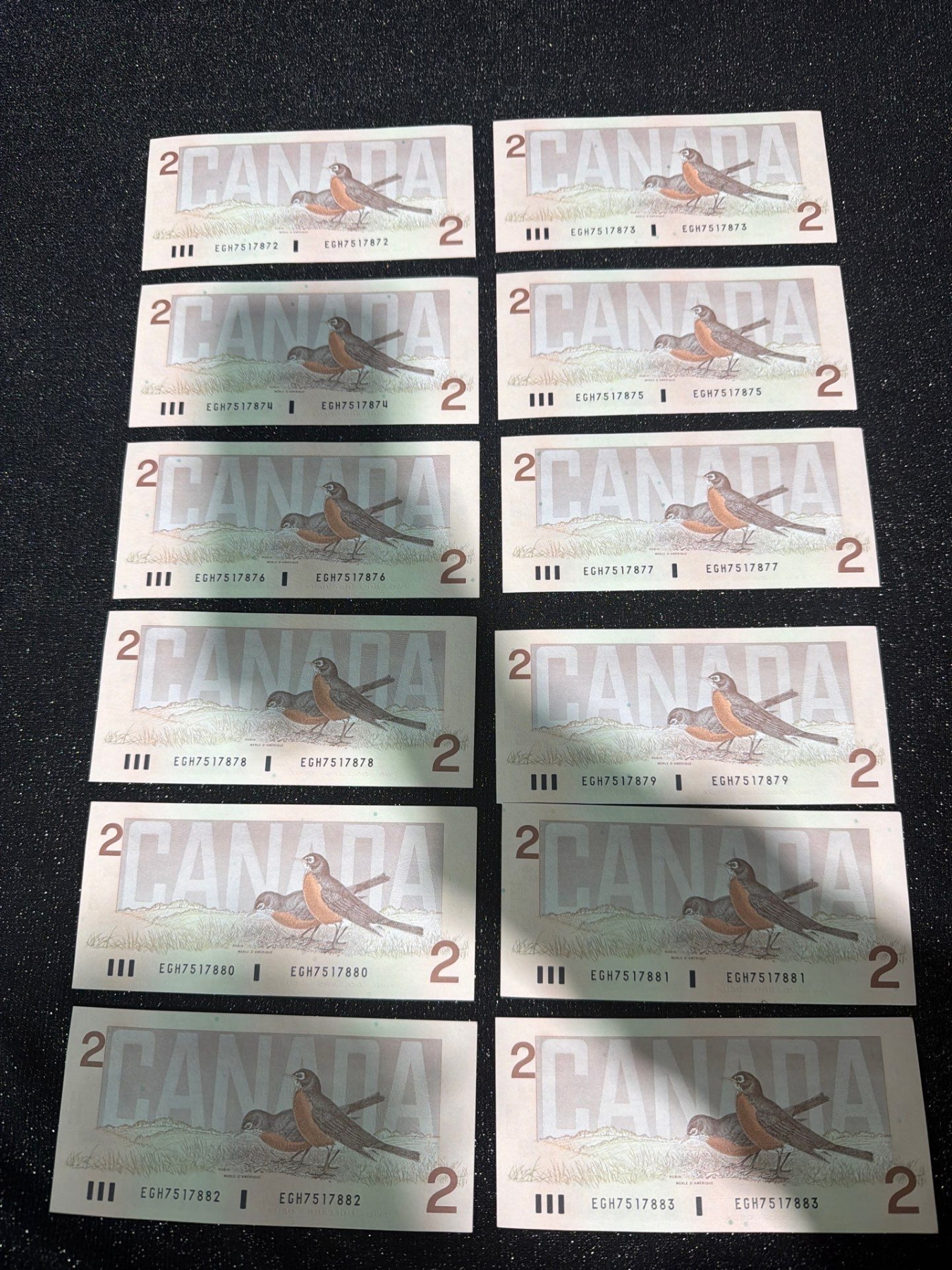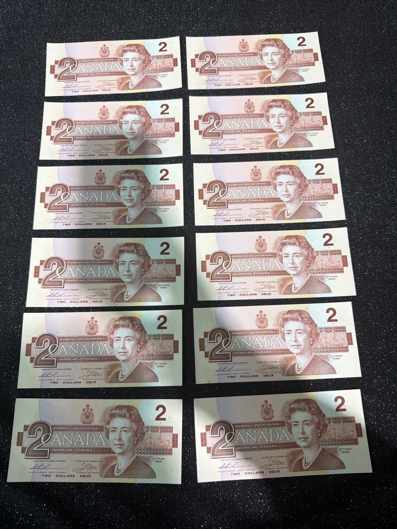 Lot 12 Canadian $2 Bills Consecutive Serial Numbers
