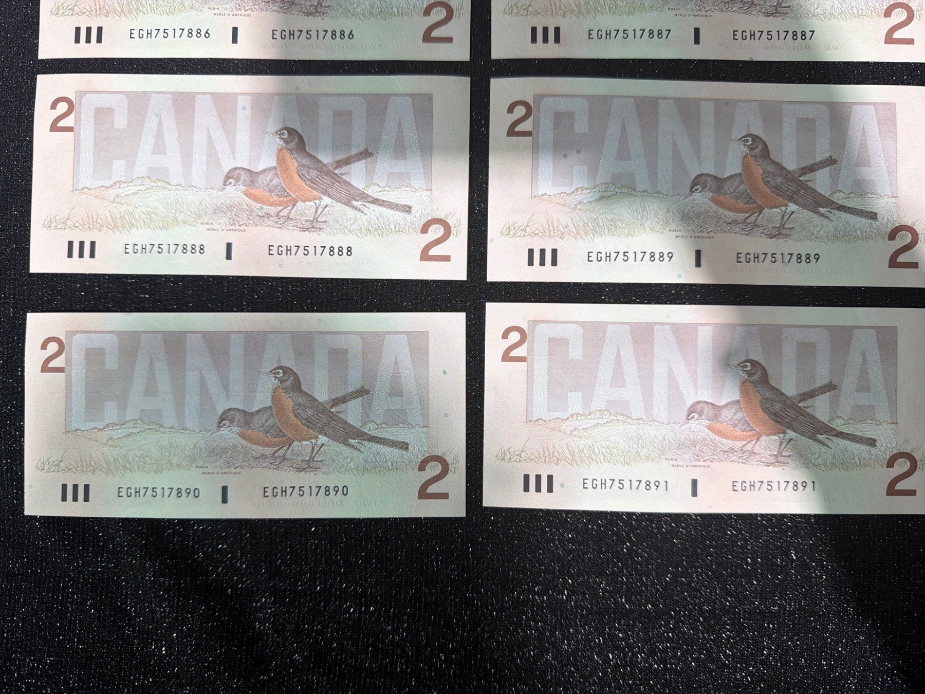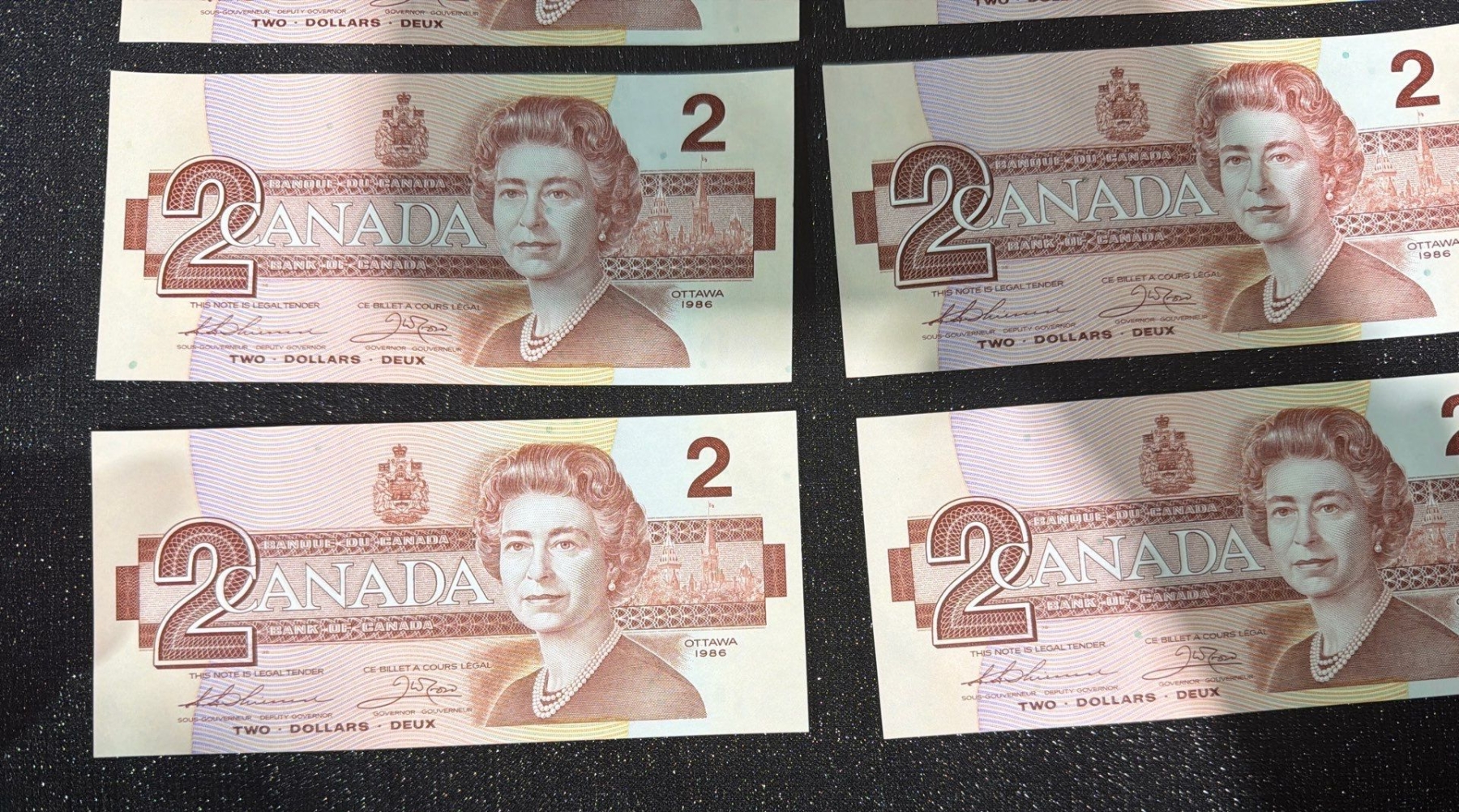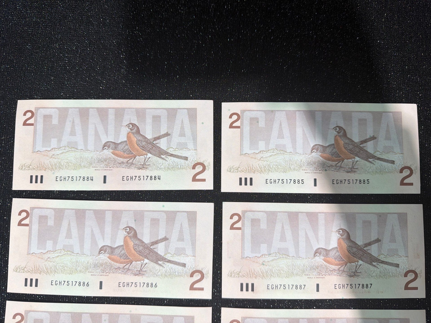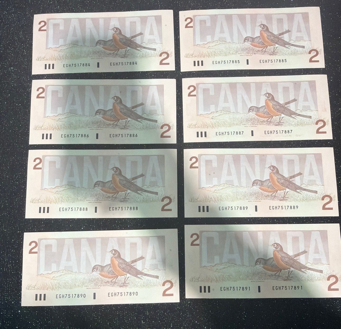 Lot 13 Canadian $2 Bills Consecutive Serial Numbers