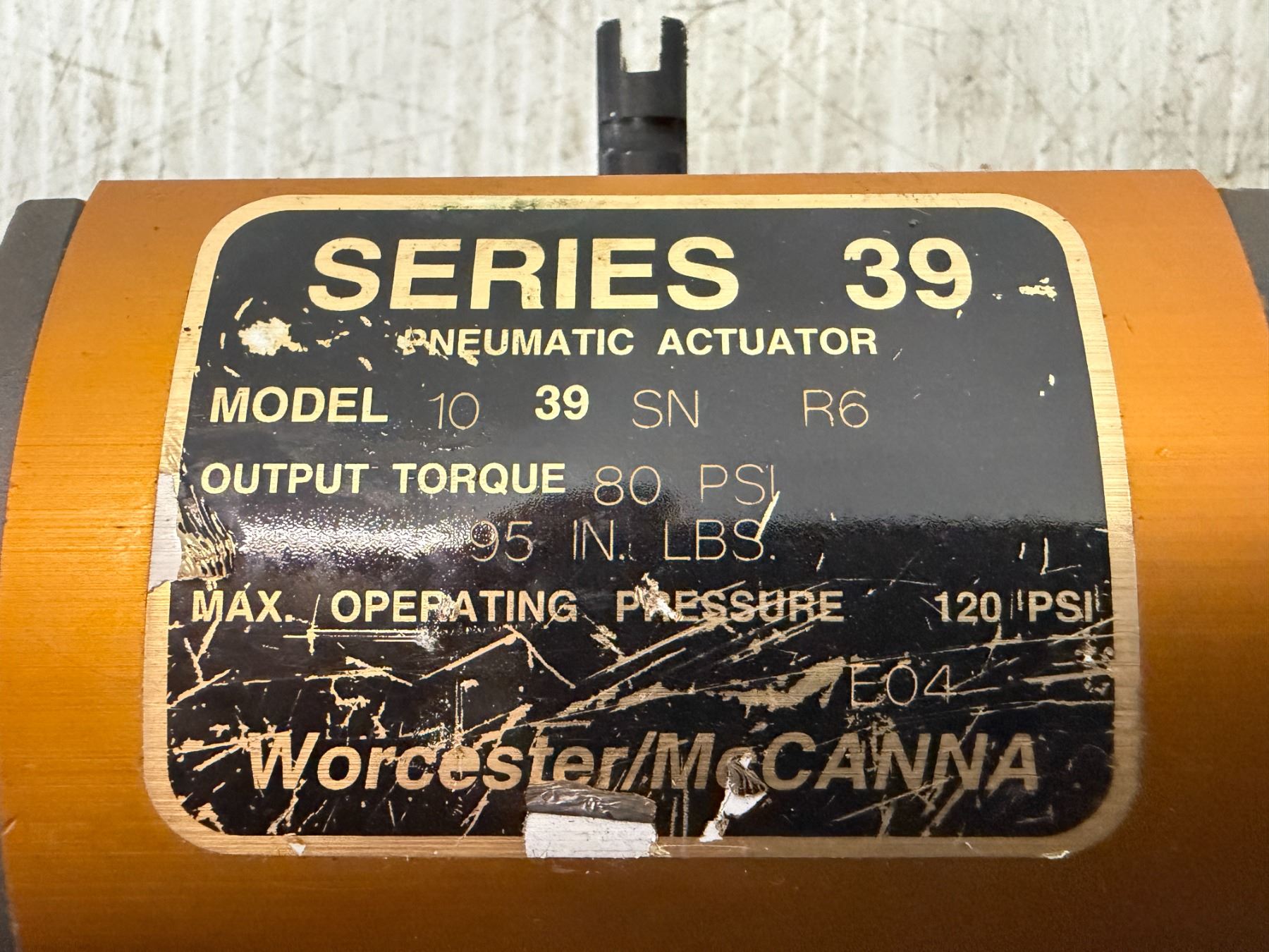 Worchester / McCanna #10 39 SN R6 Pneumatic Actuator