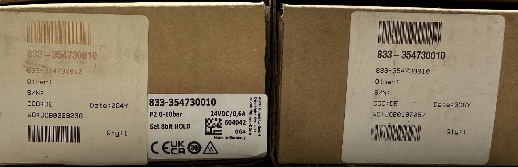 (2) Asco #833-354730010 Joucomatic Valves