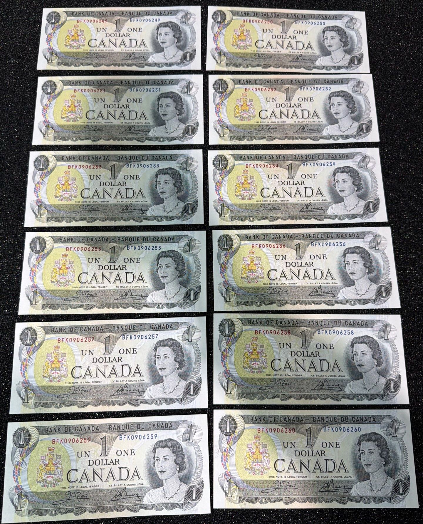 Lot 21 Canadian $1 Bills Consecutive Serial Numbers