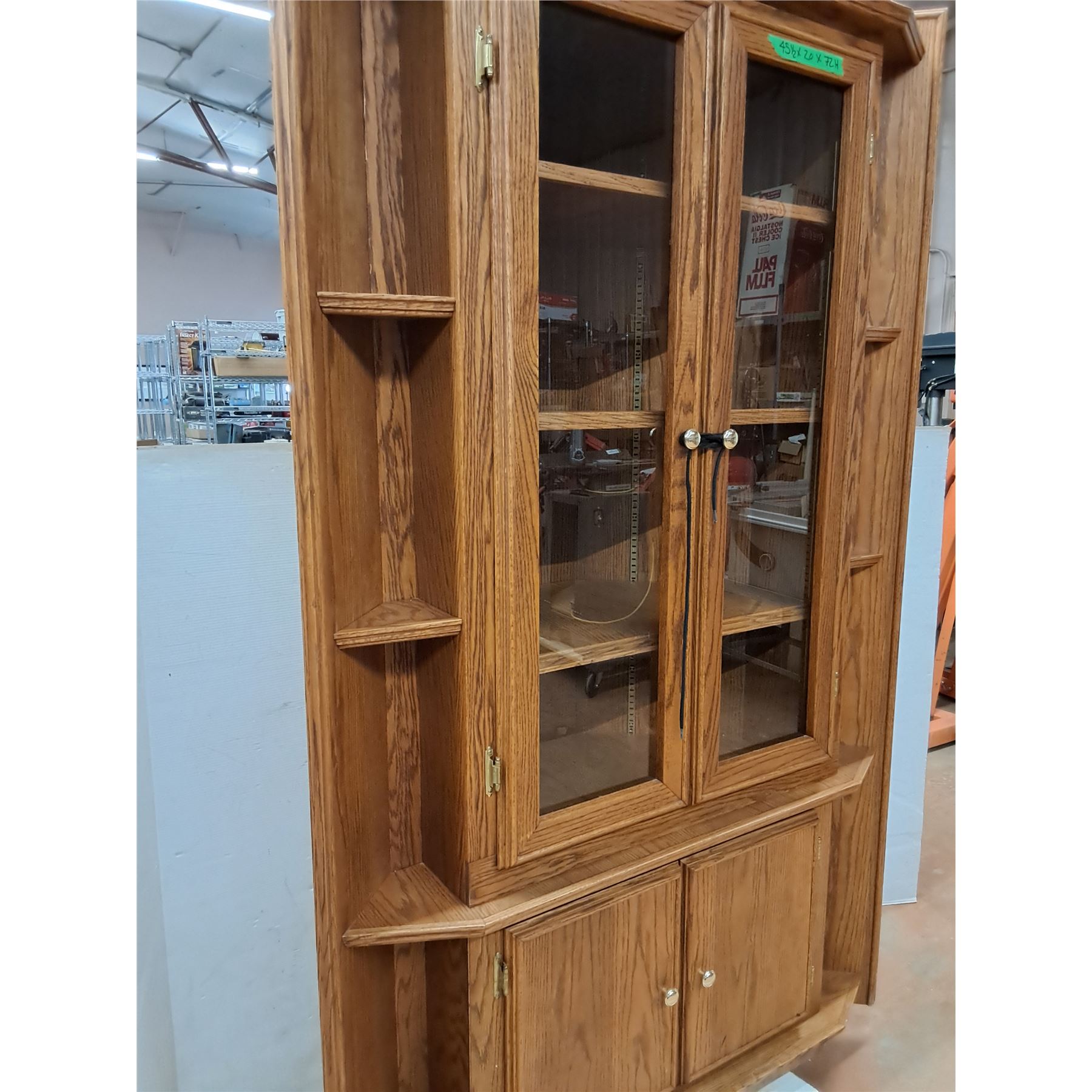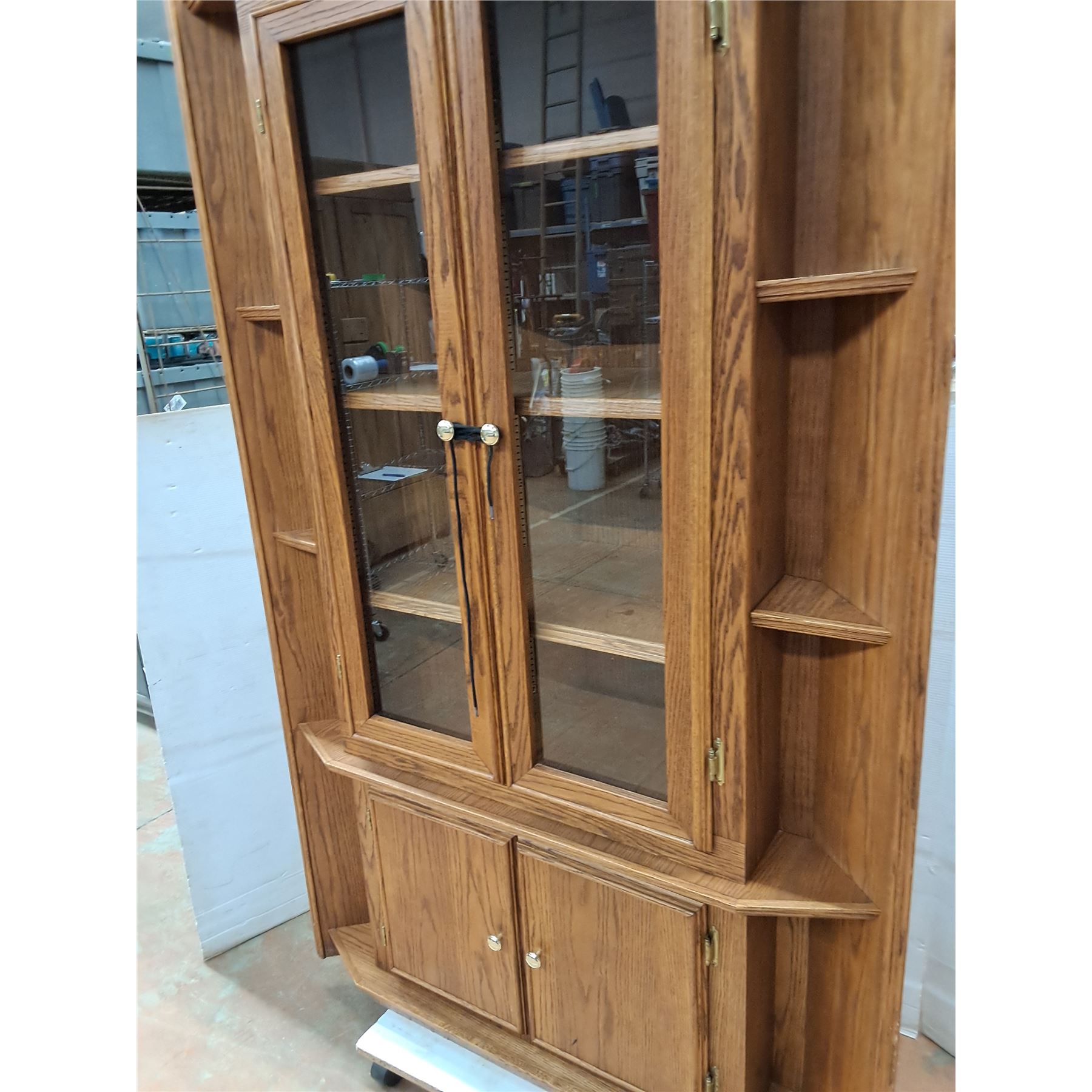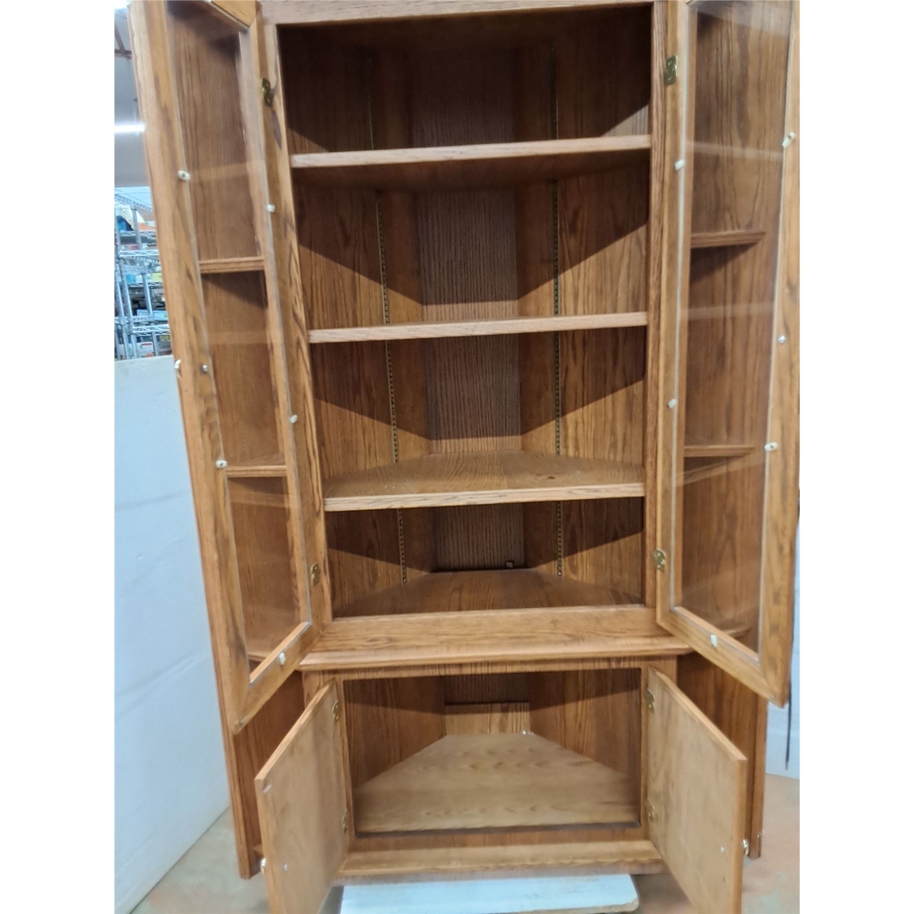 Lot 7007 *Wooden Glass Corner Unit Stand. Measurements in Pictures.Pickup Only