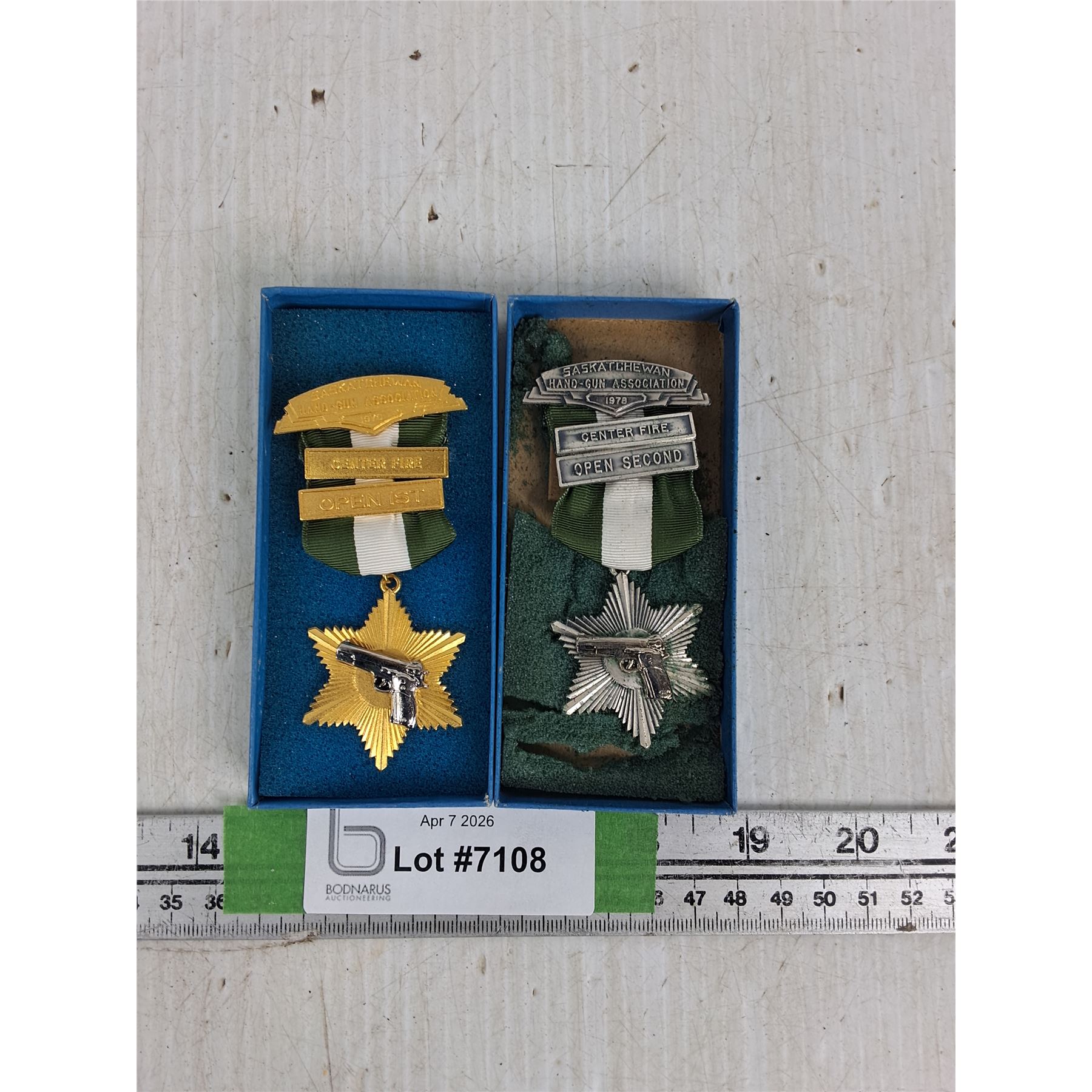 Lot 7108 (2) Saskatchewan Hand Gun Association Medals- Gold And Silver Colored