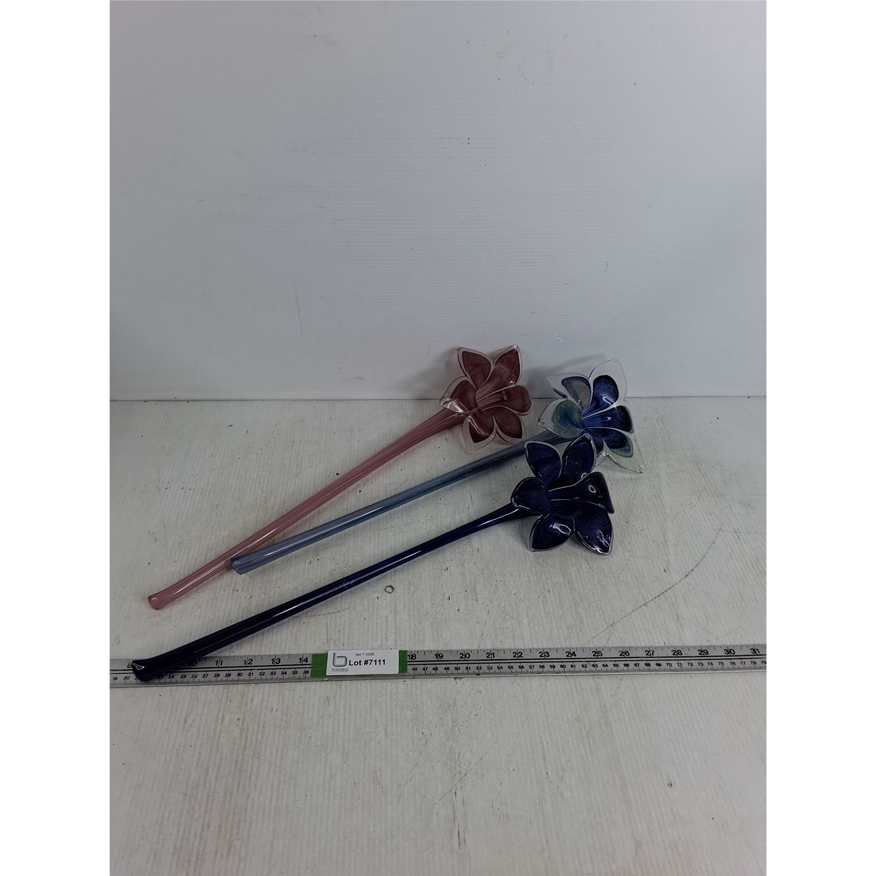 Lot 7111 (3) Glass Work Flowers 21" - PICK UP