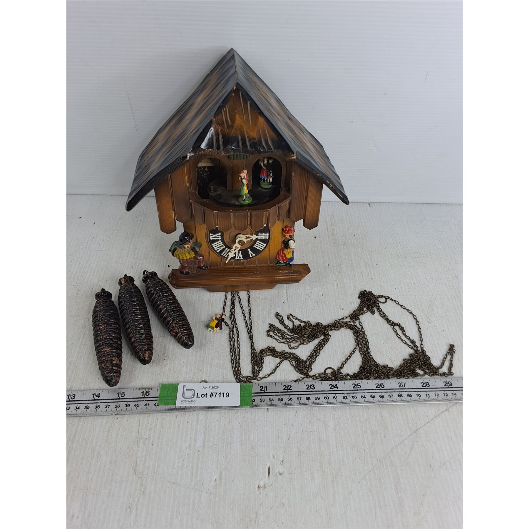 Lot 7119 Wooden Cuckoo Clock- 10.5" As Is (Missing Pendulum, as is)