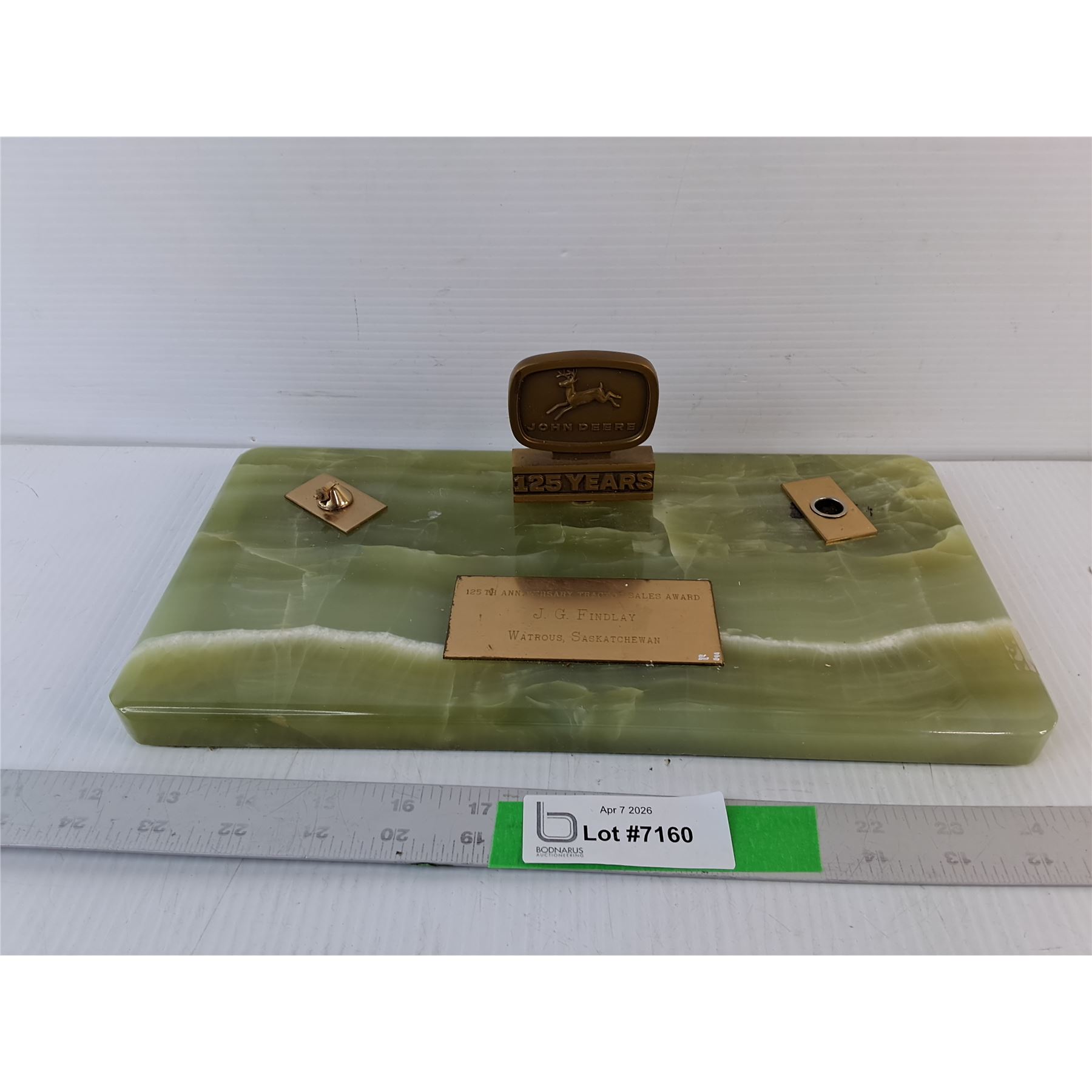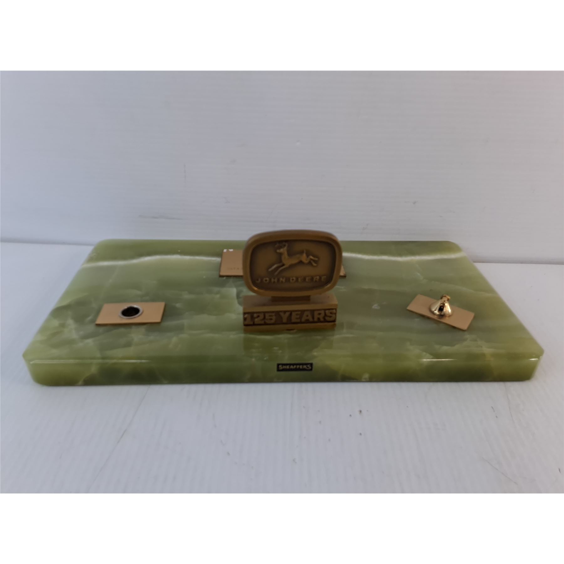 Lot 7160 John Deere Commemorative Marble Pen Desk Set 12.75" x 6.5"