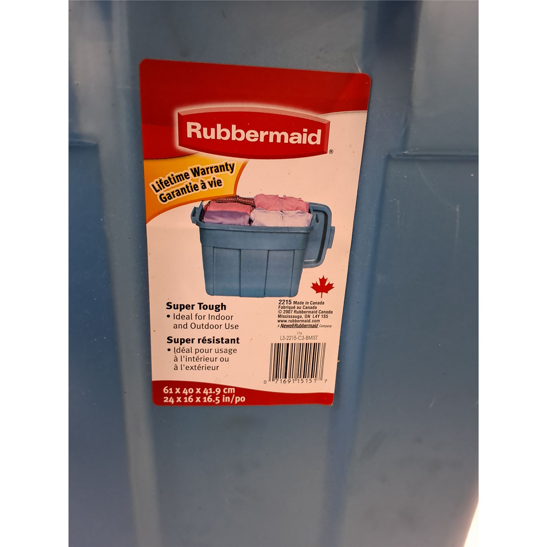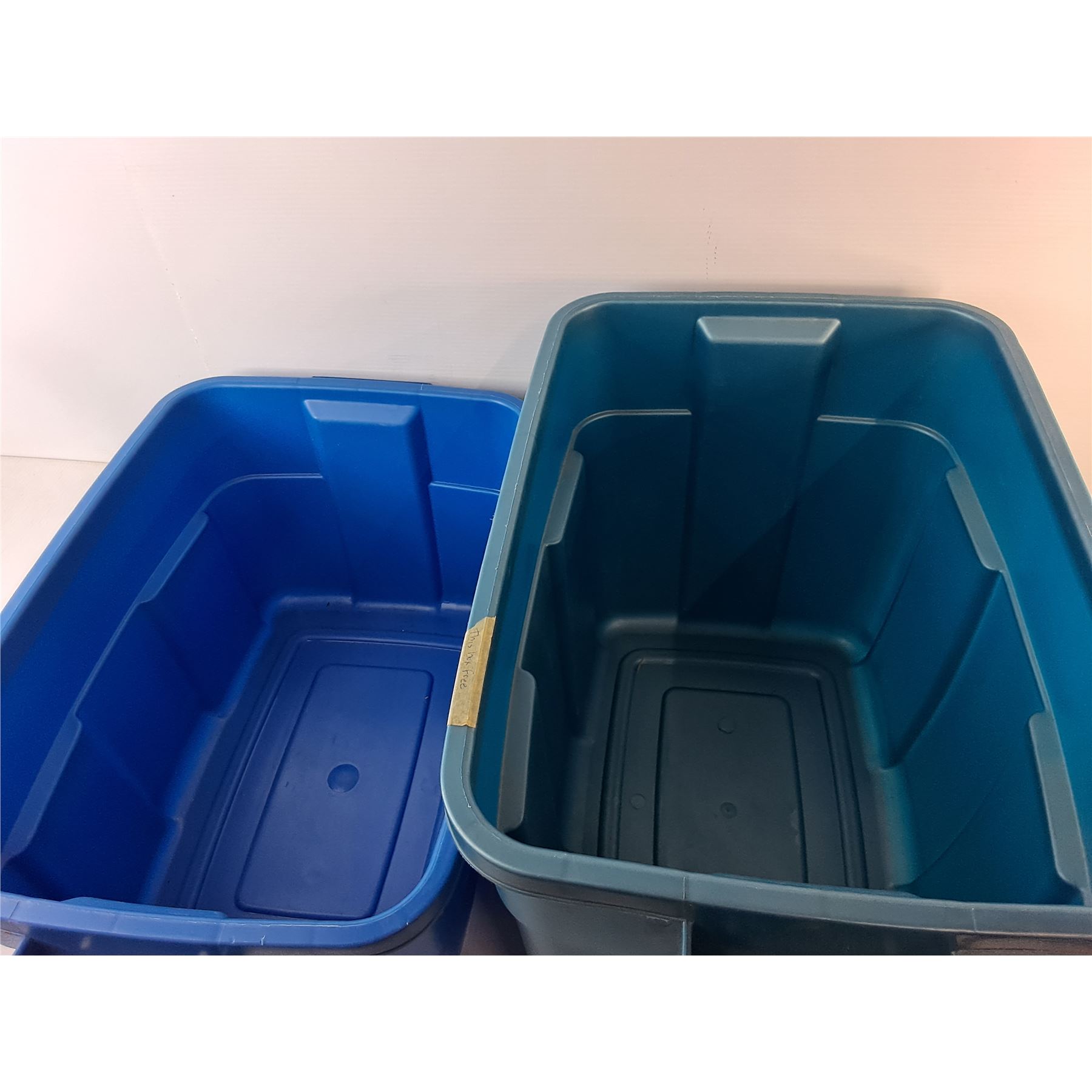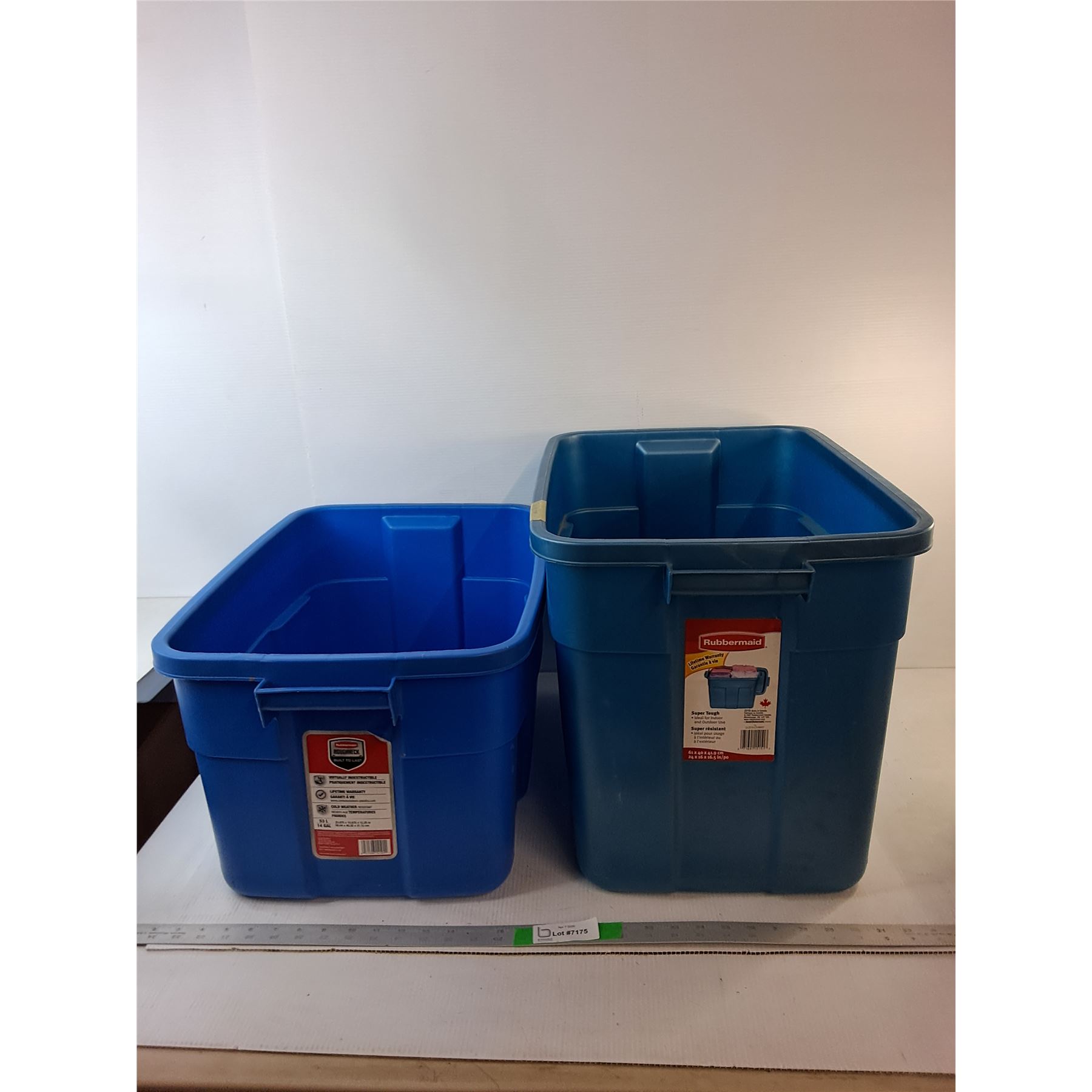 Lot 7175 (2) Rubbermaid Plastic Totes Up to 24" x 16" x 16.5"- No Lids, Cannot Ship
