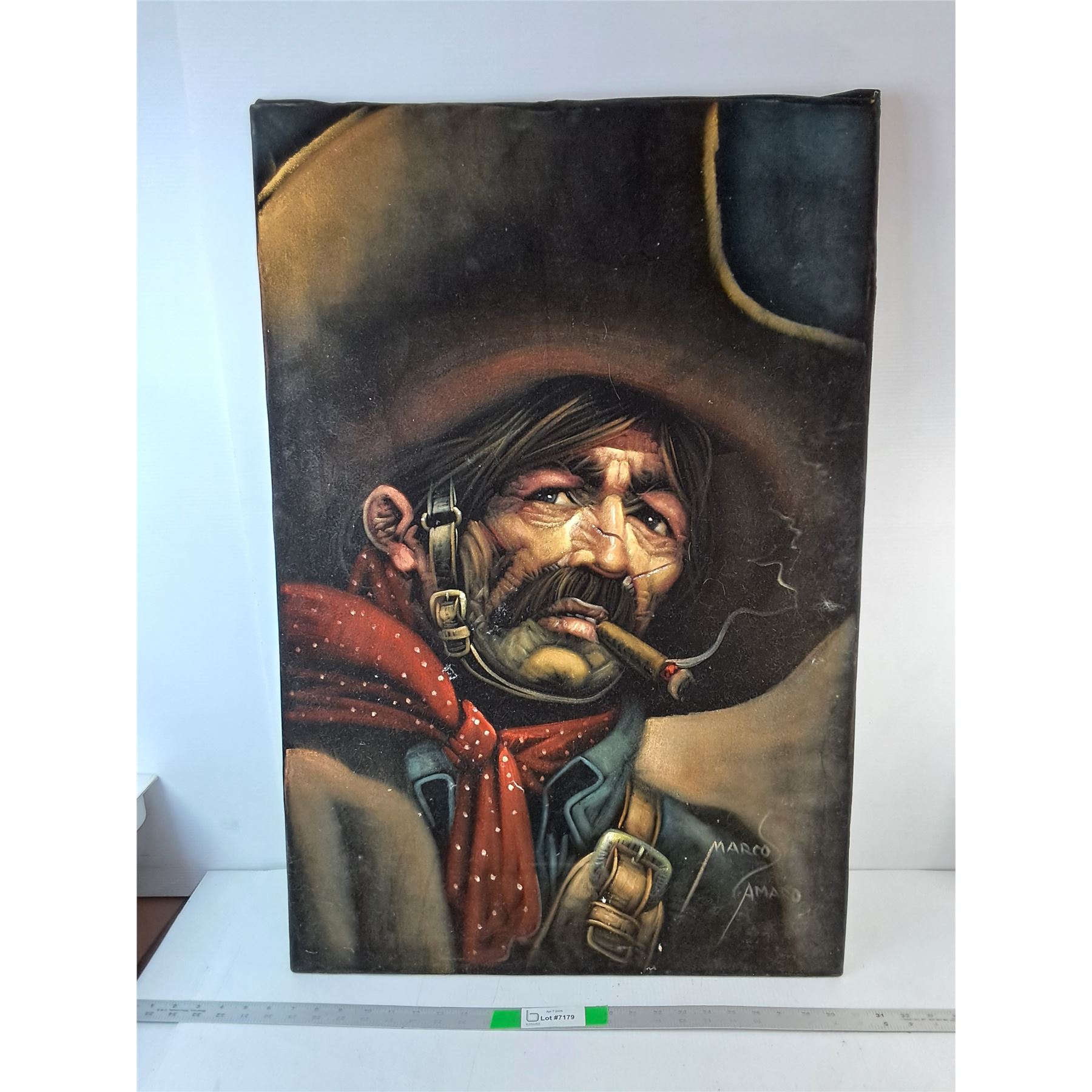 Lot 7179 'Mexican Bandit' Marcos Amaro Velvet Painting 36" x 24"- Cannot Ship