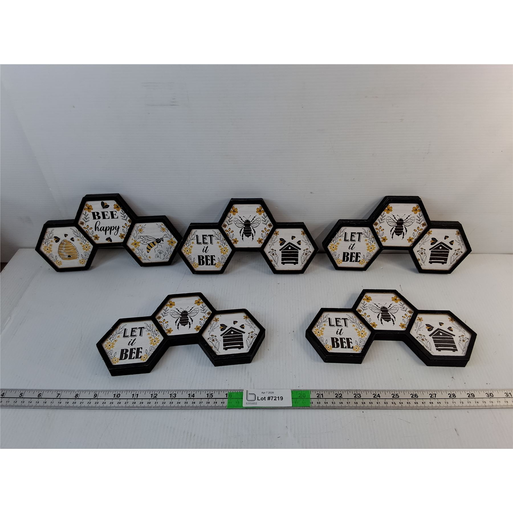 Lot 7219 (5) 'Bee Happy' & 'Let It Bee' Home Decor Signs 10" x 5.5"
