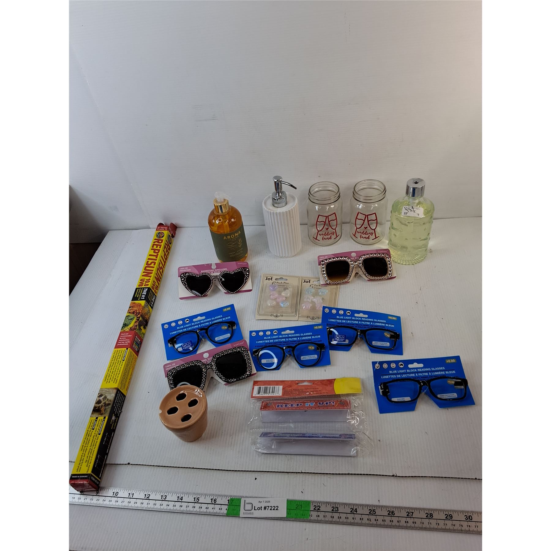 Lot 7222 Sunglasses, Blue Light Glasses, UVB Reptile Lamp, Hand Soaps, Misc. Cannot Ship