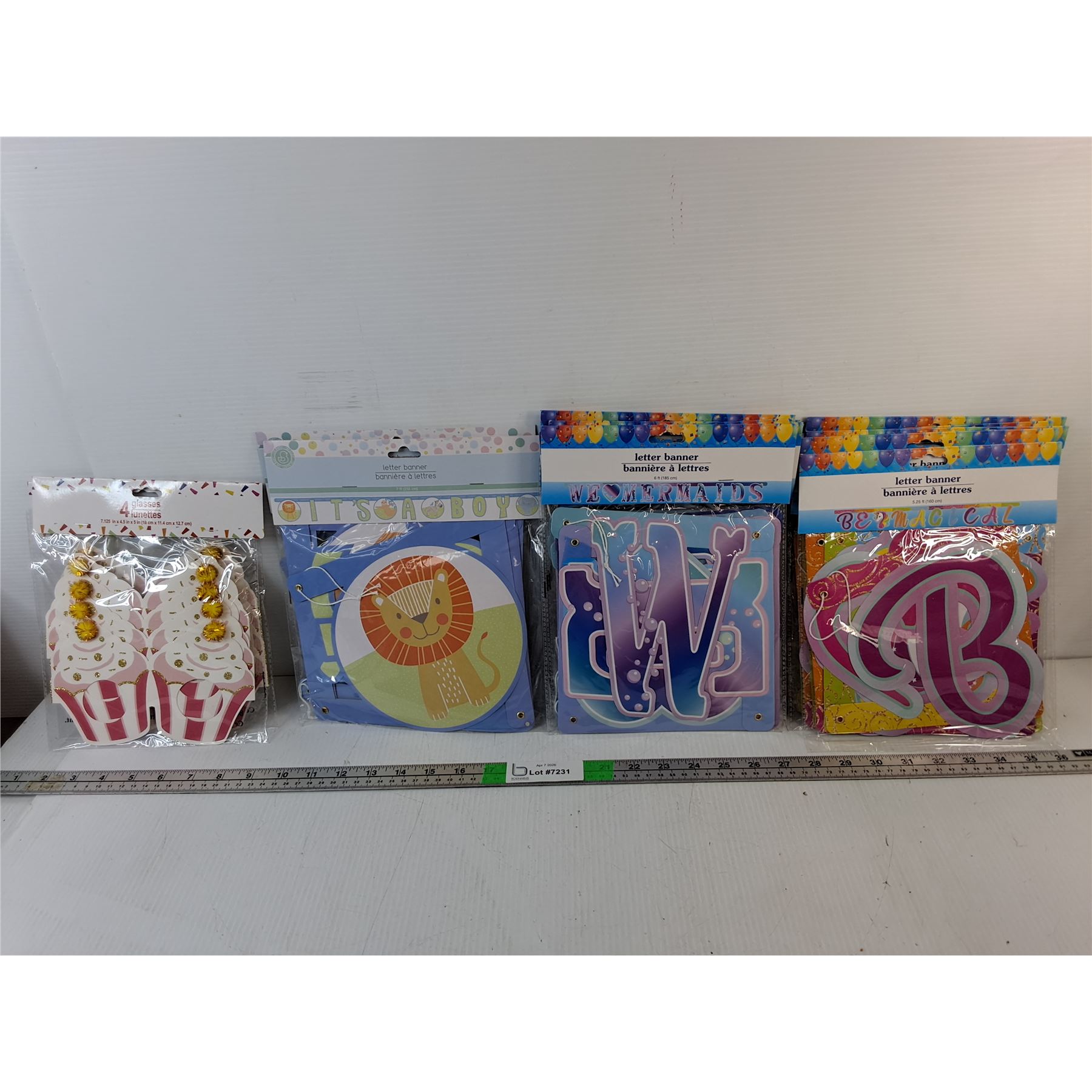 Lot 7231 Party/Baby Shower Banners & Glasses- Sealed