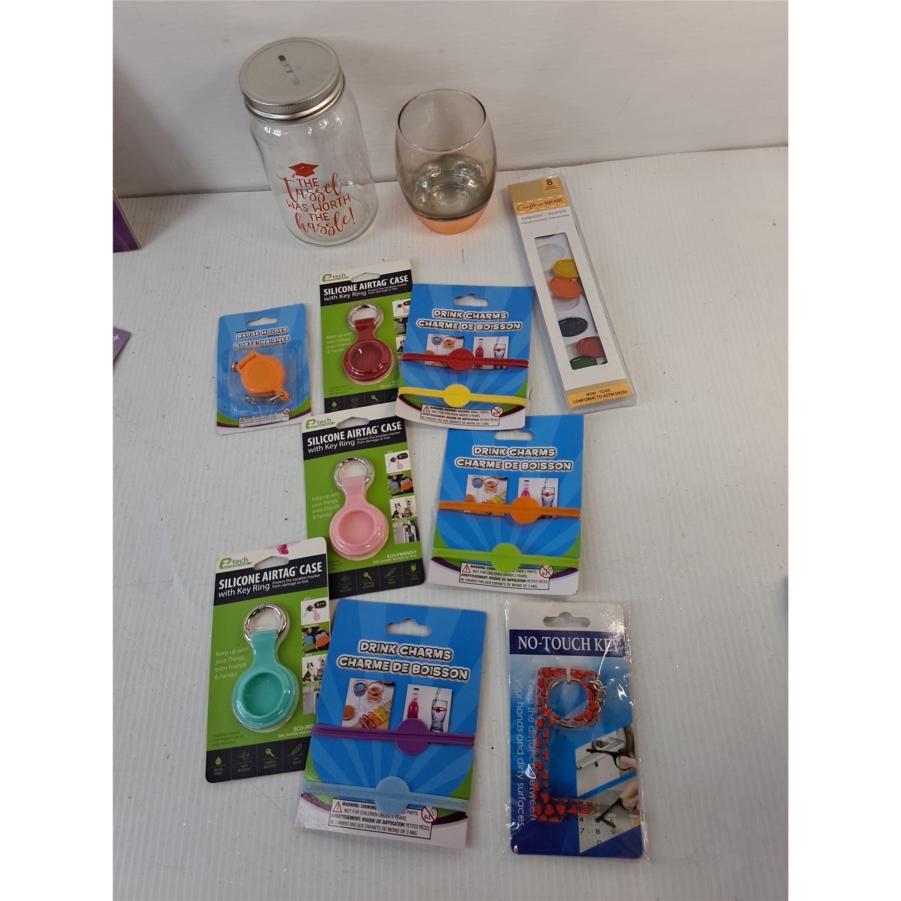 Lot 7236 Silicone Air Tag Cases, Drink Charms, Glass Gems, Misc.