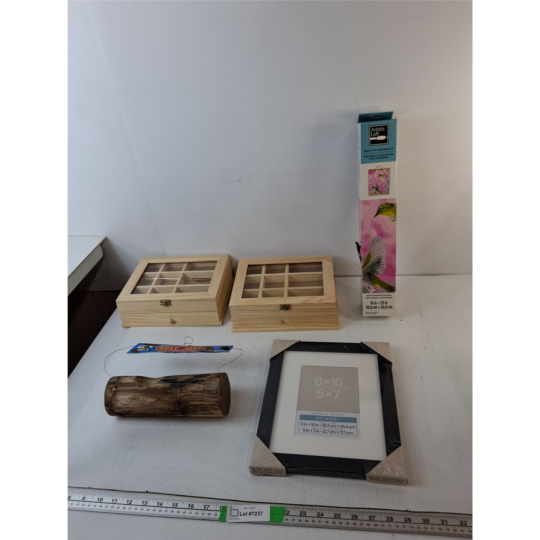 Lot 7237 Parakeet Nest, Paint by Number Kit, Wooden Storage Boxes 9.5" x 7.75" x 3.25", Photo Frame