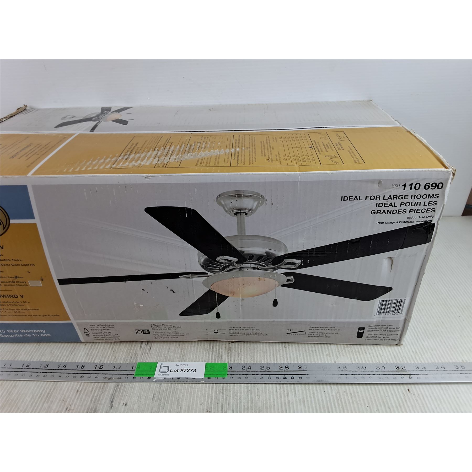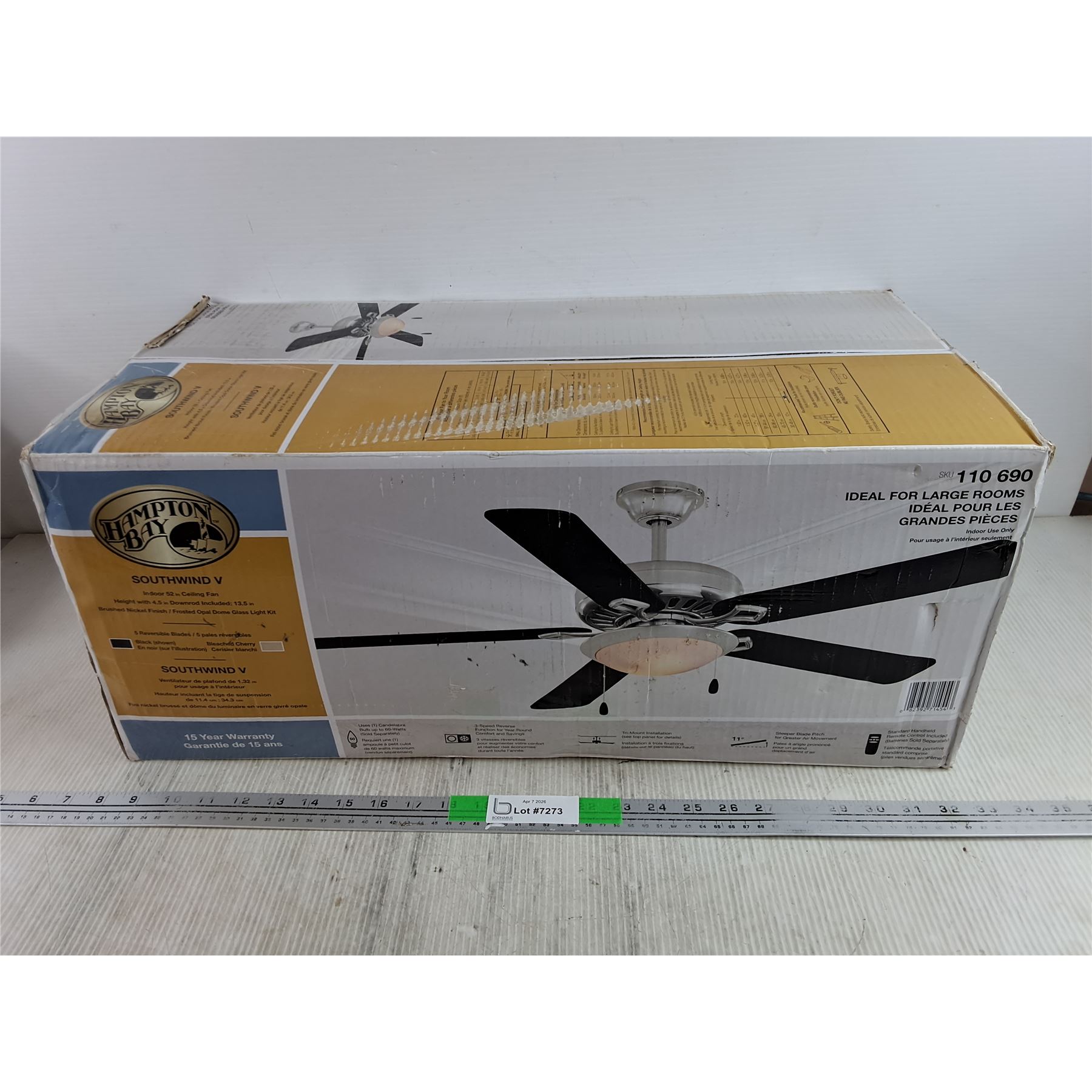 Lot 7273 Hampton Bay Southwind V Black Ceiling Fan - Sealed, NIB - PICK UP ONLY