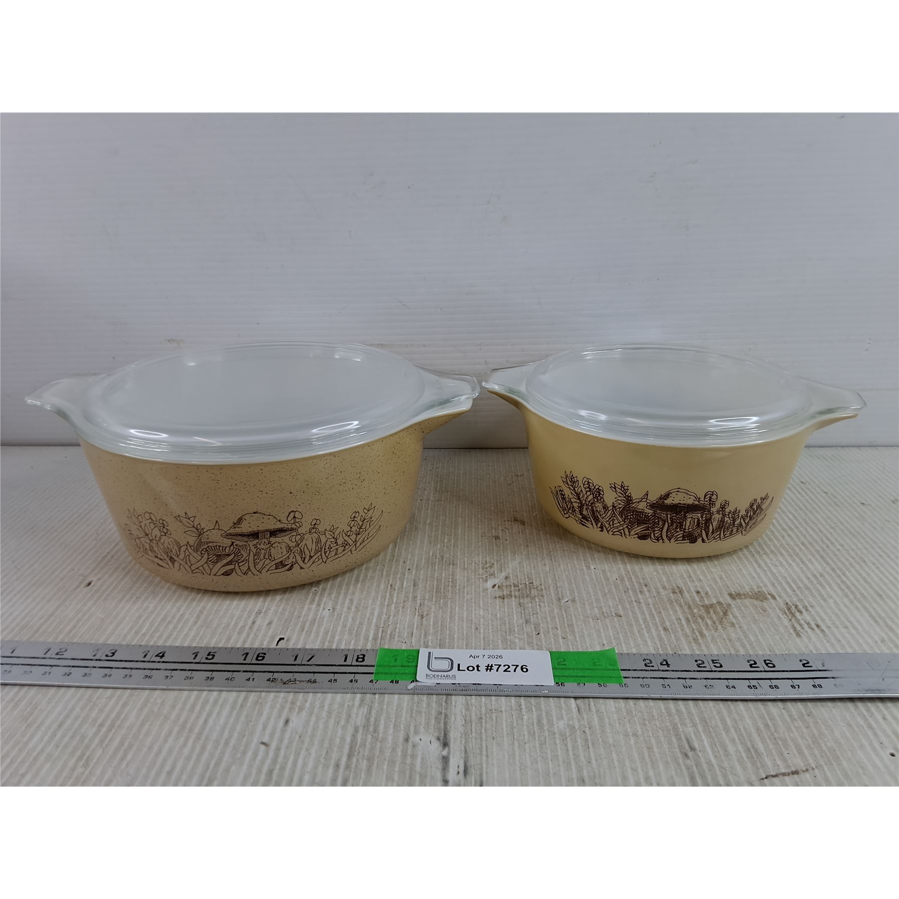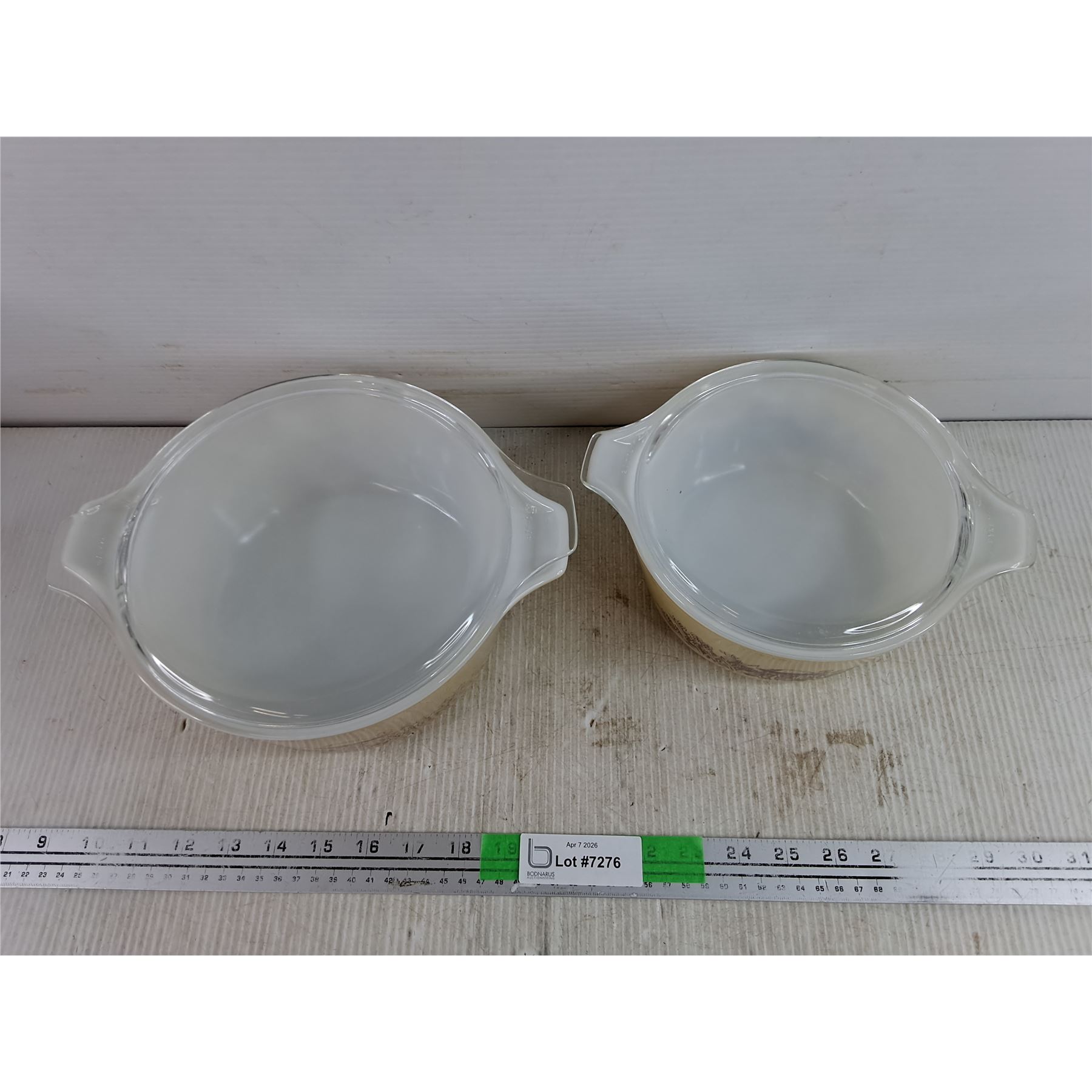 Lot 7276 (2) PYREX Milk Glass Bowls w/Lids