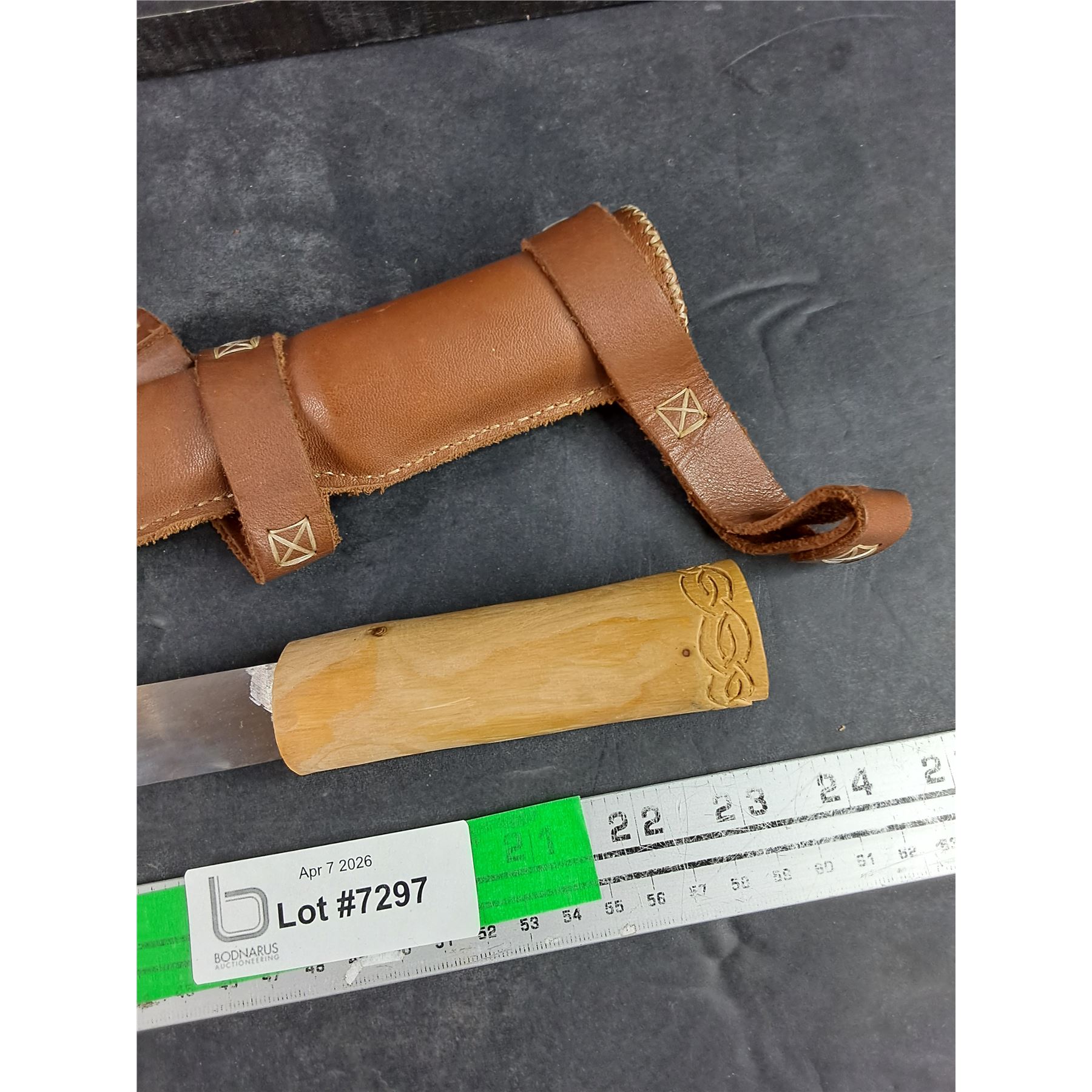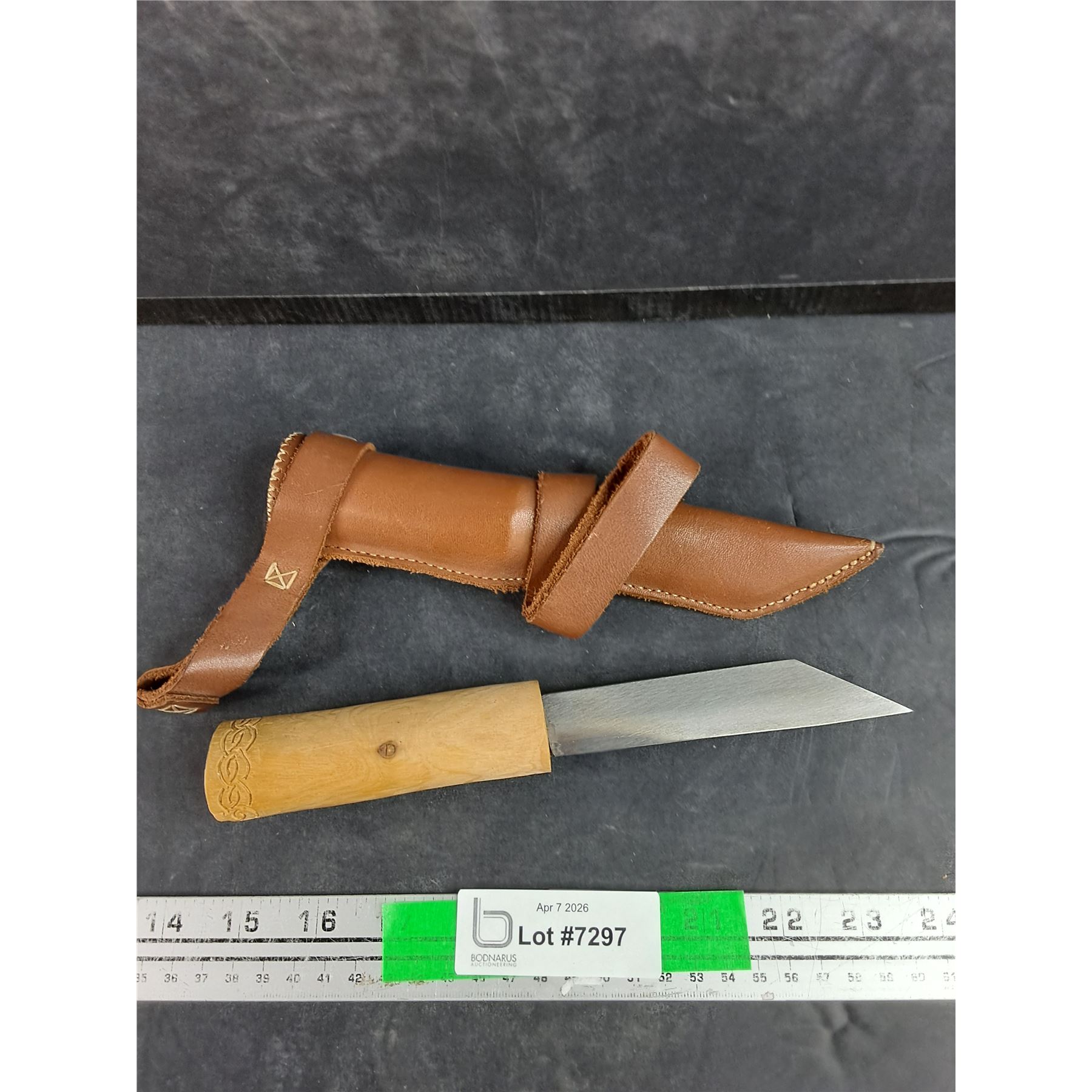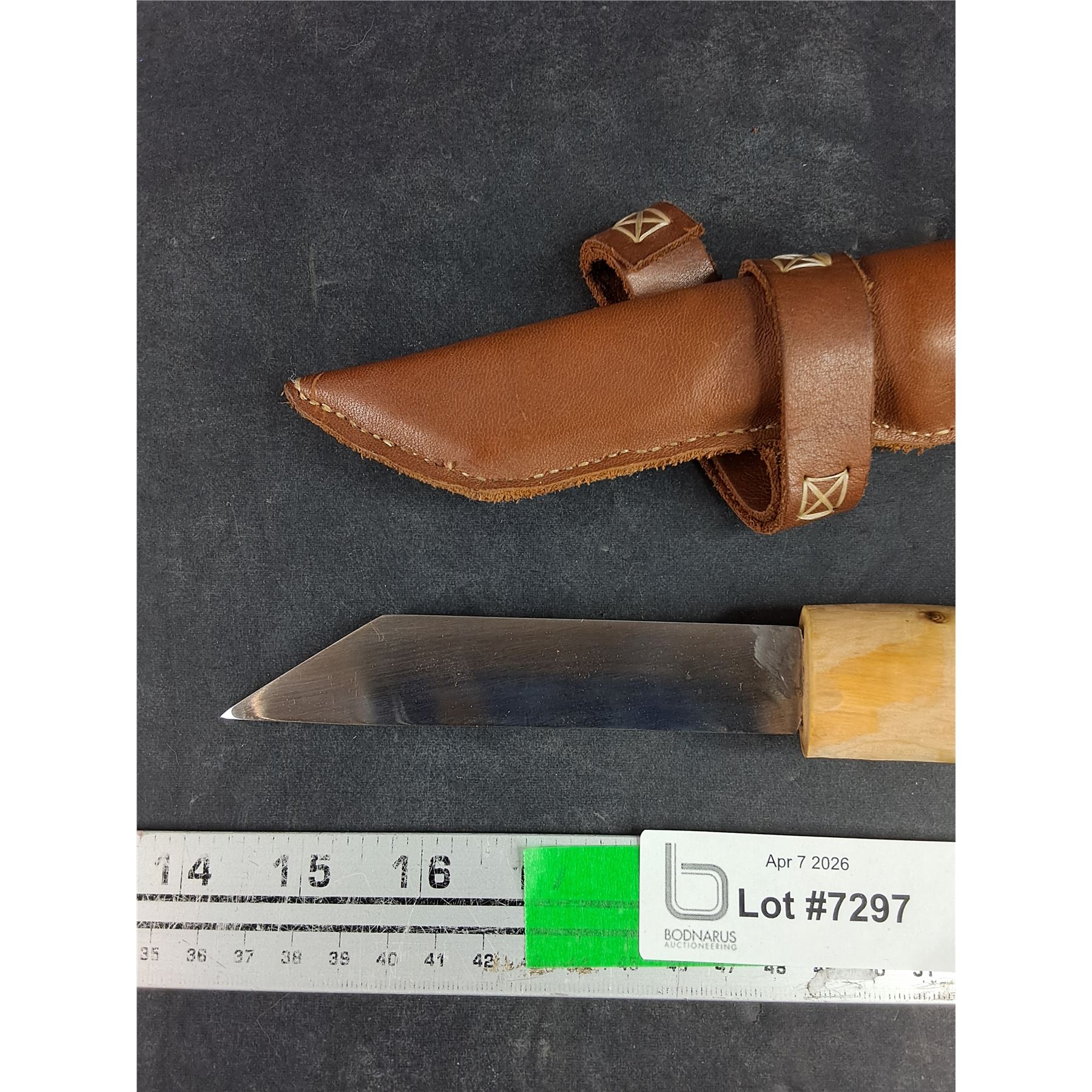 Lot 7297 Custom Made Leather Cutting Knife w/Leather Sheath