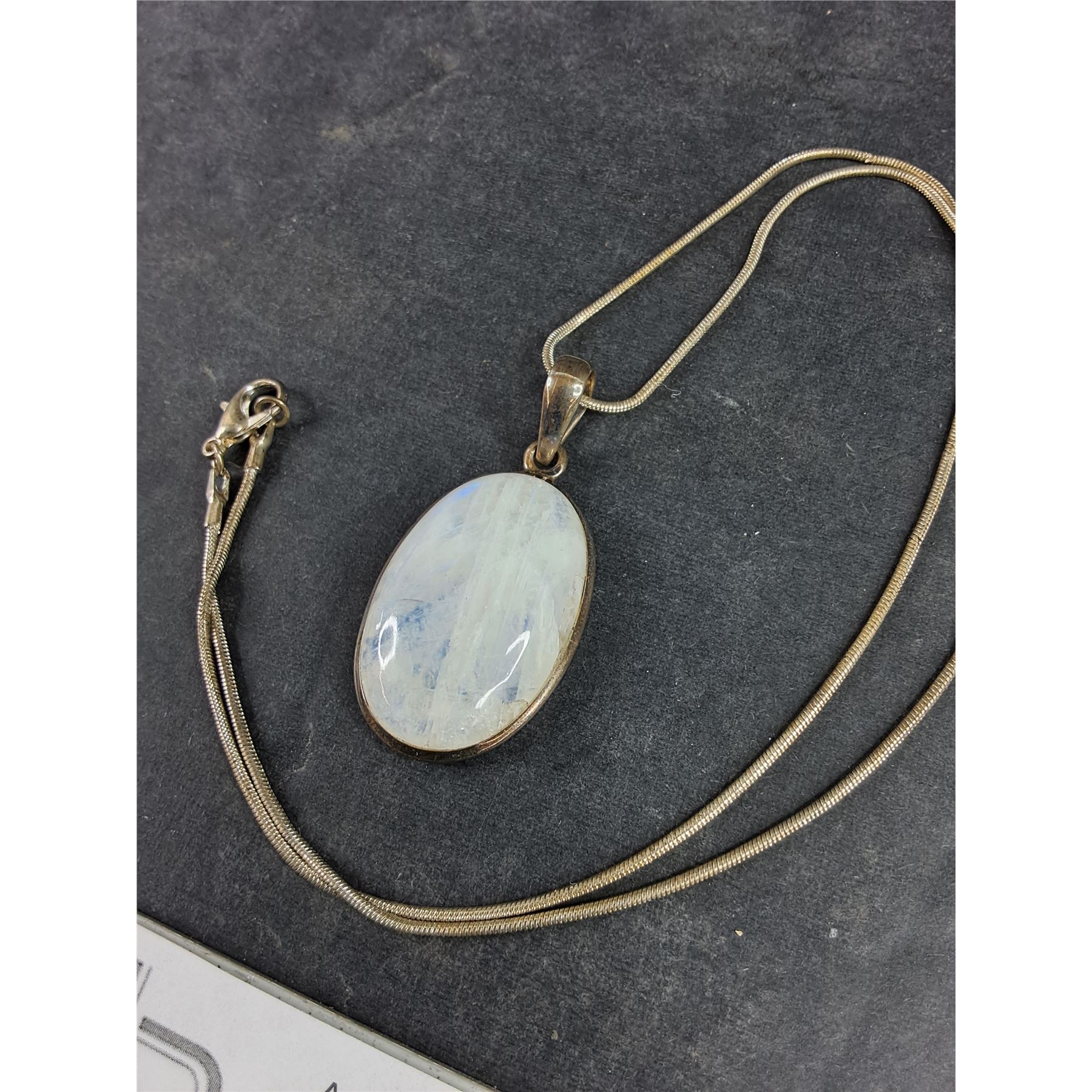Lot 7299 Sterling Silver 925 Necklace w/ Moonstone Stone Pendant - CANNOT AUTHENTICATE