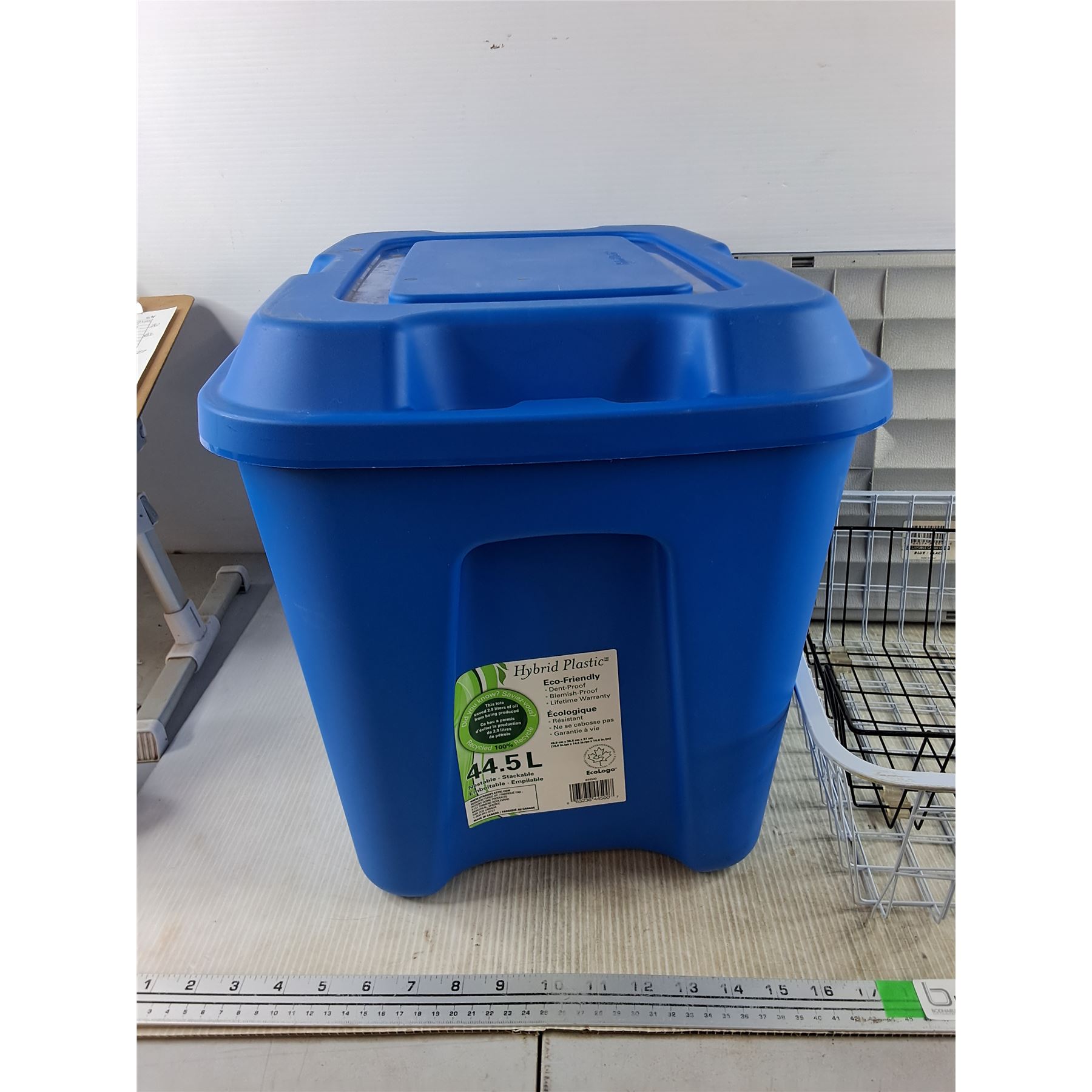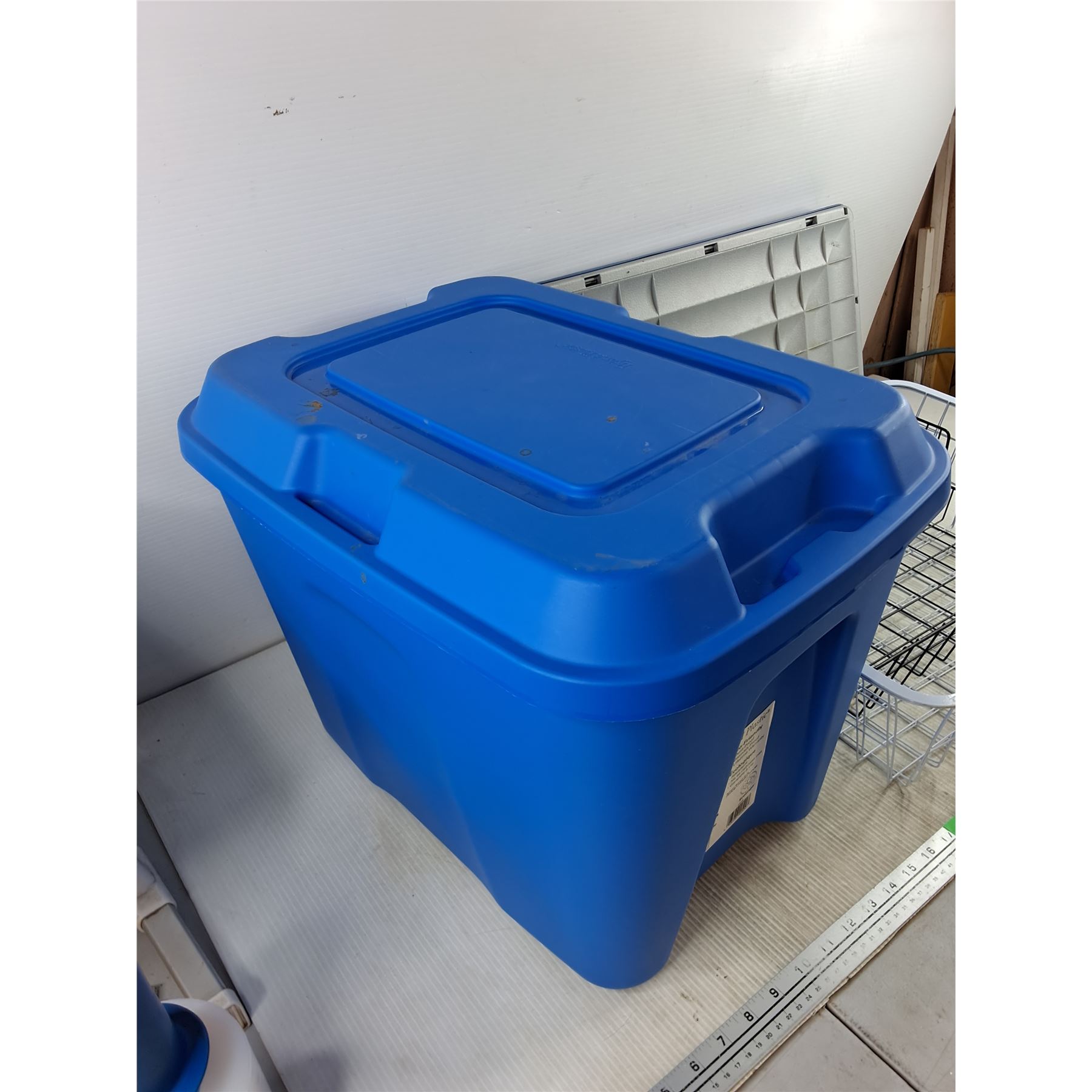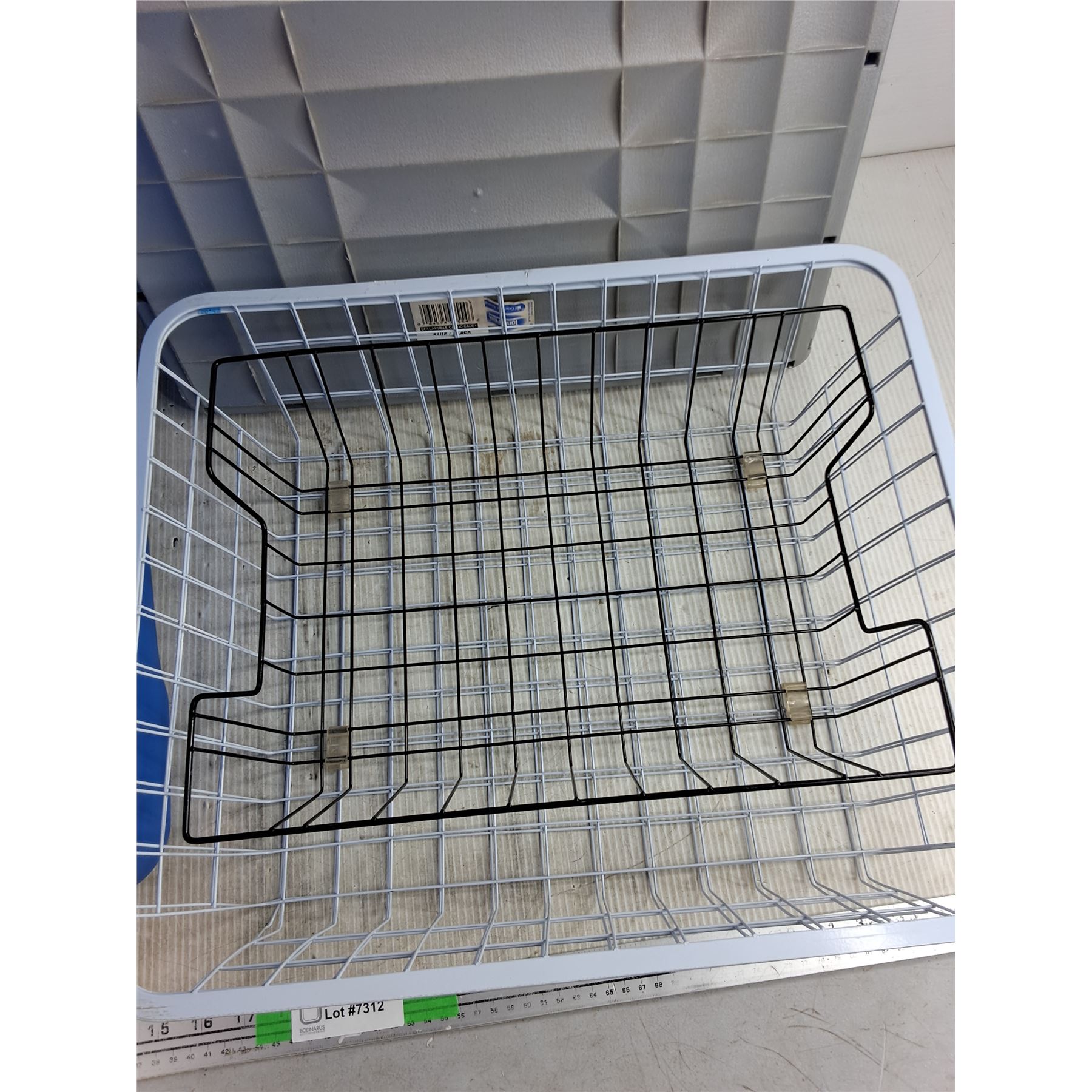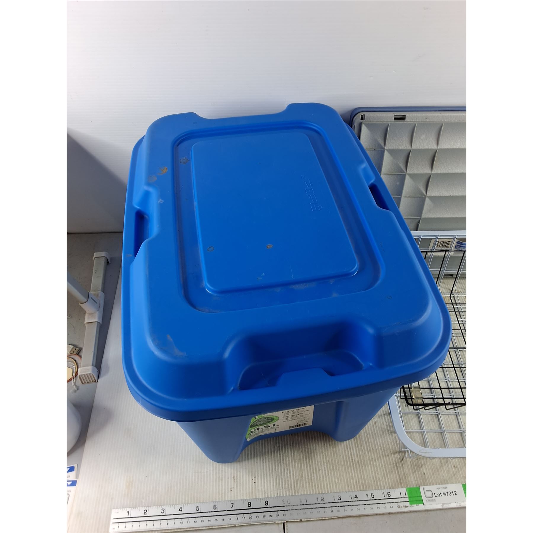 Lot 7312 *44.5L Plastic Tote w/Lid, Collapsible Cargo Caddy, (2) Wire Baskets, Cannot Ship
