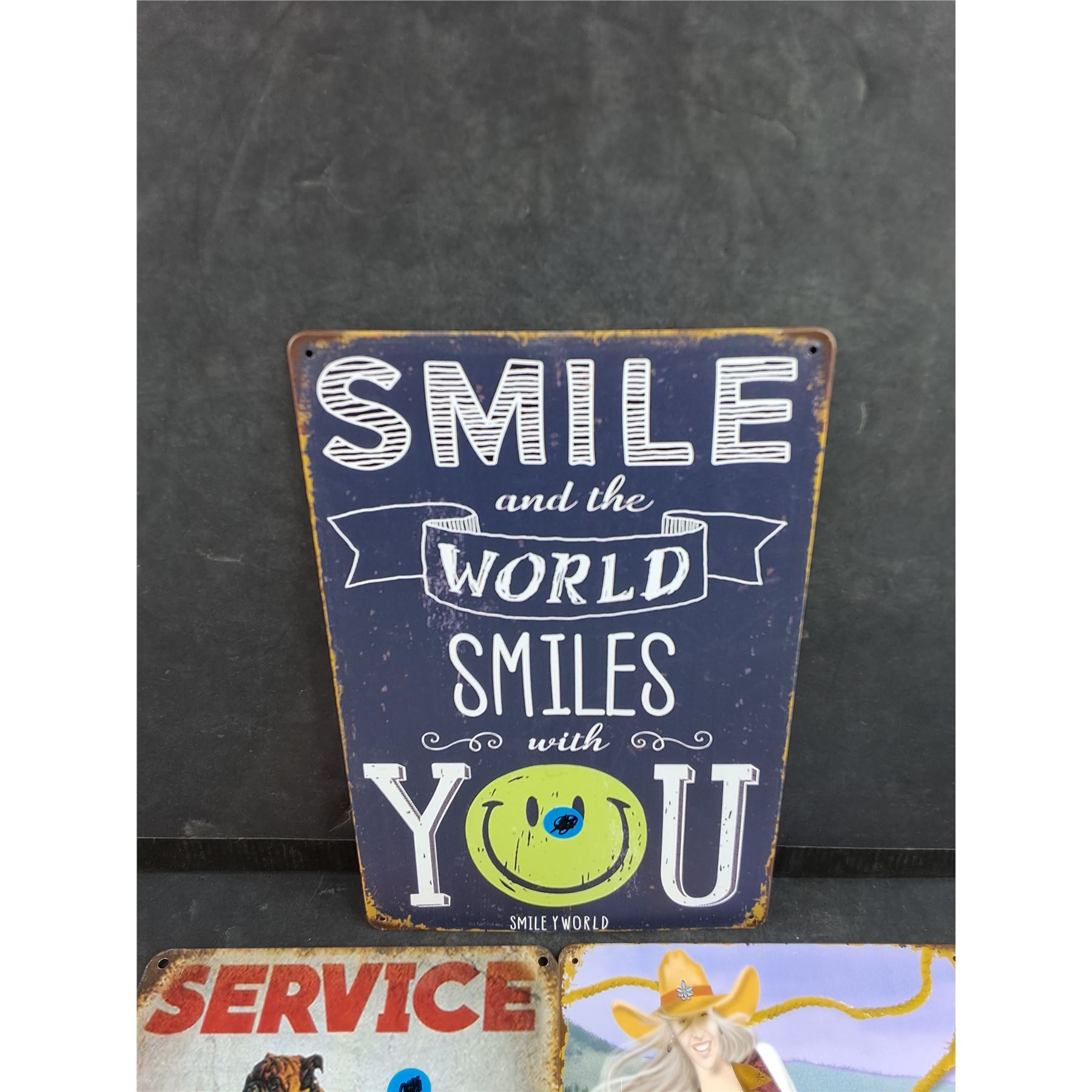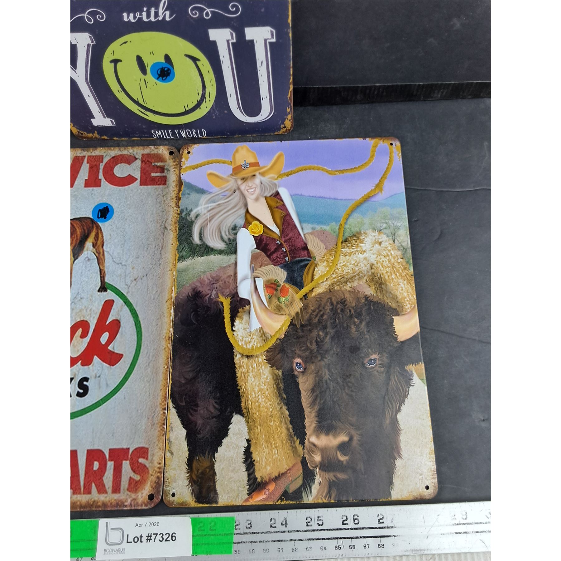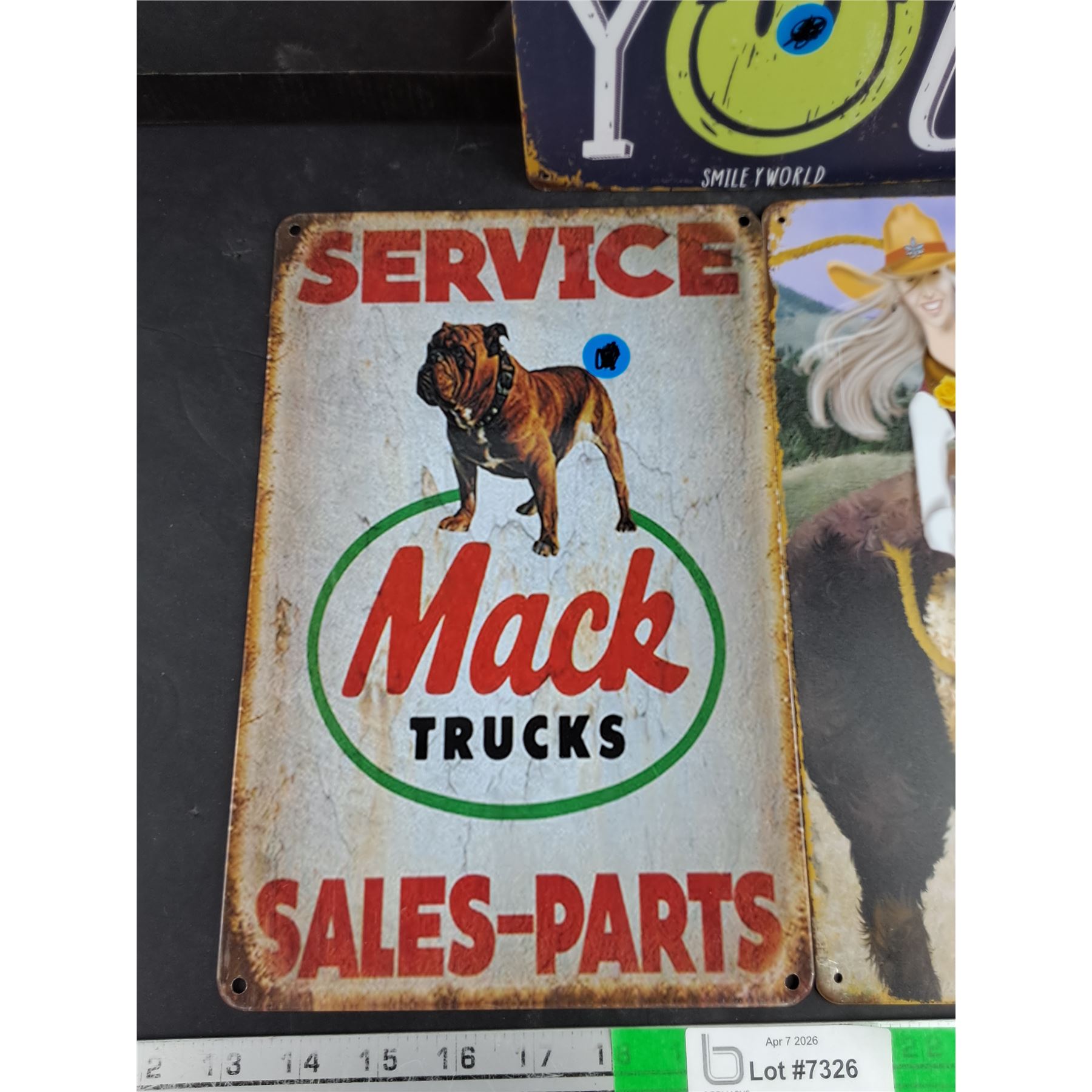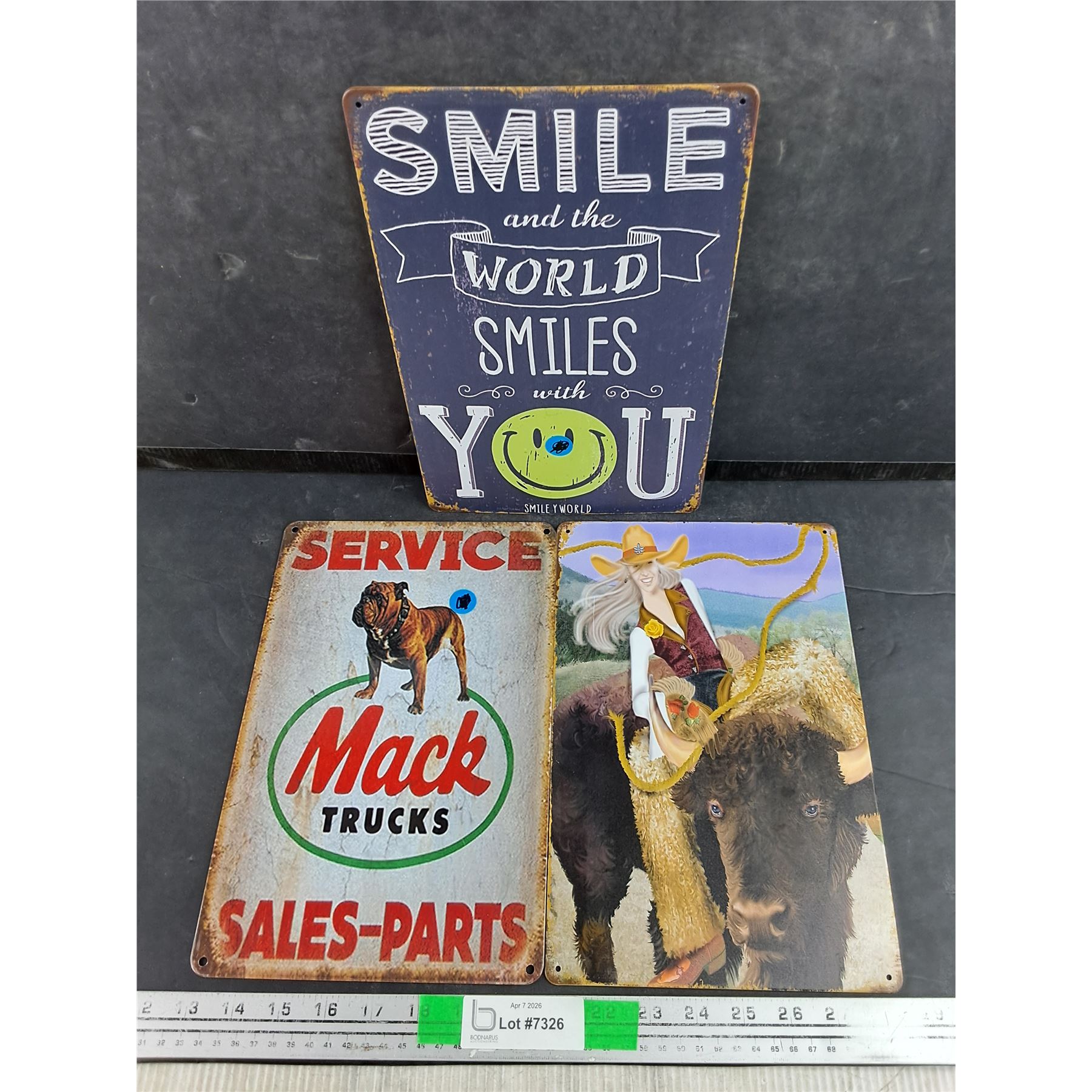 Lot 7326 (3) Metal Signs 12" x 8" - Mack Trucks, Rodeo, Smiley World